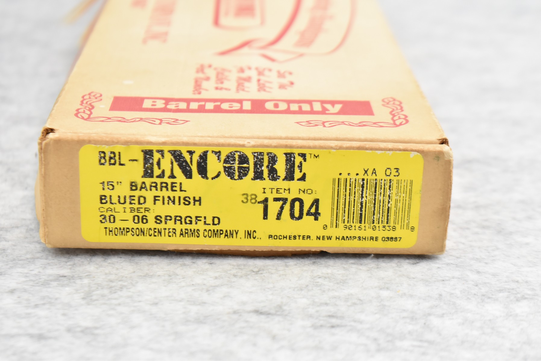 331. Thompson Center – Mod. Encore – 30-06 Cal. 15” Barrel w/Front Blade Sight – Blued Finish – w/2pc. Leupold Scope Rings – Barrel Only – w/Box