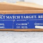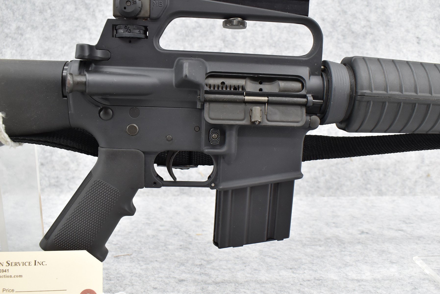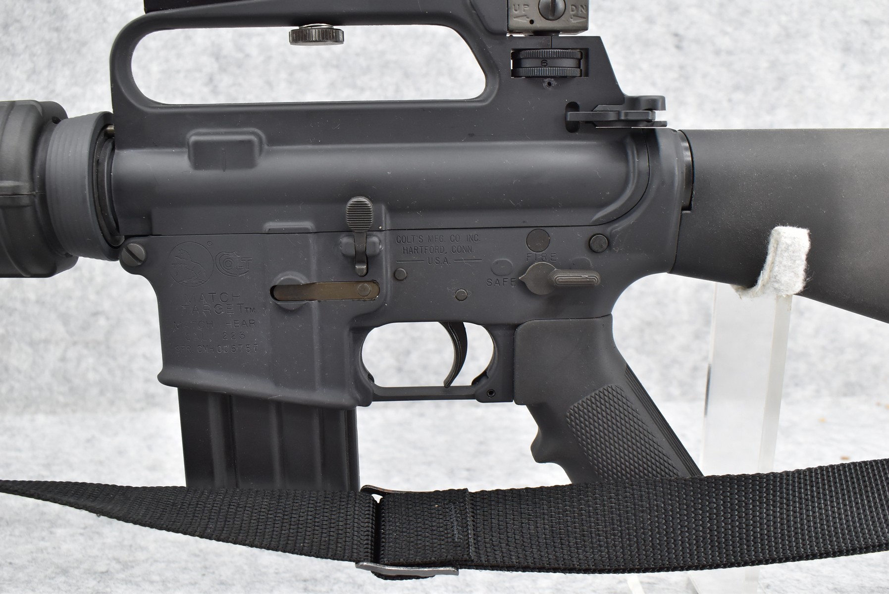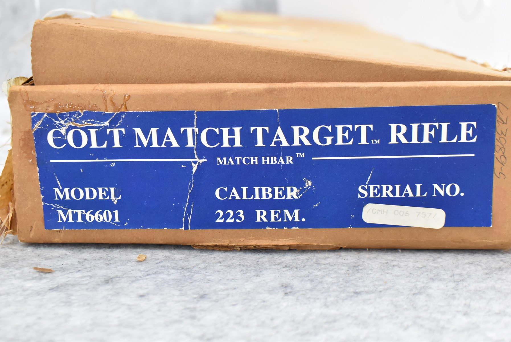 334R. Colt – Mod. Match Target HBAR – 5.56 NATO Cal. Semi-Auto Rifle – w/20” Heavy Barrel w/Front Iron Post & Rear Adj. Peep Sight – Matte Blued Finish – w/Black Polymer Pistol Grip w/M-16 AR Style Hand Guard & Fixed Butt Stock w/Factory Butt Plate – w/Magazine – w/Sling – w/Carrying Handle w/Rail Mount – w/Factory Box & Manual (MARYLAND COMPLIANT)