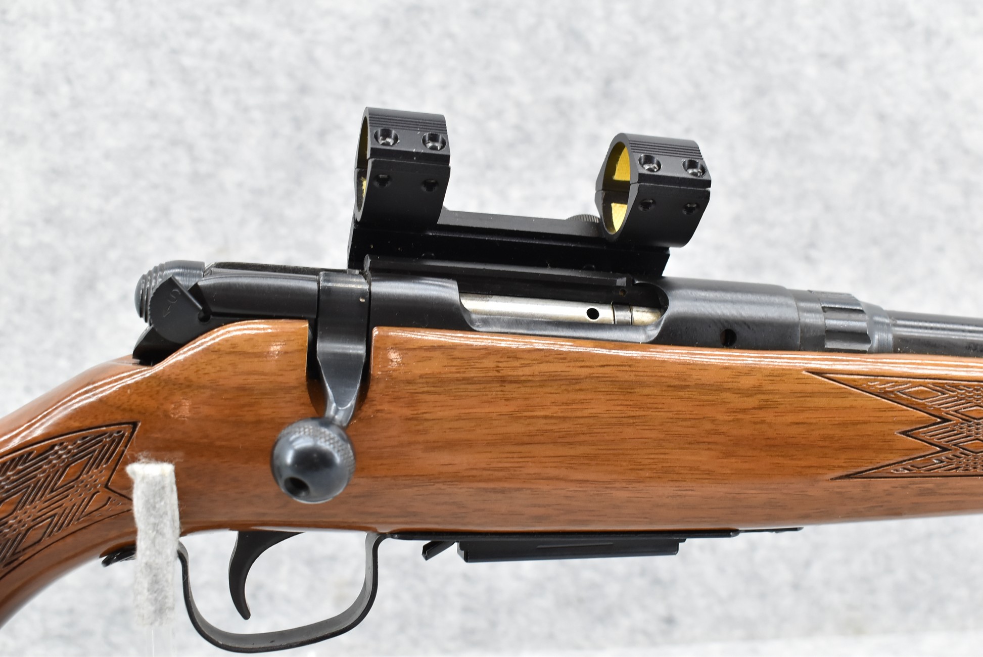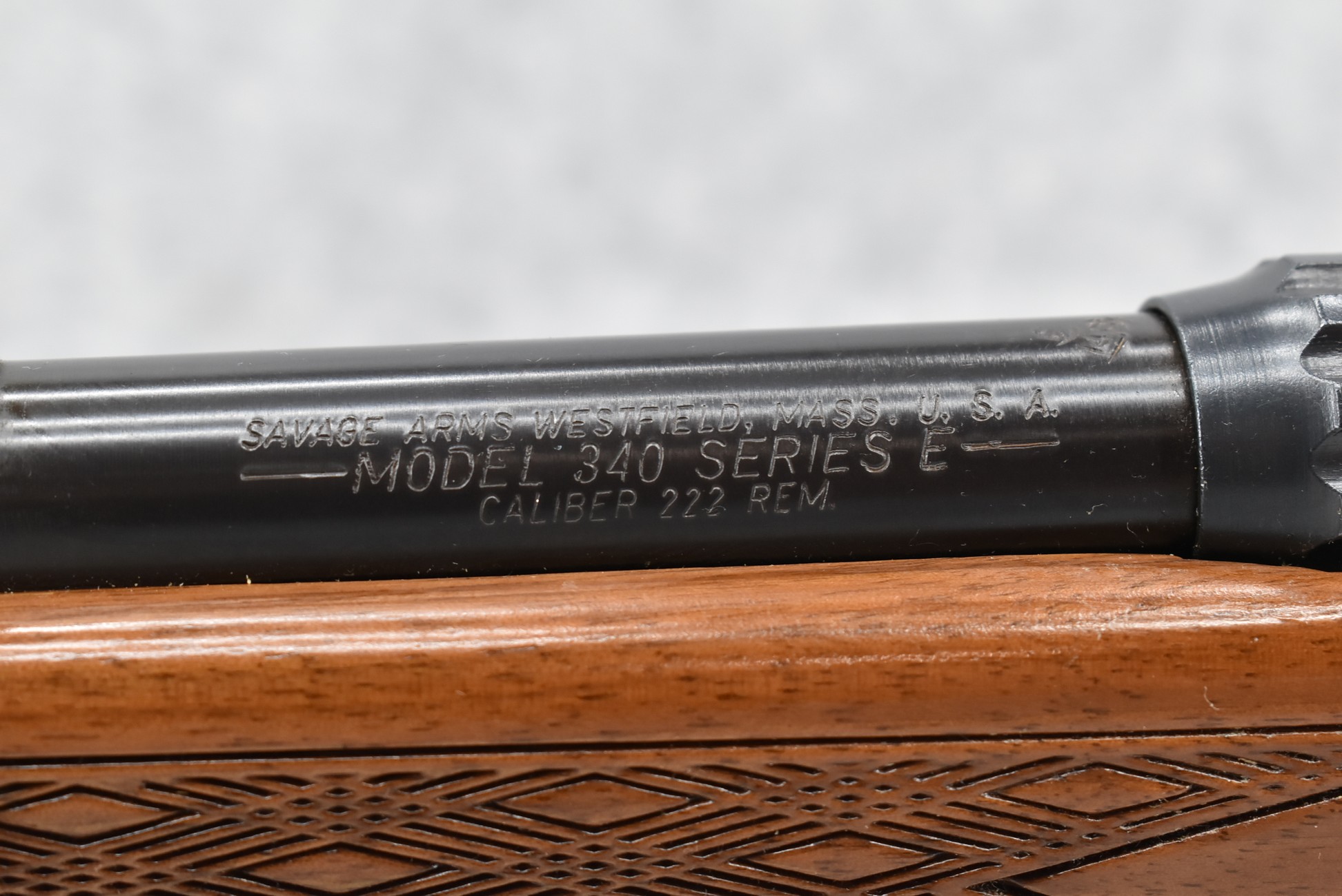 334R. Savage – Mod. 340 Series E – 222 Rem. Cal. Bolt Action Rifle – w/24” Barrel w/Blade Front & Rear Adj. Folding Sights – Blued Finish – w/Factory Checkered Capped Pistol Grip Wood Stock w/Factory Butt Plate – w/Factory Detachable Mag. – w/2pc. Side Mount Scope Rings