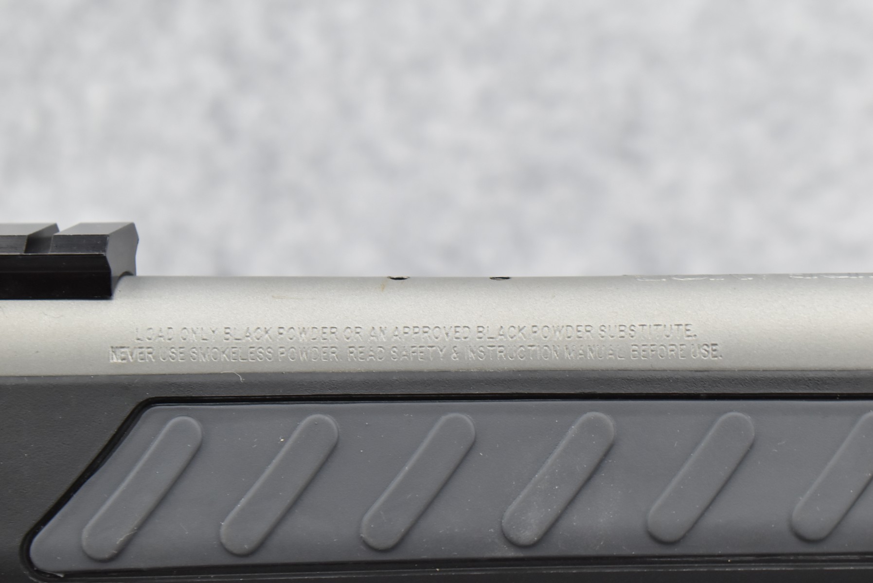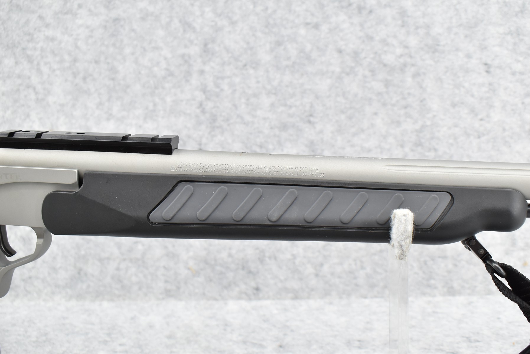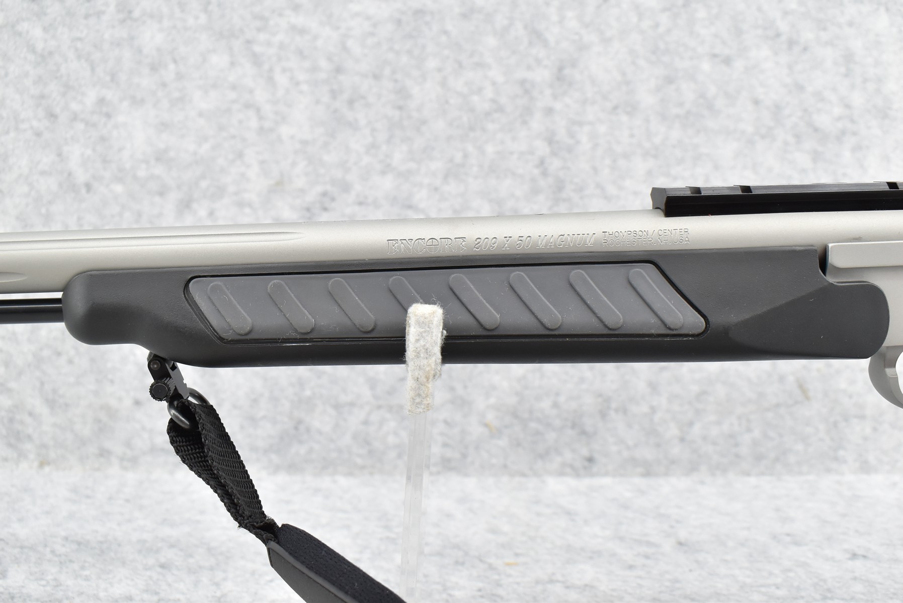 335R. Thompson Center – Mod. Encore Endeavor – 209×50 Mag. Cal. Black Powder Muzzleloading Rifle – w/28” Barrel w/Front Fiber Optic Sight – Matte Stainless Finish – w/Black & Gray Synthetic Pistol Grip Stocks w/Factory Recoil Pad – w/Factory Sling – w/Ram Rod – w/Scope Rail Mount