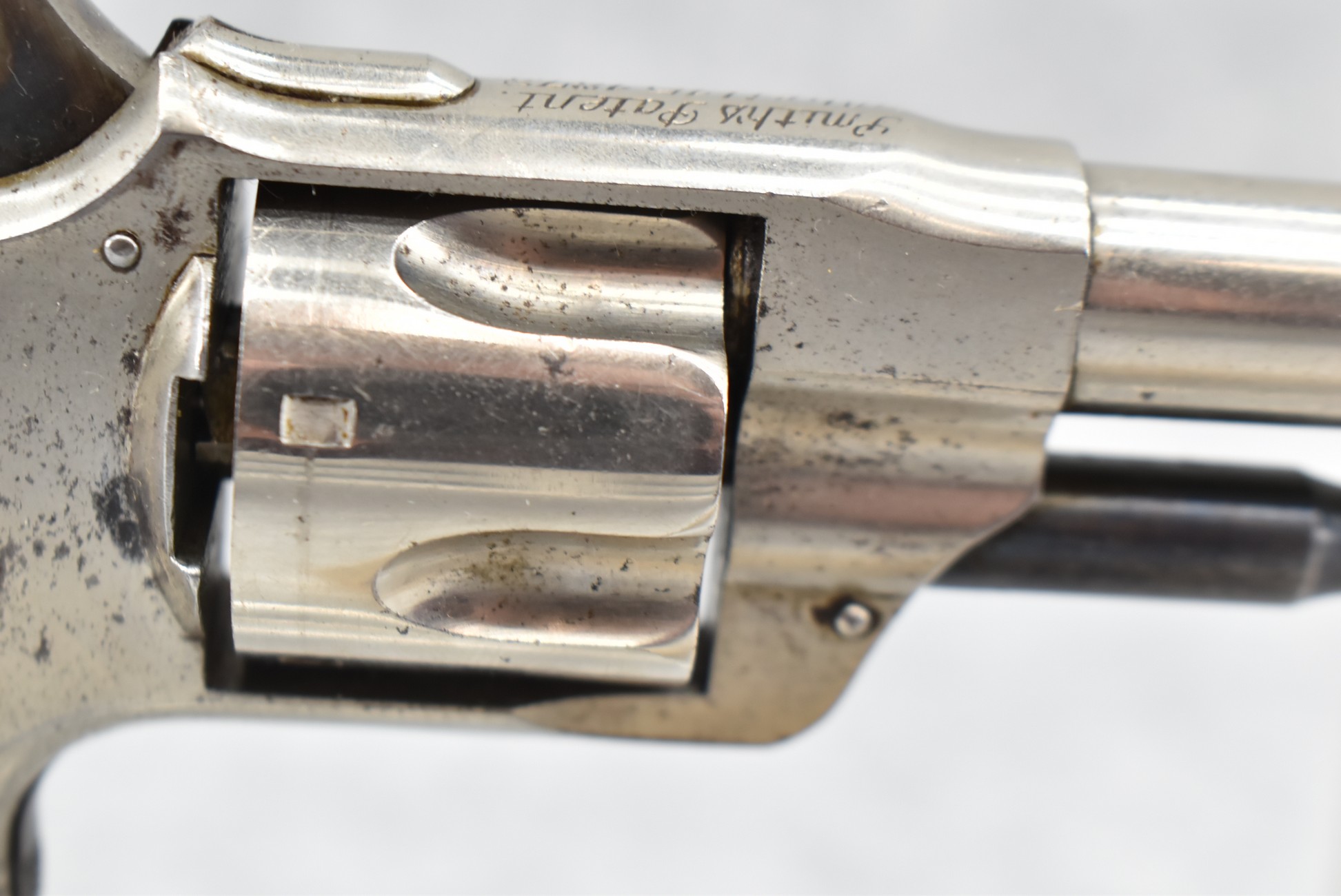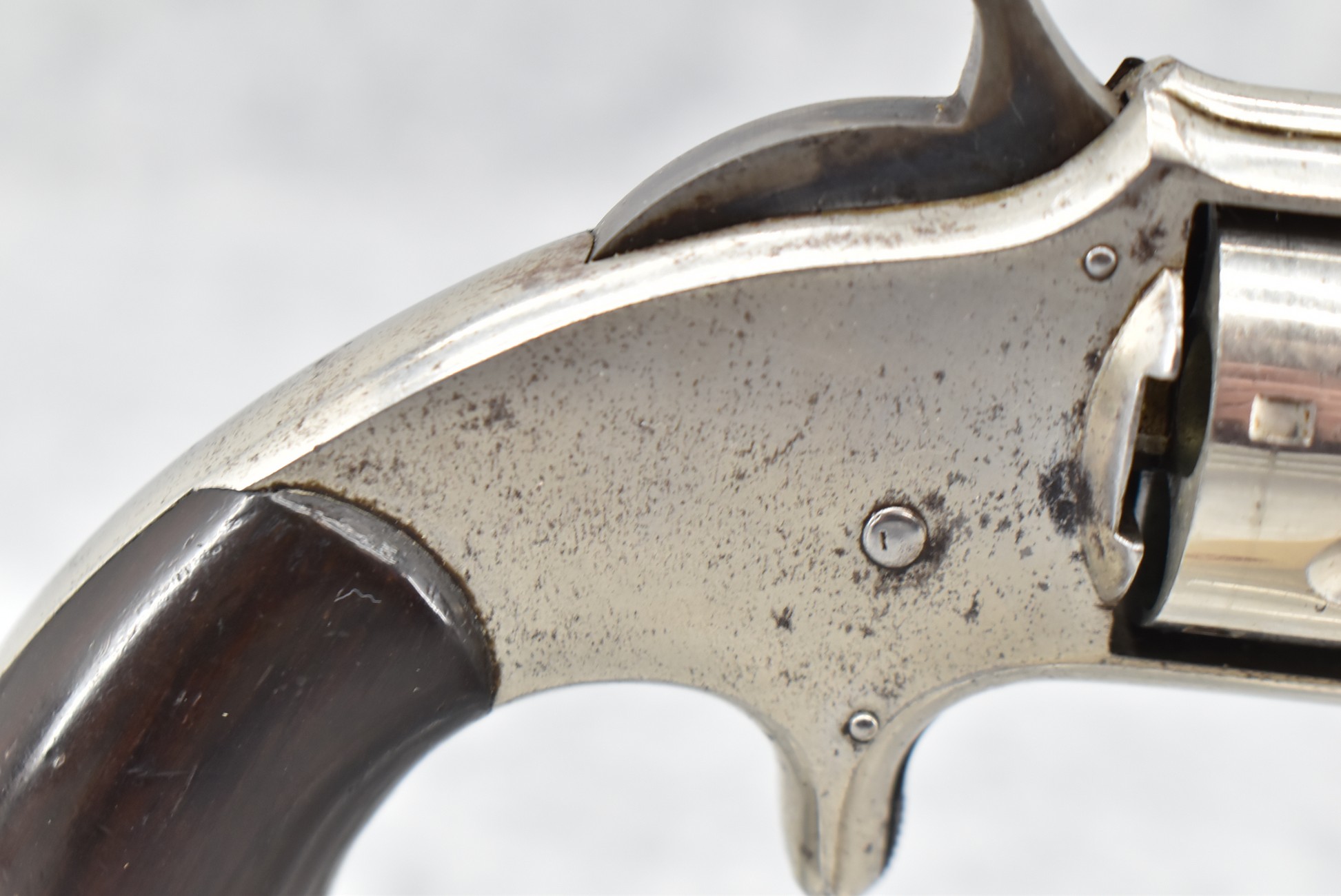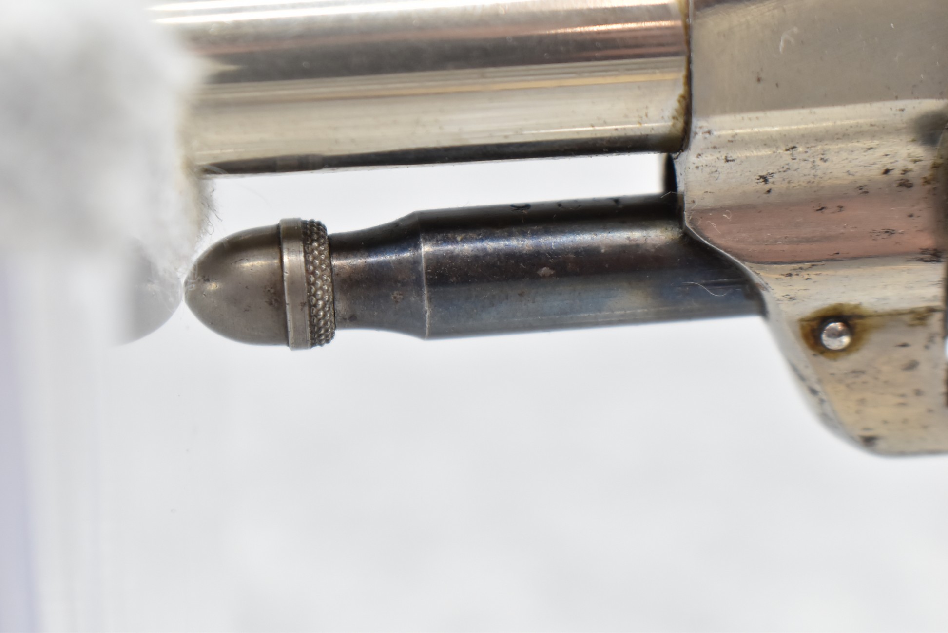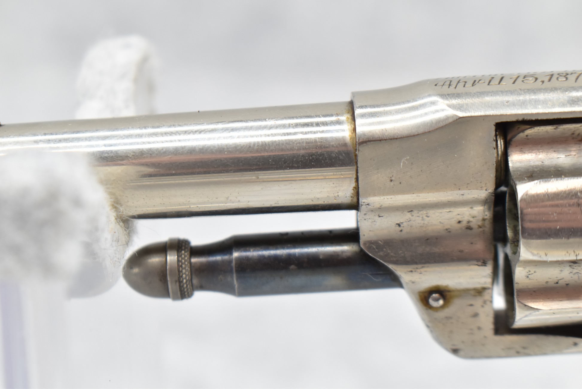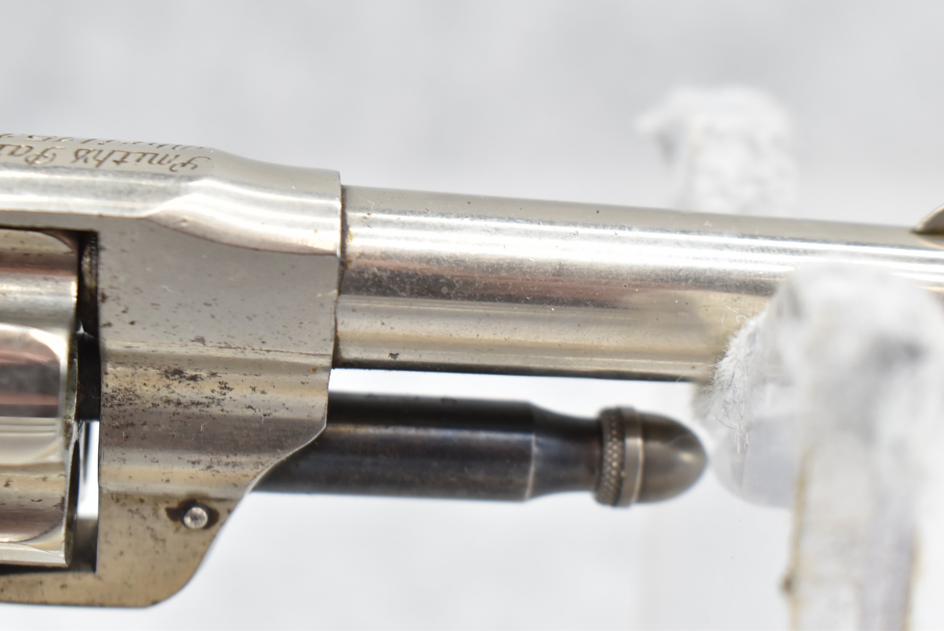336. Smiths Patent – “Original Model” – 32 Cal. RF Cal. Single Action Spur Trigger Revolver – w/3” Round Barrel w/Blade Front & Notch Rear Sights – Nickel Finish – w/Factory Wood Birds Head Grips – Top Strap Marked “Smiths Patent April 15, 1873”