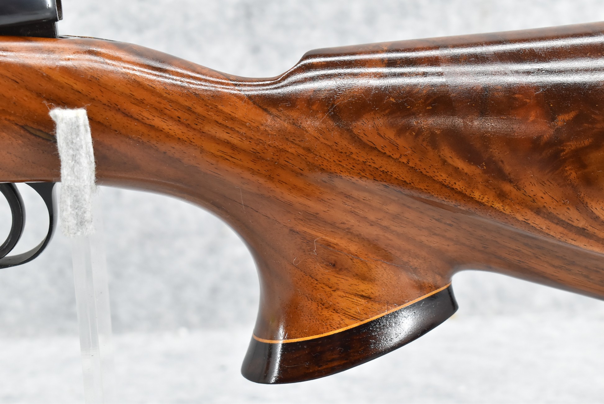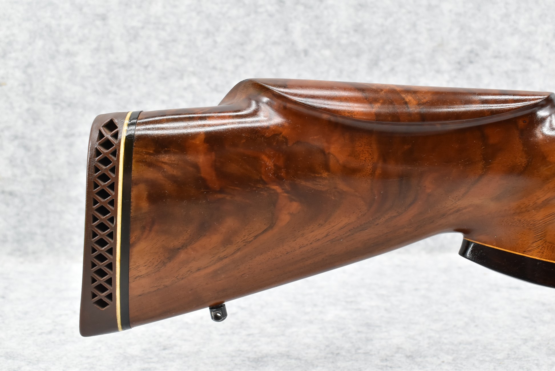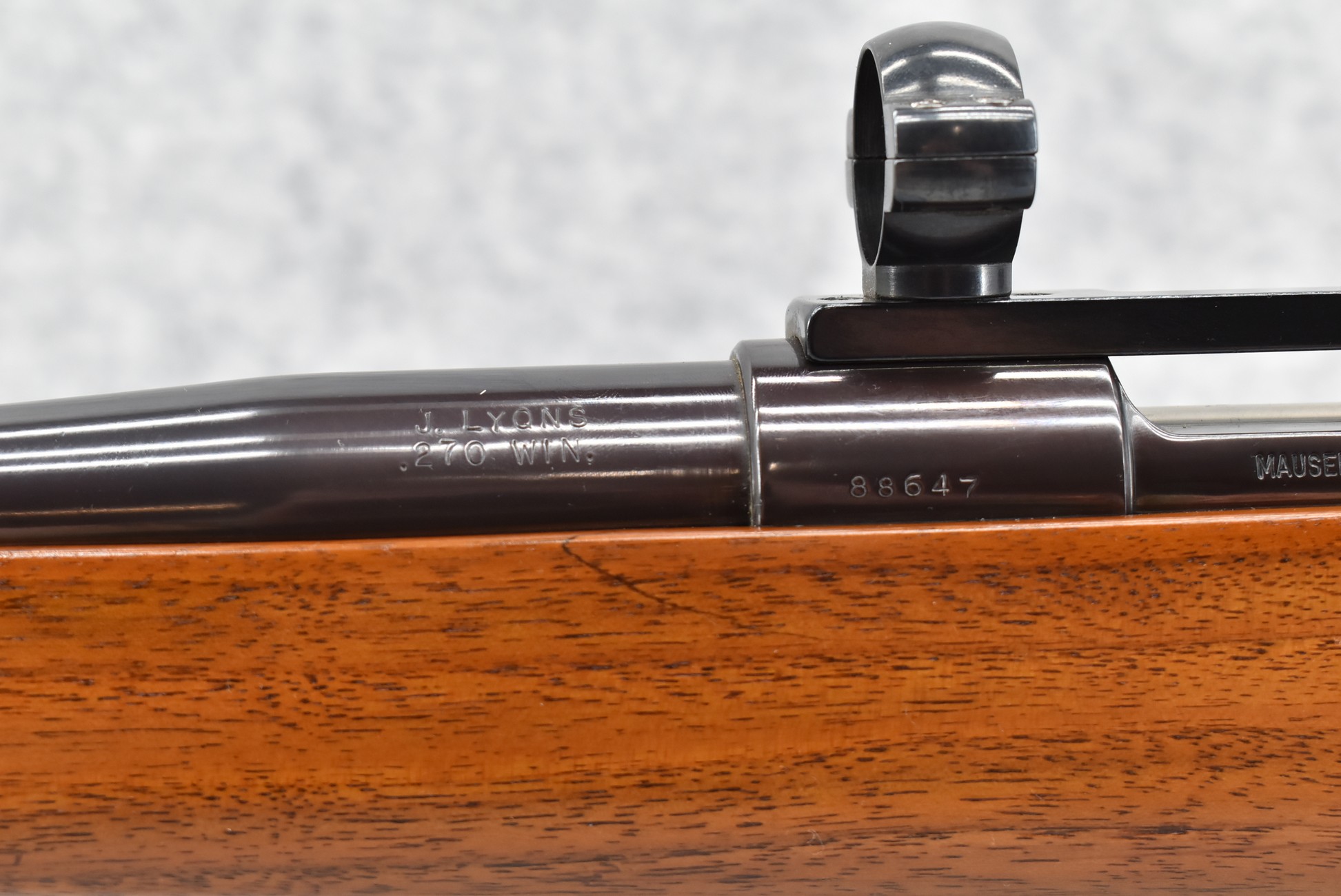 337R. Mauser – Mod. 3000 – 270 Win. Cal. Bolt Action Rifle – w/25” Custom J. Lyons Barrel – Blued Finish – w/Custom Rosewood Pistol Grip Capped & Forend Capped Monte Carlo Wood Stocks w/Pachmayr Recoil Pad – w/Engraved Stag Floor Plate – w/1pc. Scope Base & Rings