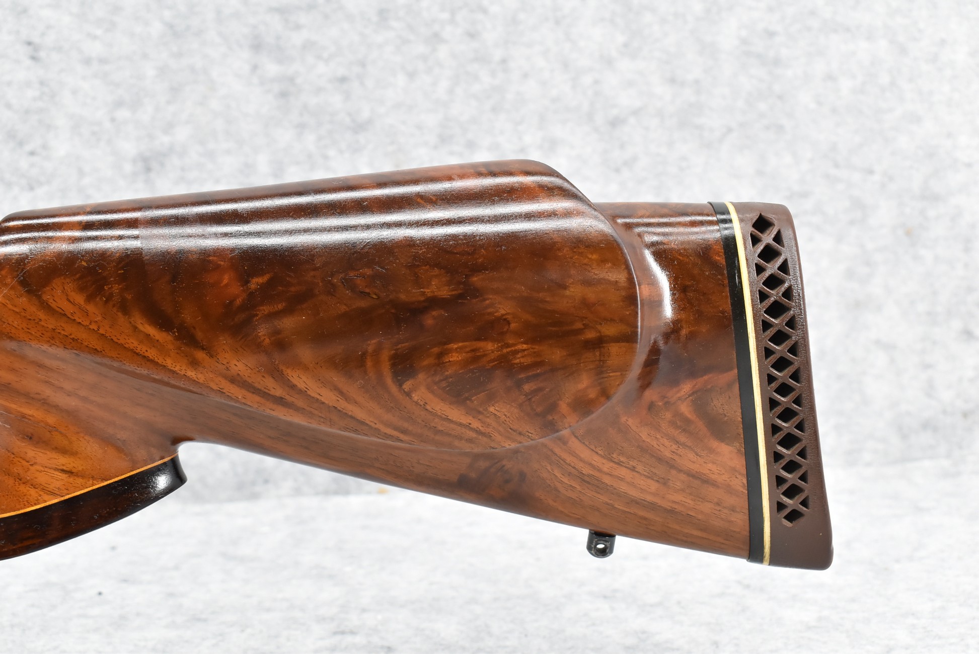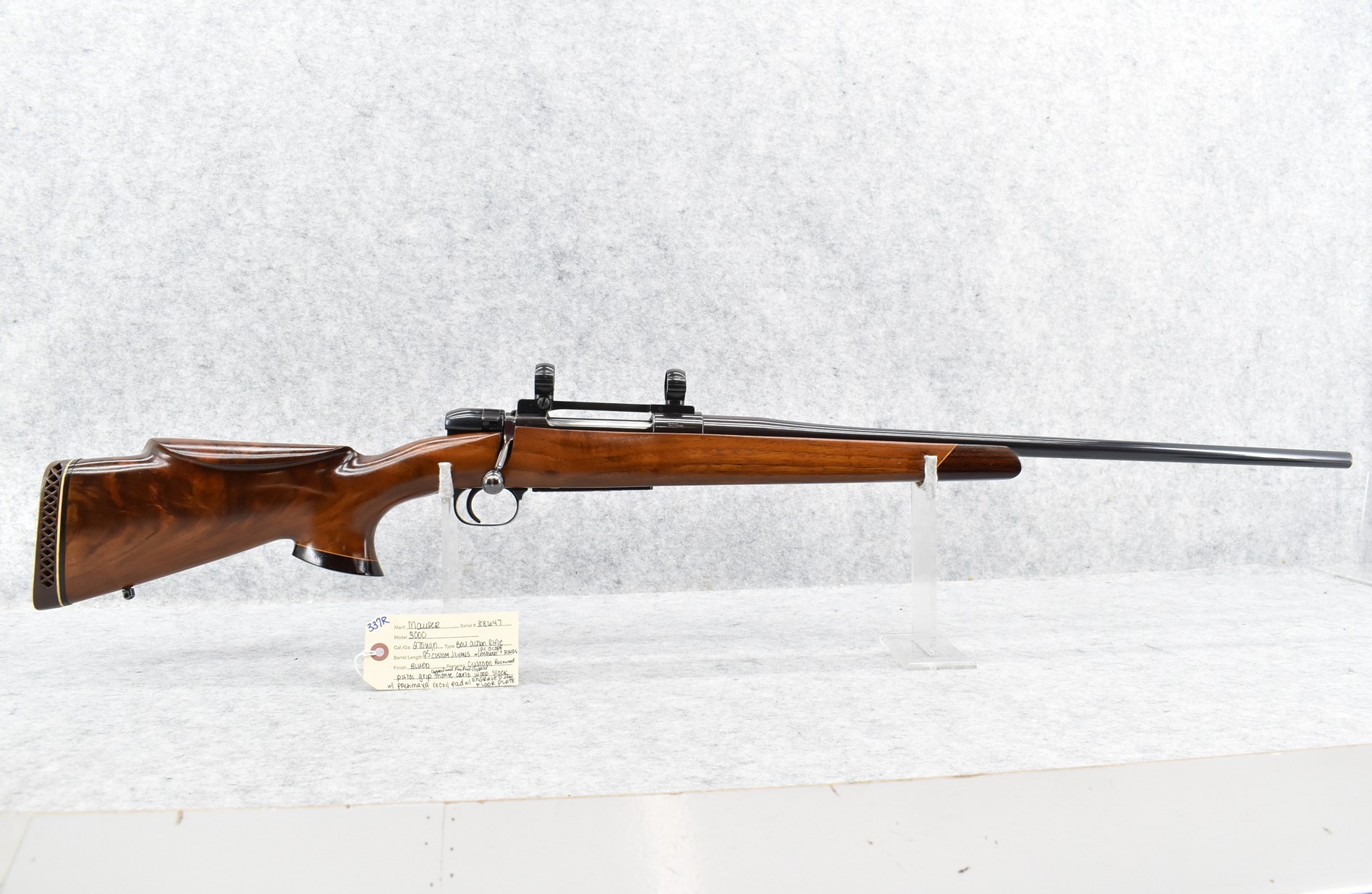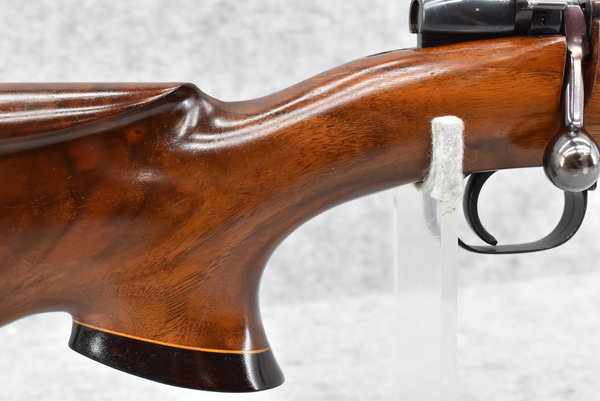 337R. Mauser – Mod. 3000 – 270 Win. Cal. Bolt Action Rifle – w/25” Custom J. Lyons Barrel – Blued Finish – w/Custom Rosewood Pistol Grip Capped & Forend Capped Monte Carlo Wood Stocks w/Pachmayr Recoil Pad – w/Engraved Stag Floor Plate – w/1pc. Scope Base & Rings