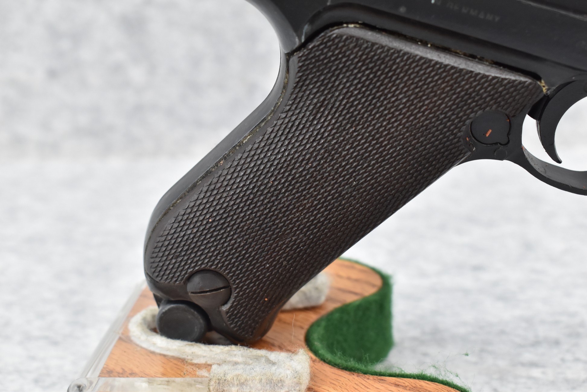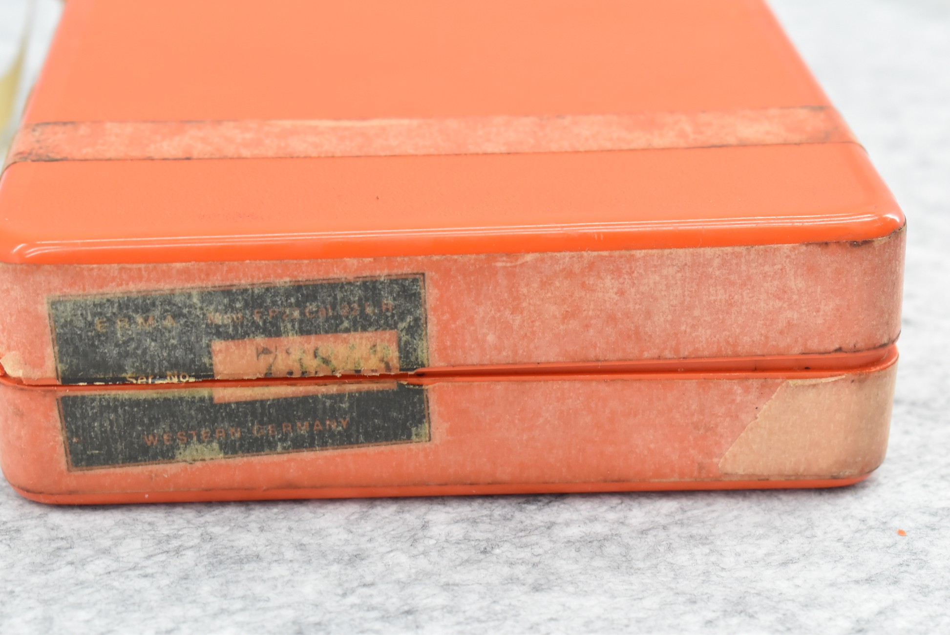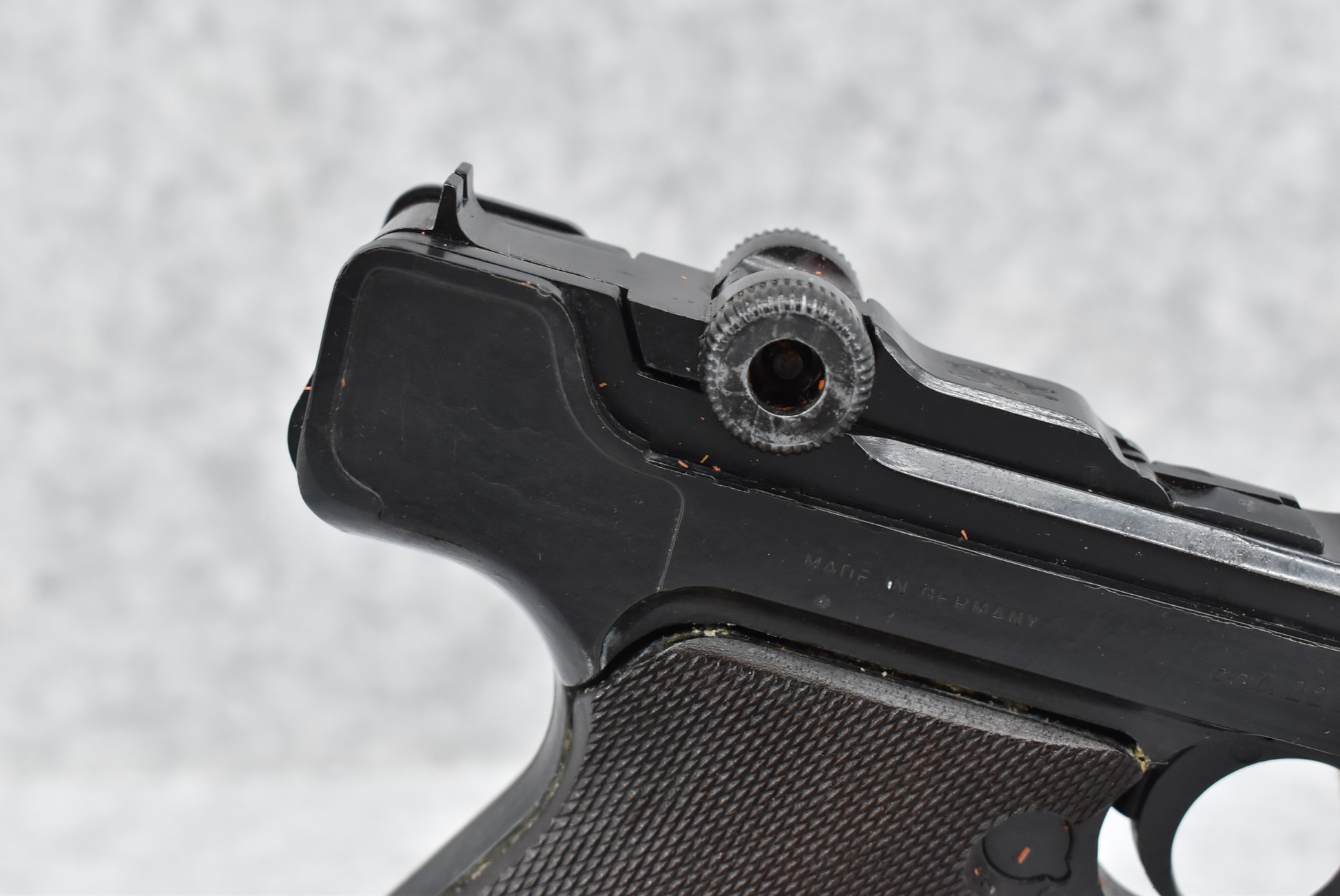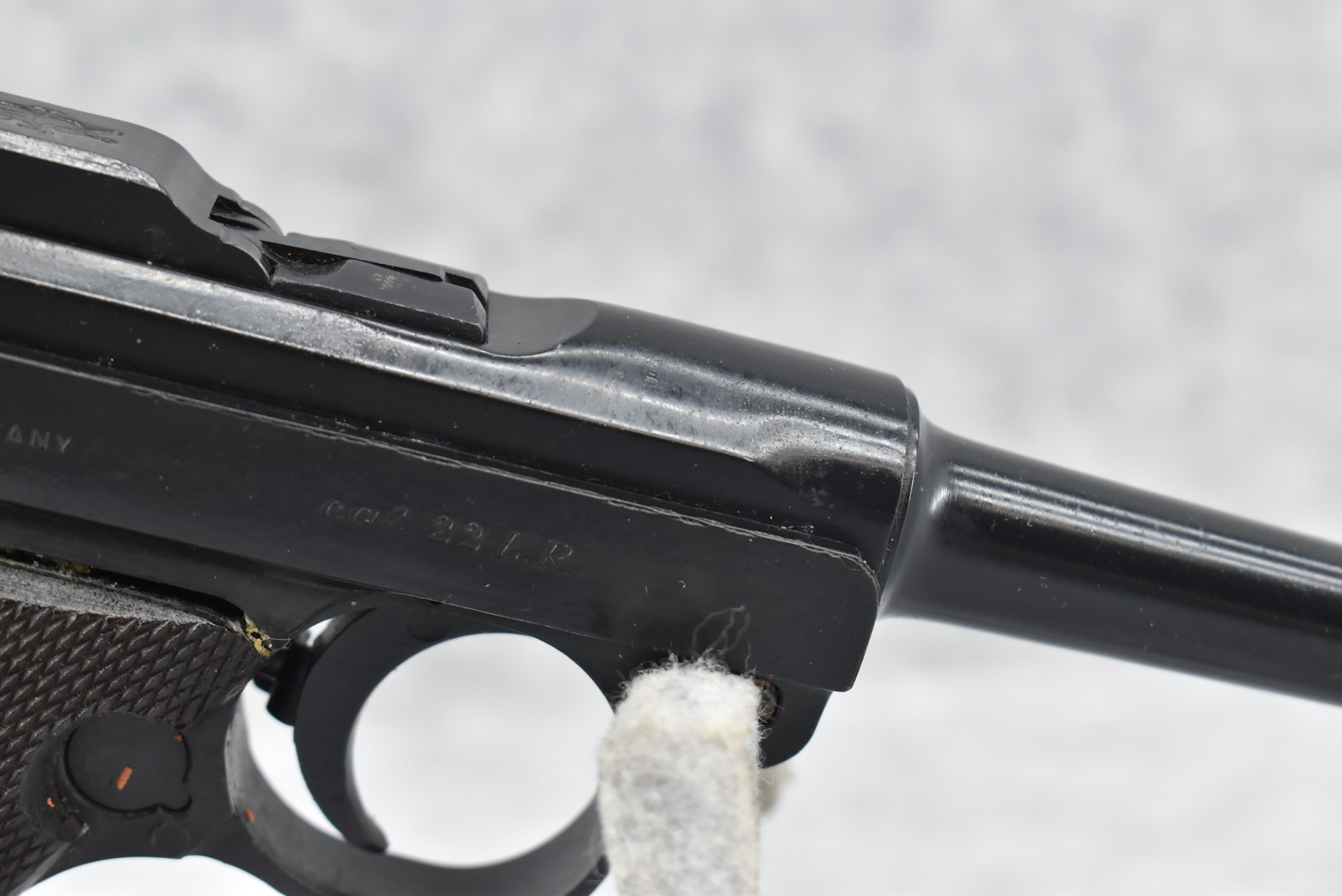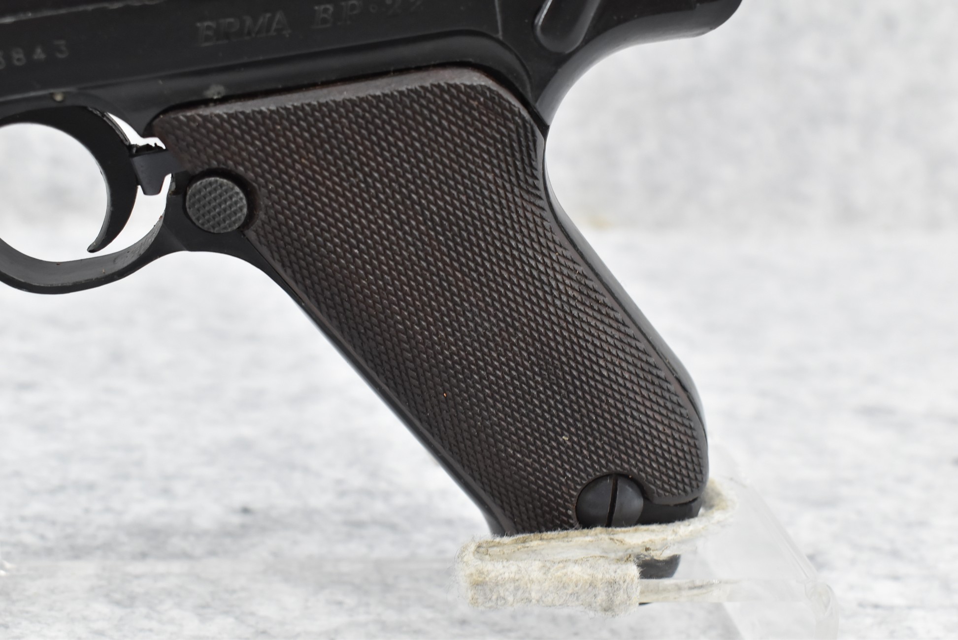 338R. Erma – Mod. EP-22 (Luger) – 22LR Cal. Semi-Auto Pistol – w/4.5” Barrel w/Front Blade & Rear Notch Sights – Blued Finish – w/Factory Checkered Wood Grip – w/2 Factory Mags – w/Factory Hard Case