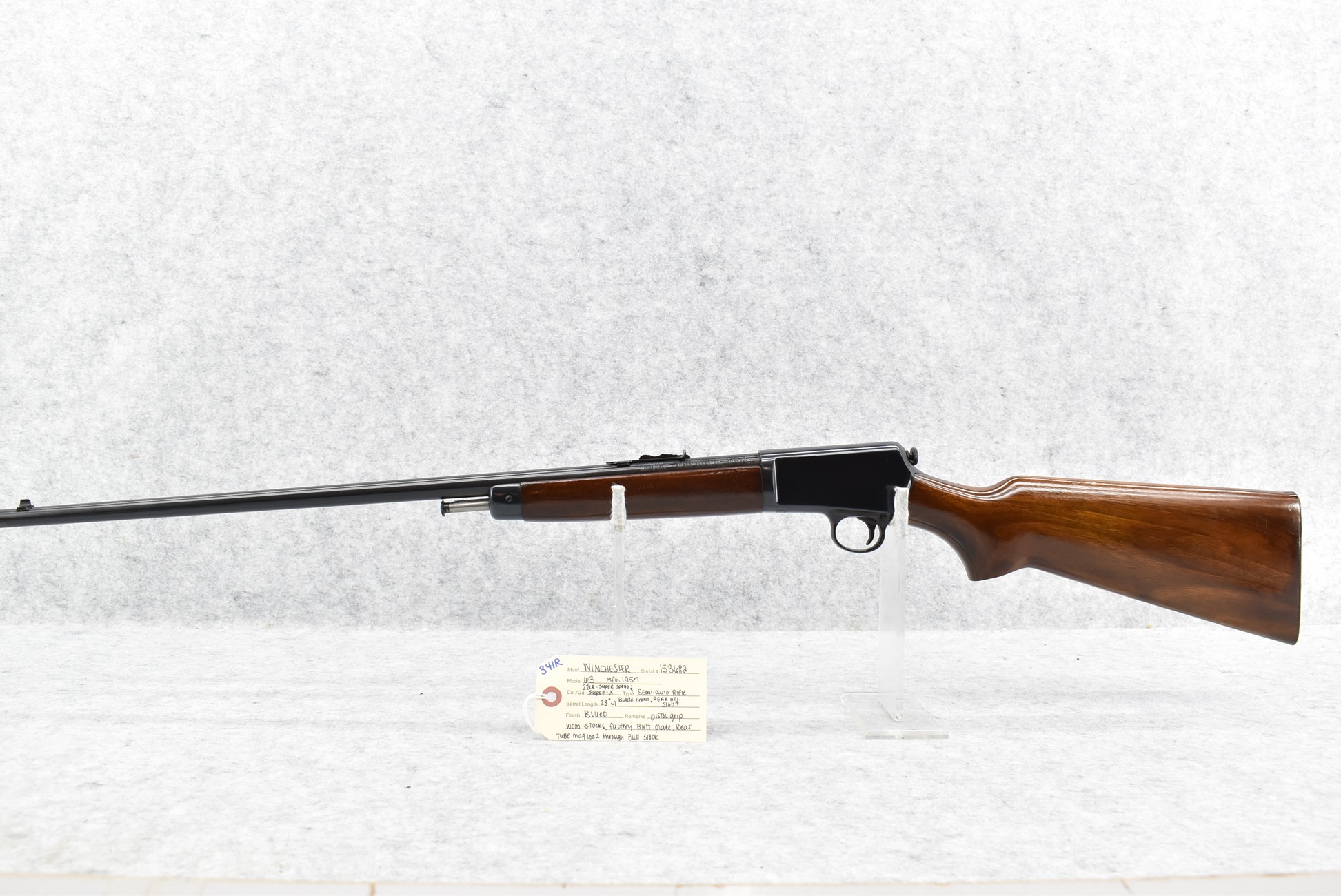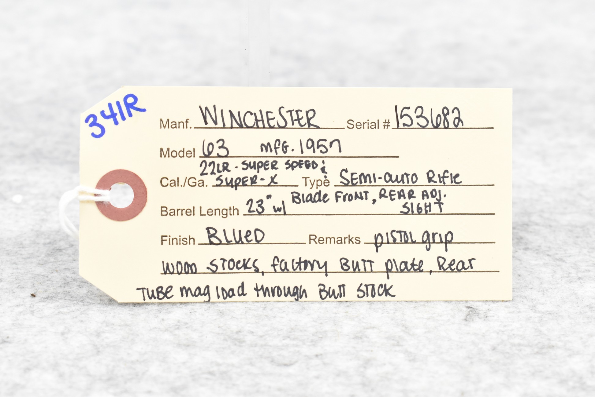 341R. Winchester – Mod. 63 22LR Super Speed & Super-X Cal. Semi-Auto Rifle – w/23” Barrel w/Blade Front & Rear Adj. Sights – Blued Finish – w/Pistol Grip Wood Stocks w/Factory Butt Plate – Rear Tube Mag Load Through Butt Stock – Mfg. 1957