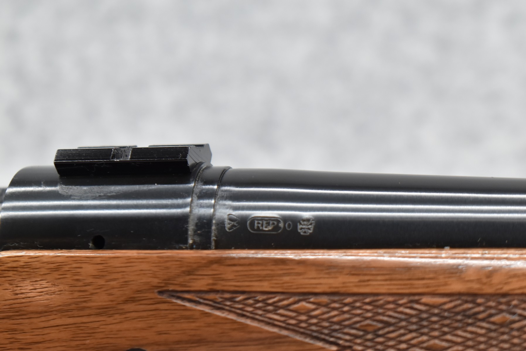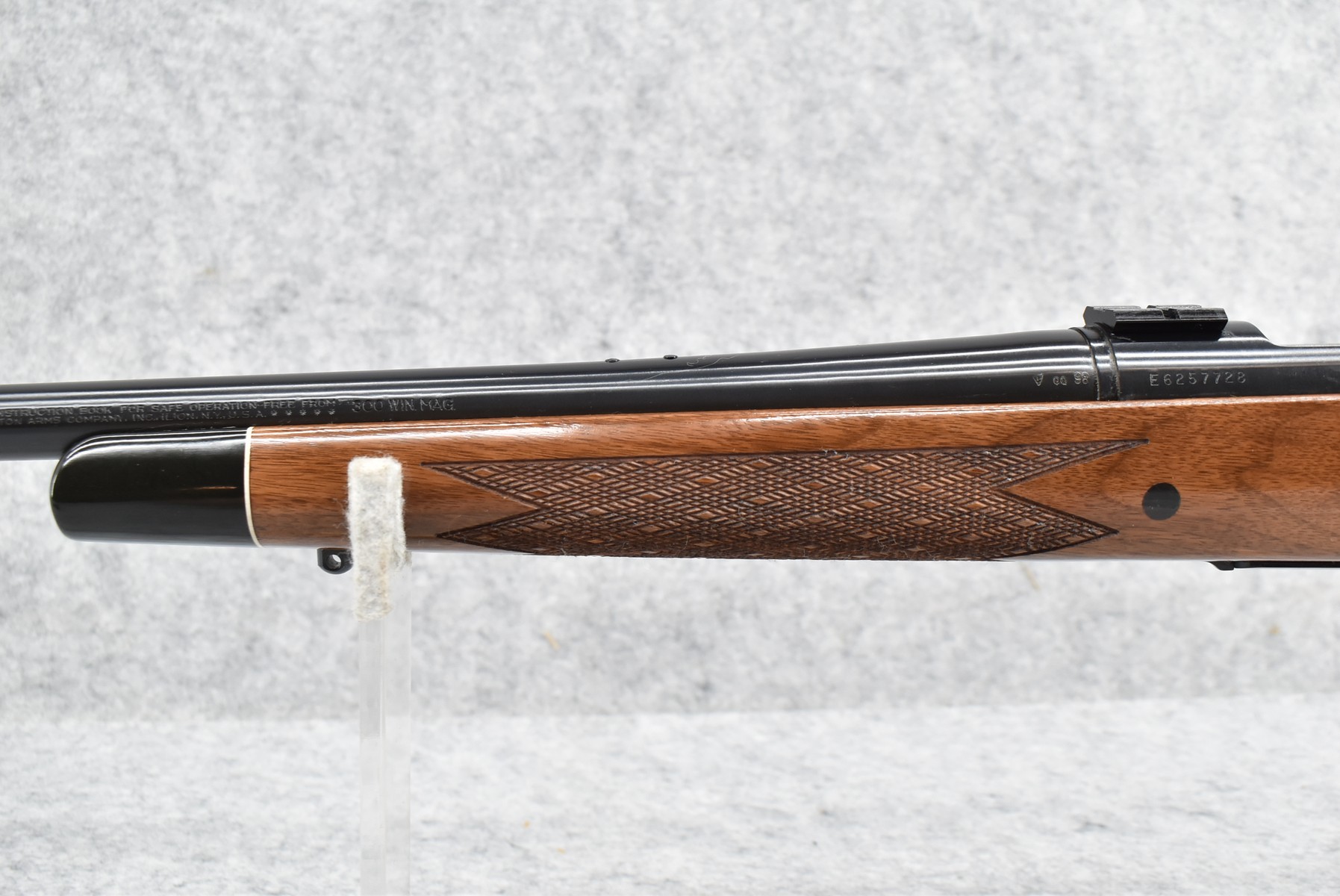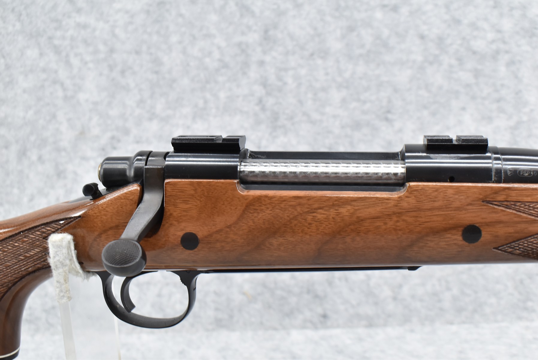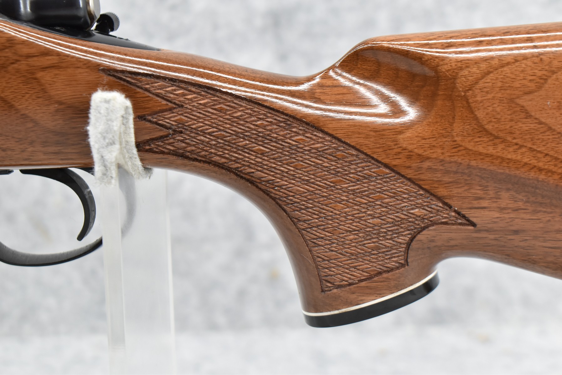 342R. Remington – Mod. 700 BDL Custom Deluxe – 300 Win. Mag. Cal. Bolt Action Rifle – w/24” Barrel – Blued Finish – w/Factory Checkered Pistol Grip Wood Stock w/Factory Recoil Pad – w/2pc. Rail Mount – w/Factory Box