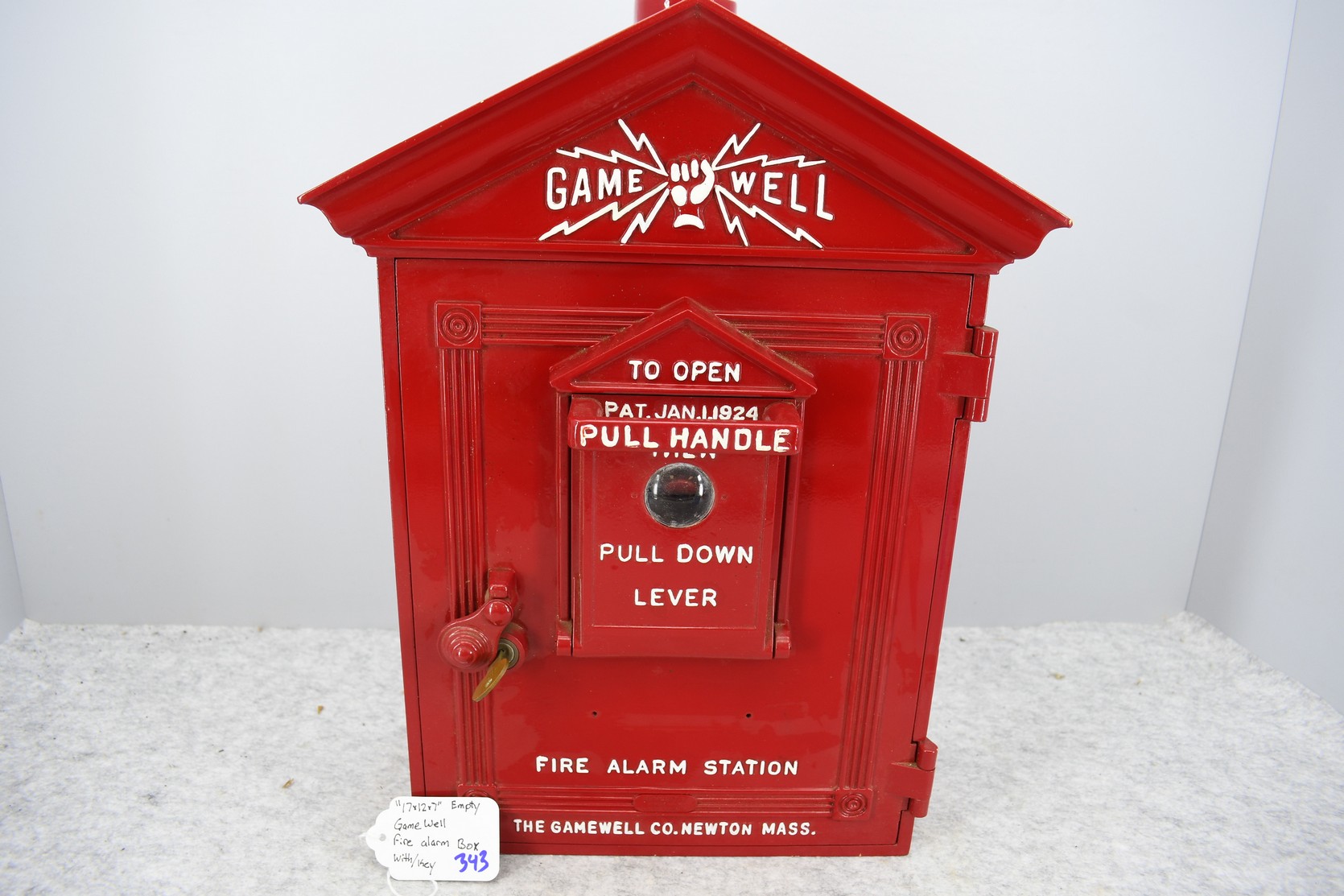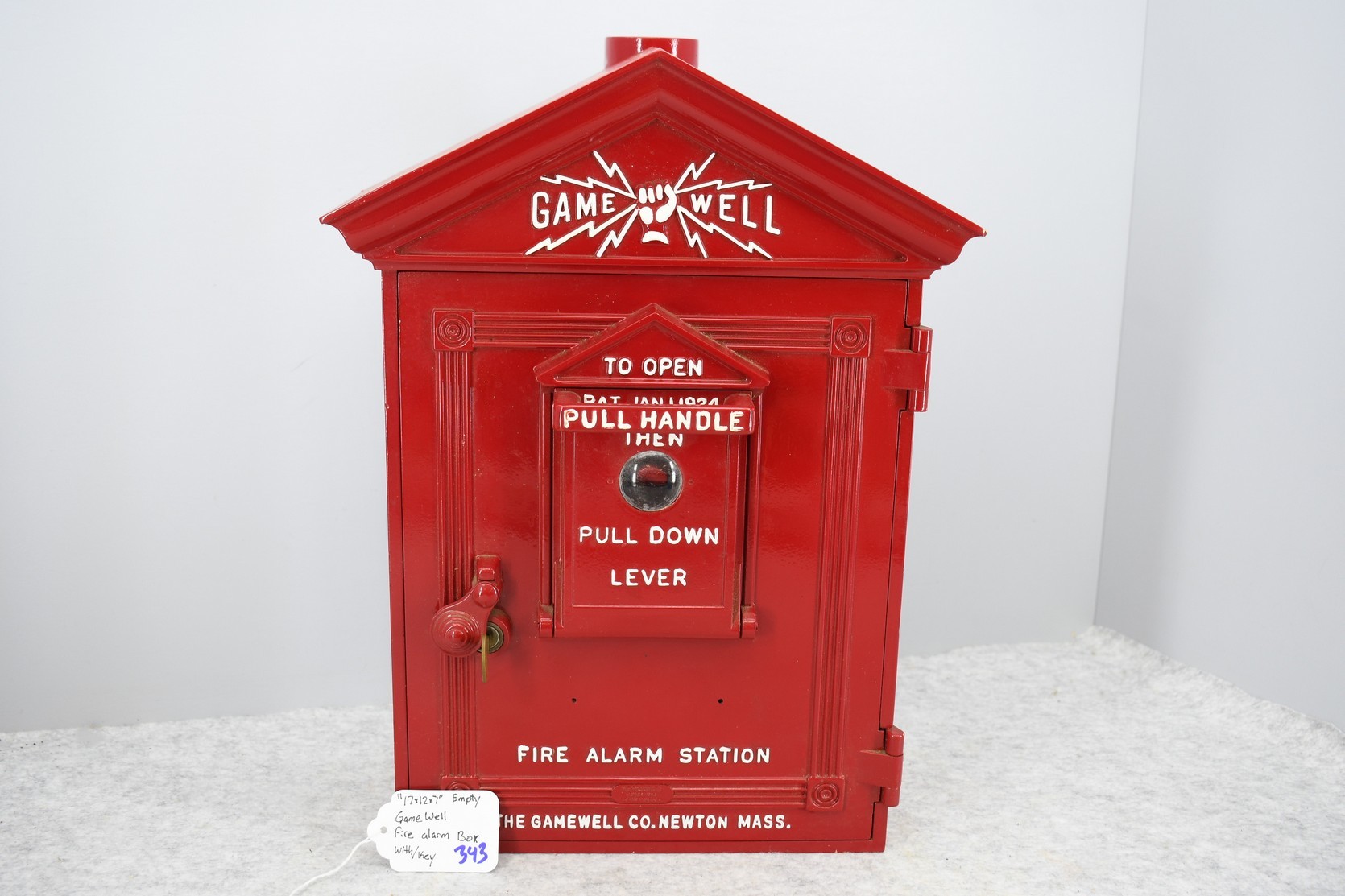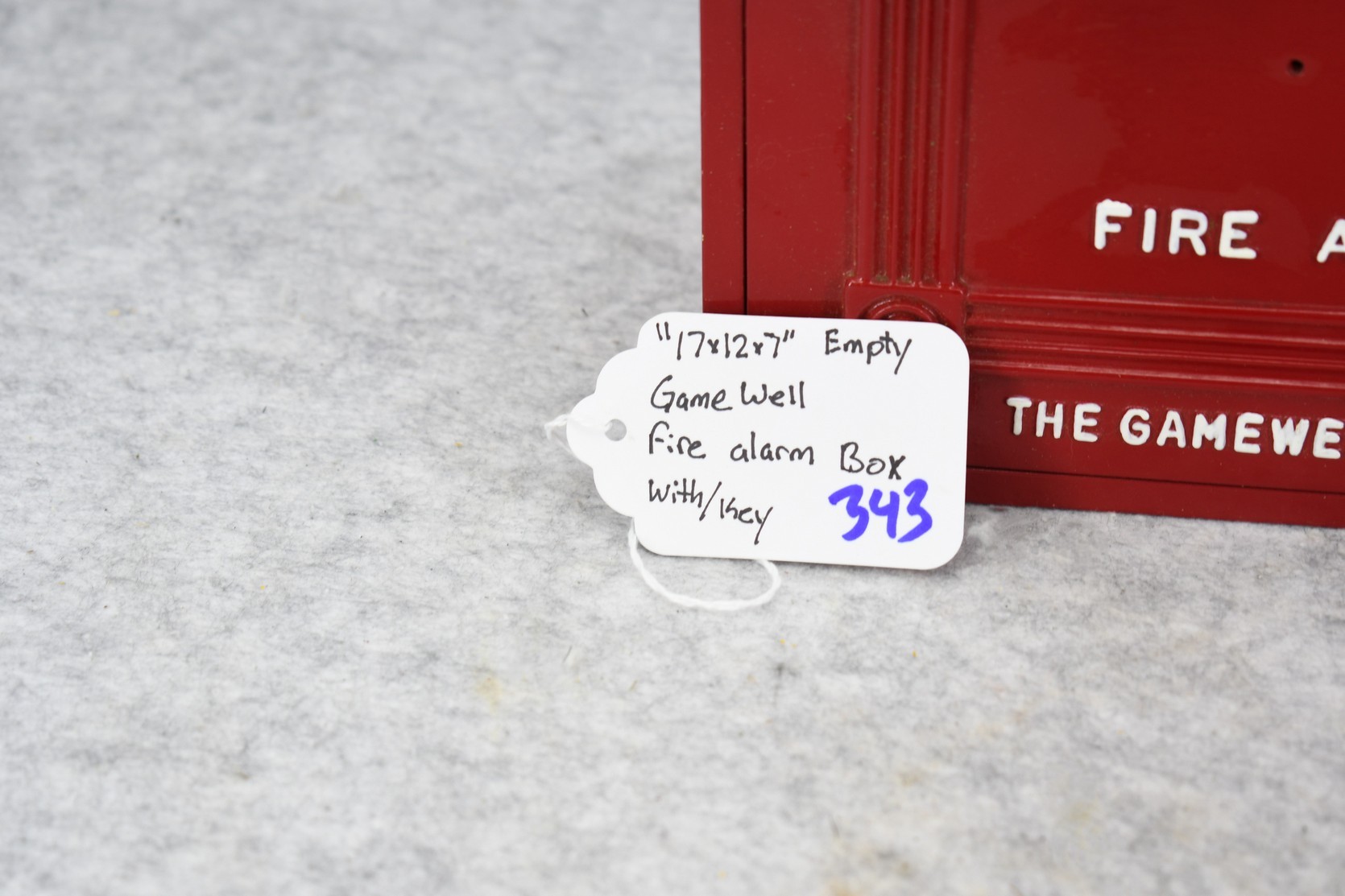 343. Empty Gamewell Fire Alarm Box w/Key – 17” x 12” x 7”