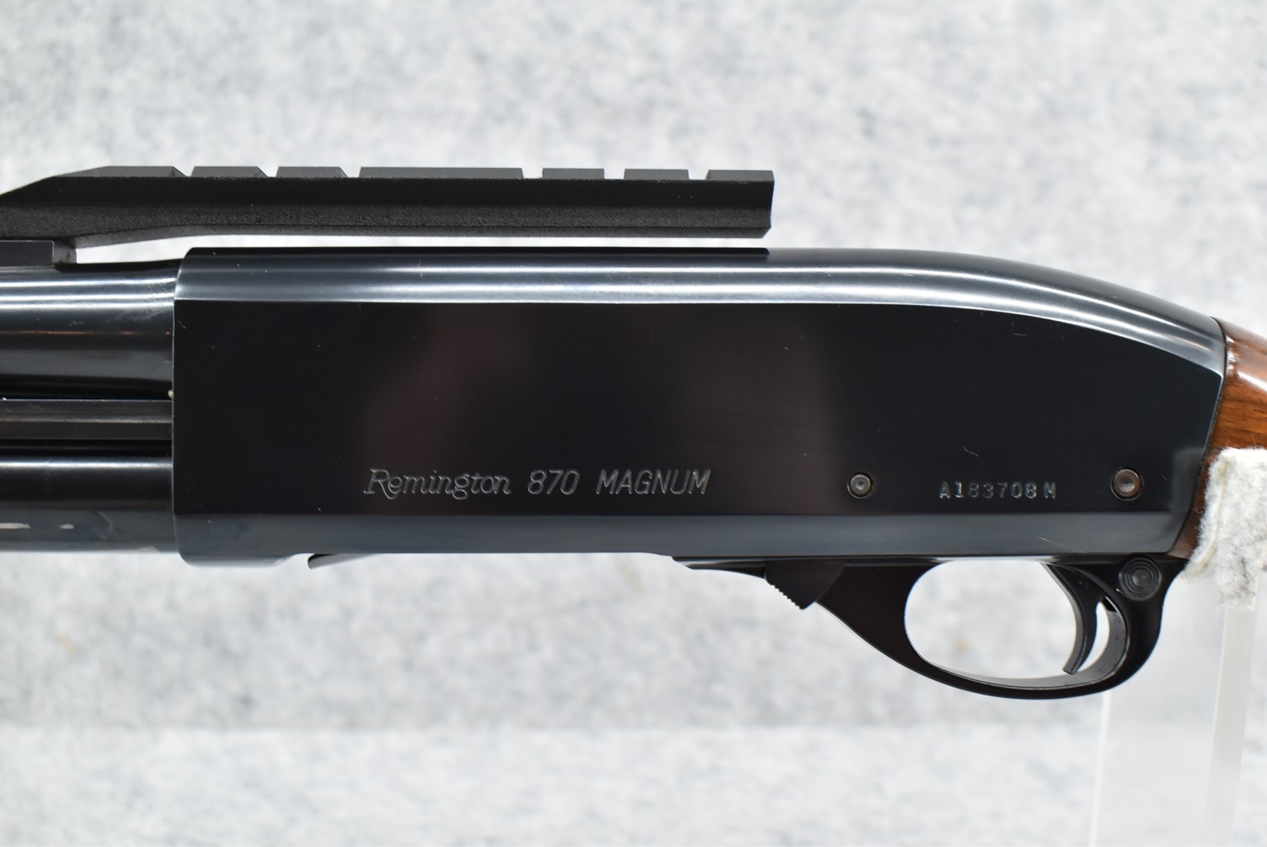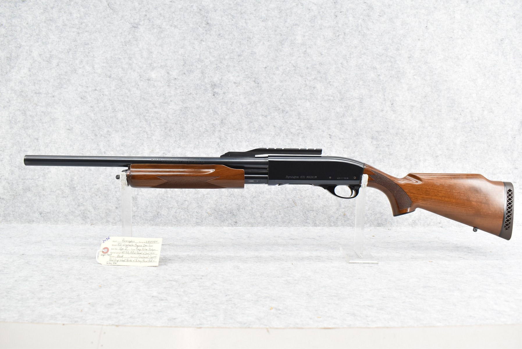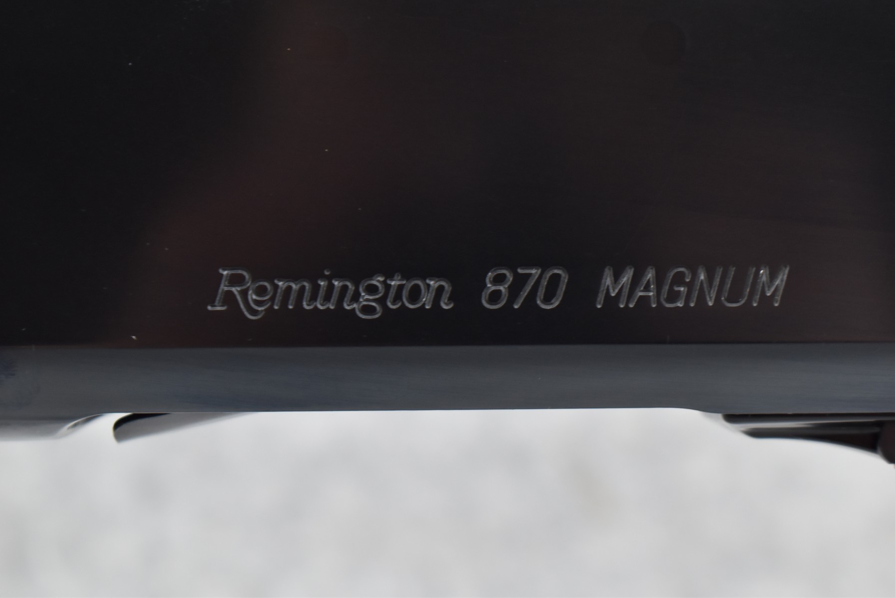 343R. Remington – Mod. 870 Wingmaster Magnum Deer Gun – 12ga. 3” Pump Action Shotgun – w/20” Fully Rifled Barrel (w/Cantilever Scope Mount) – Blued Finish – w/Checkered Cappd Pistol Grip Wood Stocks w/Factory Recoil Pad –w/Factory Box