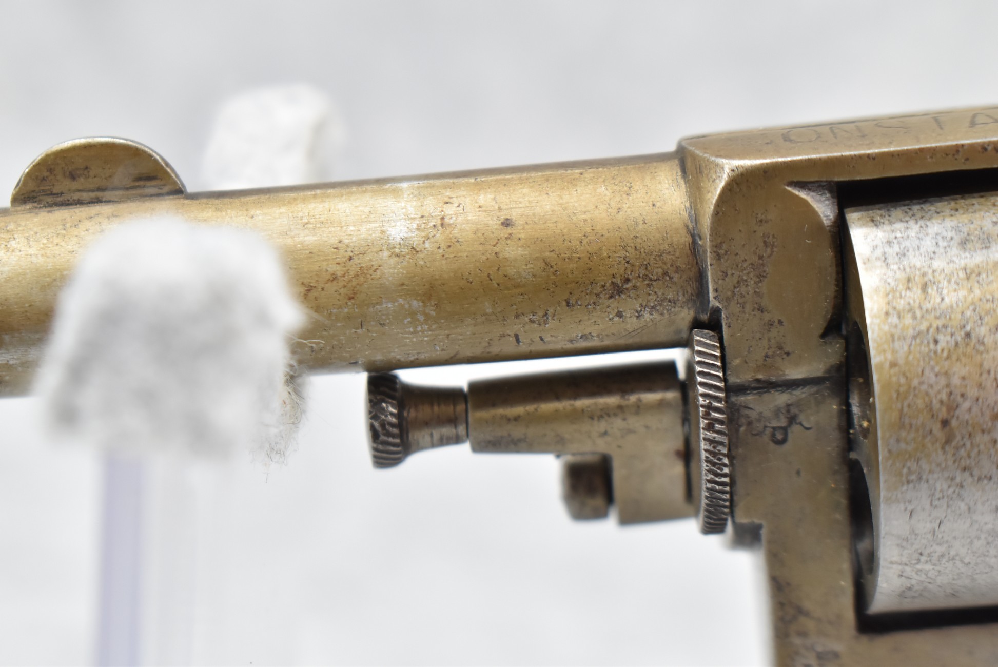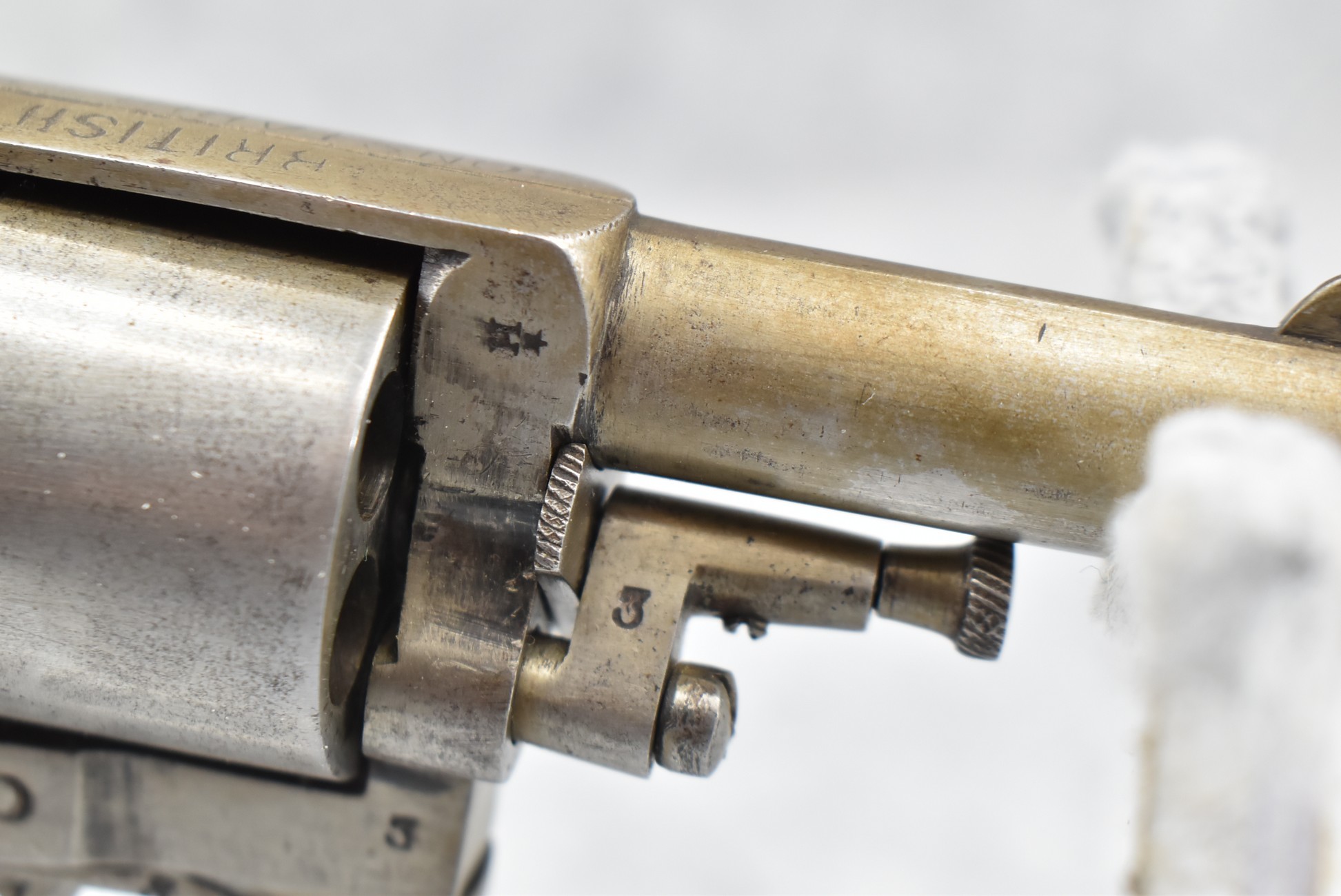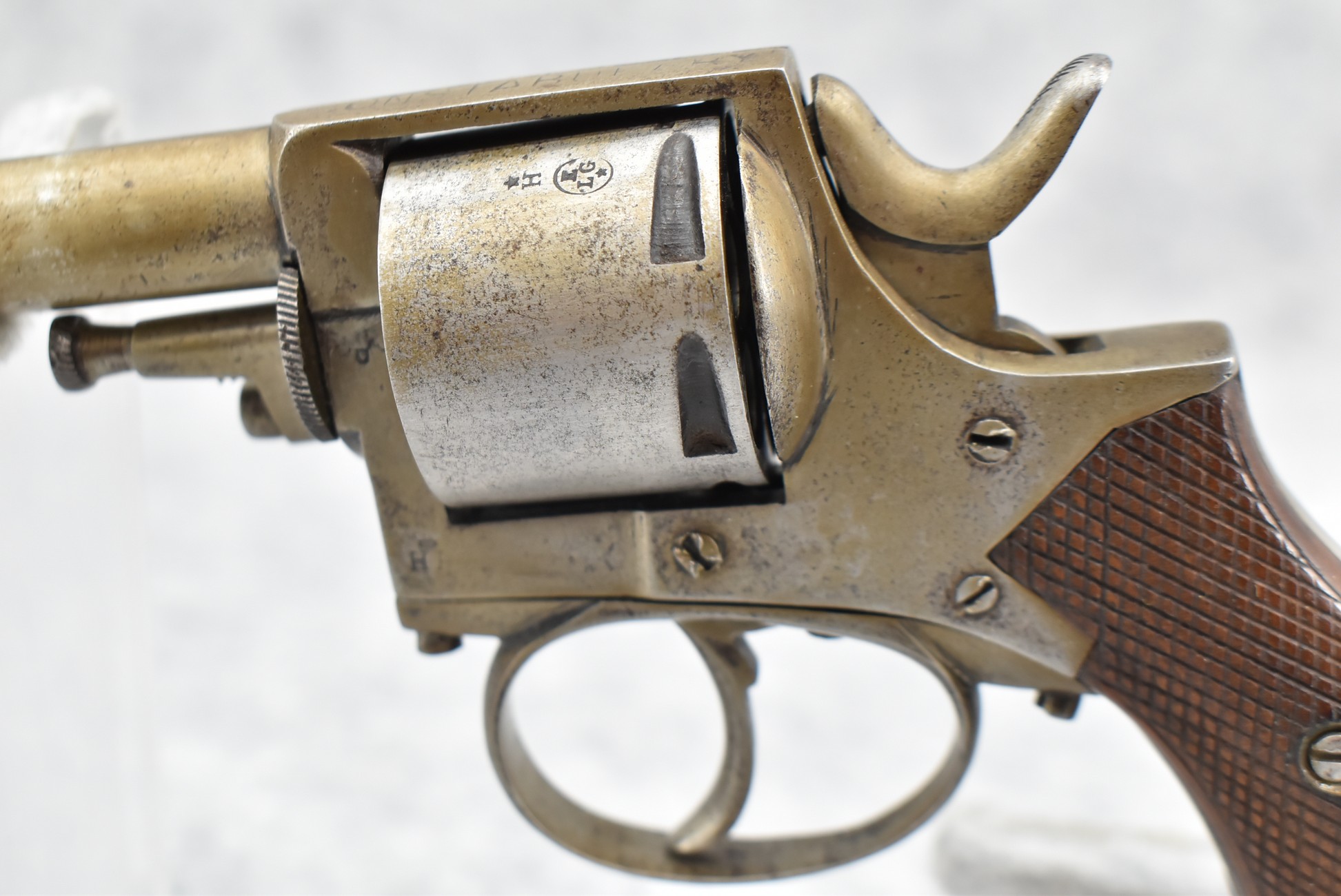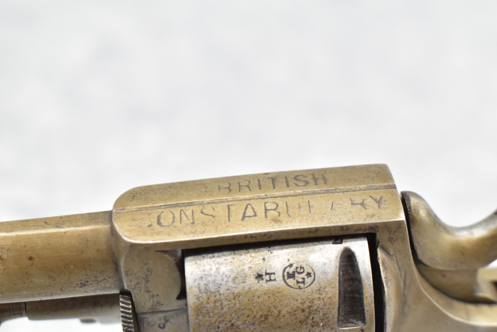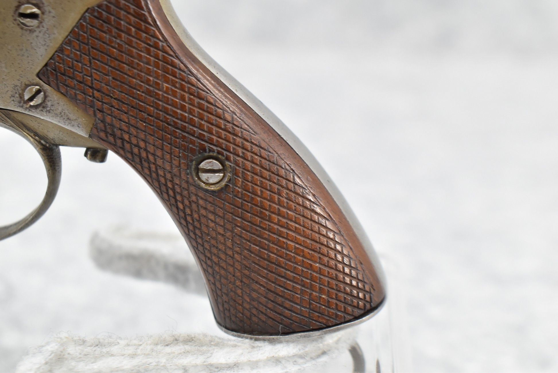 344. British Constabulary – 32 Cal. Double Action Revolver – w/2 ½” Barrel w/Blade Front & Groove Rear Sights – Gray Finish – w/Checkered Wood Grips – w/Lanyard Ring – Note: Trigger Does Not Reset On its Own After Double Action Firing