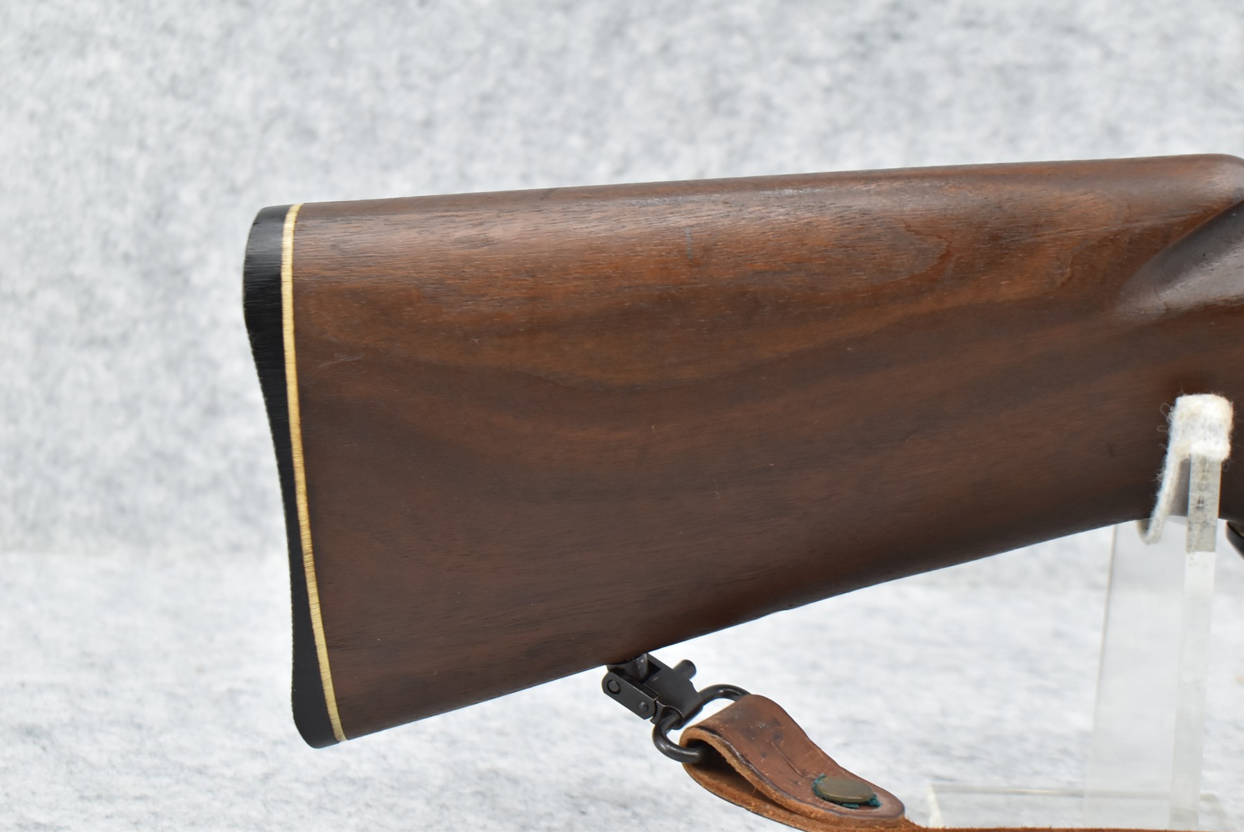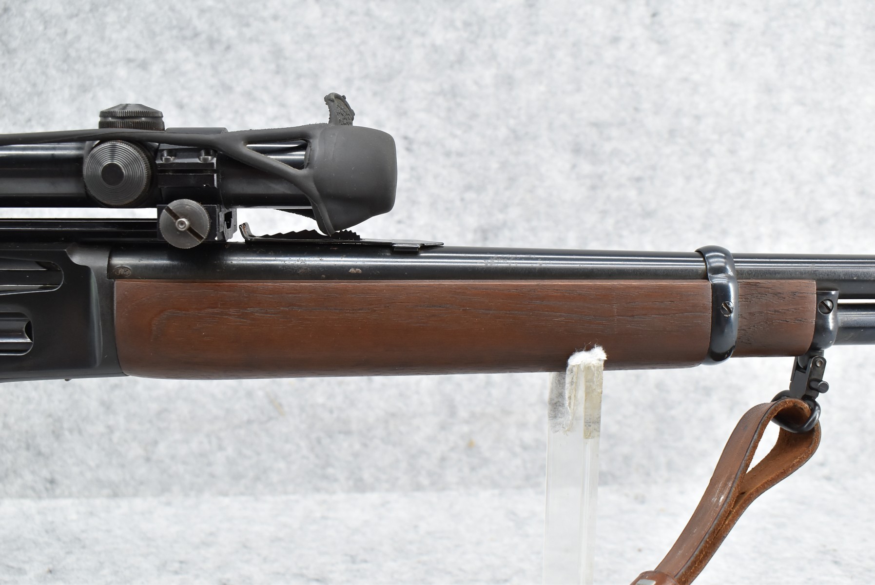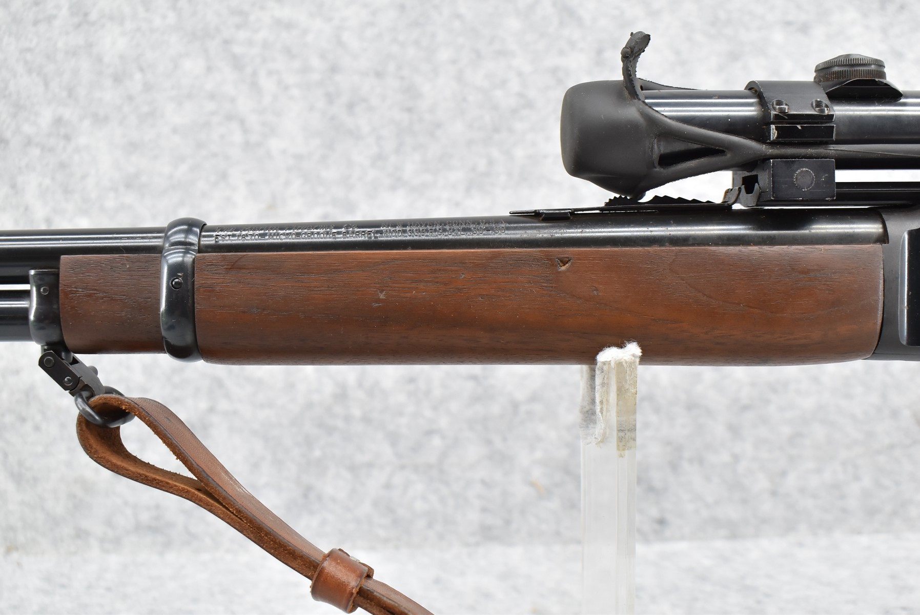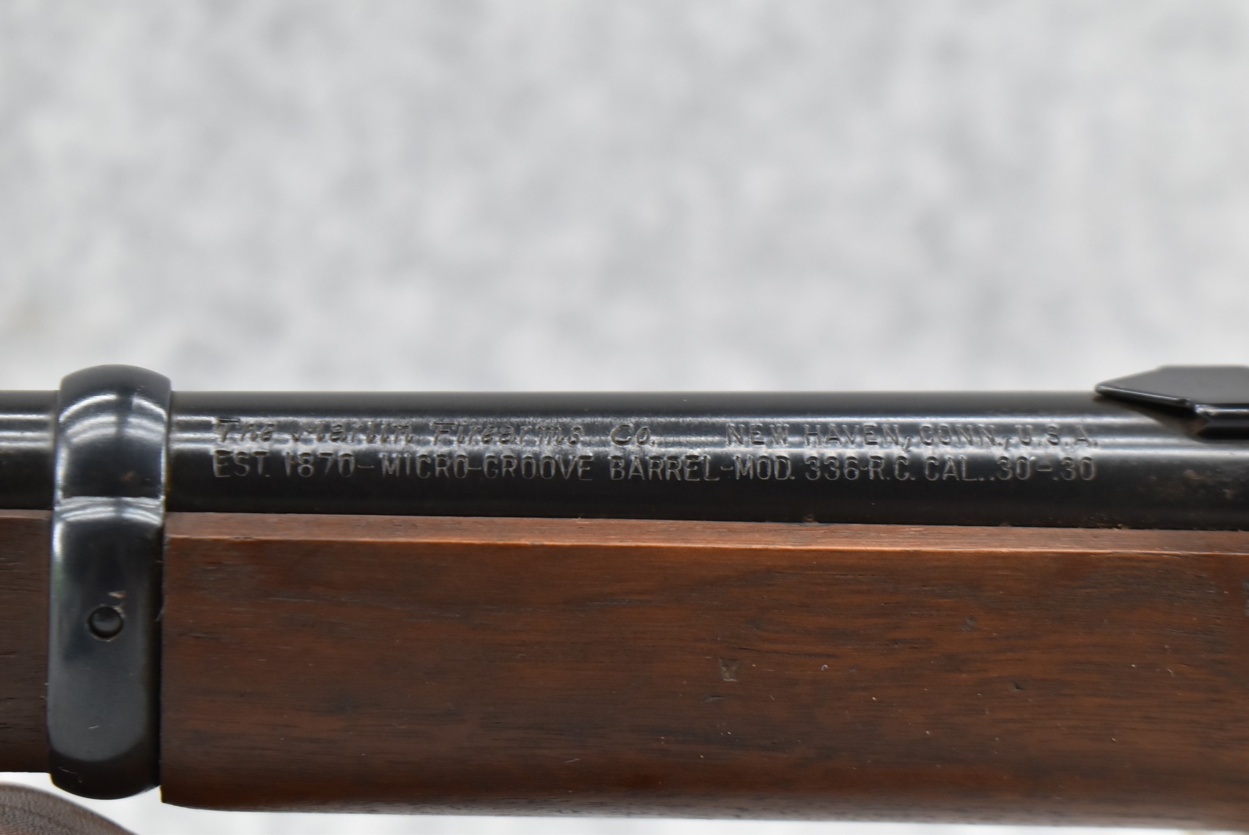 344R. Marlin – Mod. 336 RC – 30-30 Win. Cal. Lever Action Rifle – w/20” JM Stamped Barrel w/Hooded Front & Rear Adj. Sporting Sight – w/Full Length Tubular Mag – Blued Finish – w/Smooth Capped Pistol Grip Wood Stocks w/Factory Butt Plate – w/Leather Sling – w/Scope – Mfg. 1967