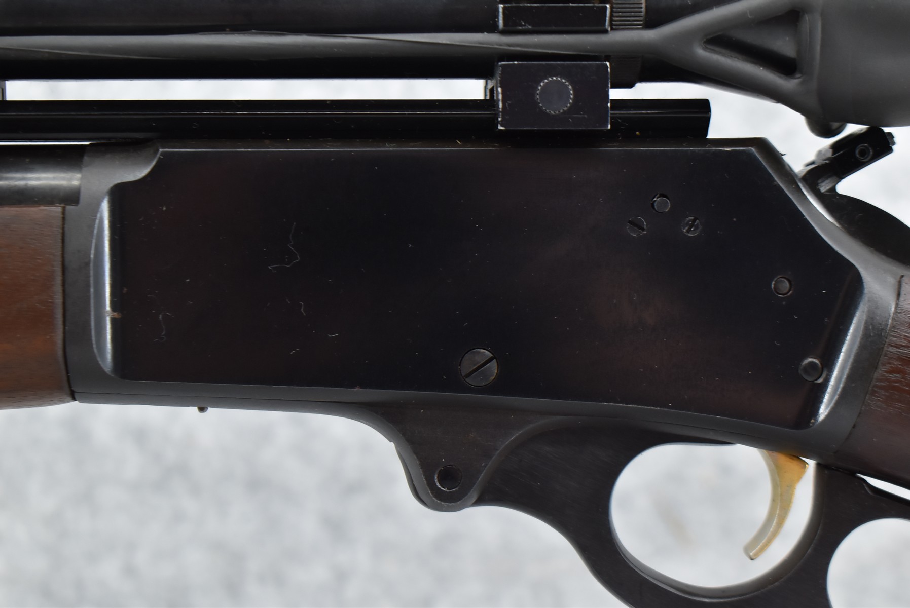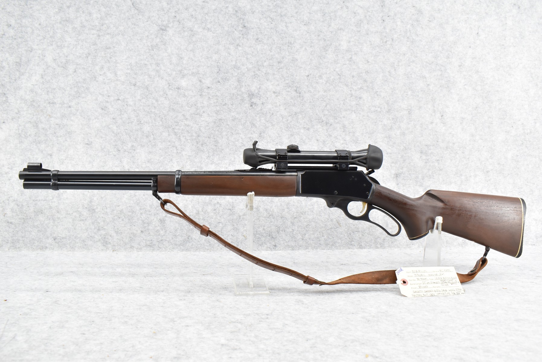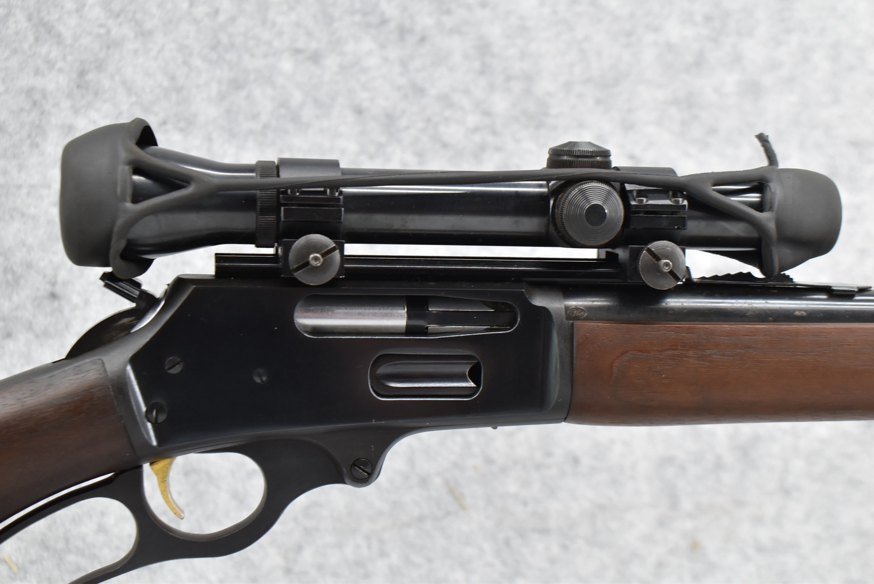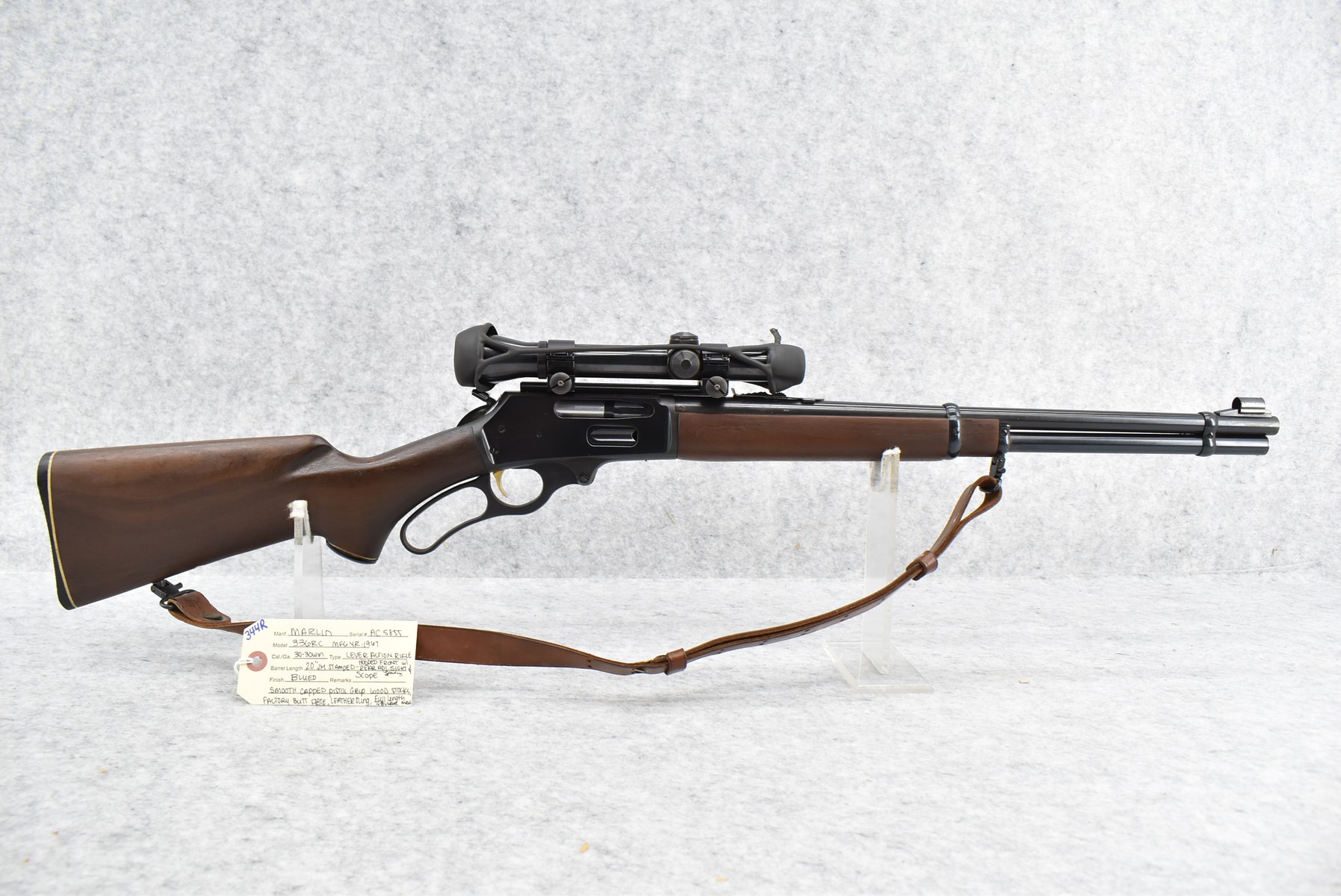 344R. Marlin – Mod. 336 RC – 30-30 Win. Cal. Lever Action Rifle – w/20” JM Stamped Barrel w/Hooded Front & Rear Adj. Sporting Sight – w/Full Length Tubular Mag – Blued Finish – w/Smooth Capped Pistol Grip Wood Stocks w/Factory Butt Plate – w/Leather Sling – w/Scope – Mfg. 1967