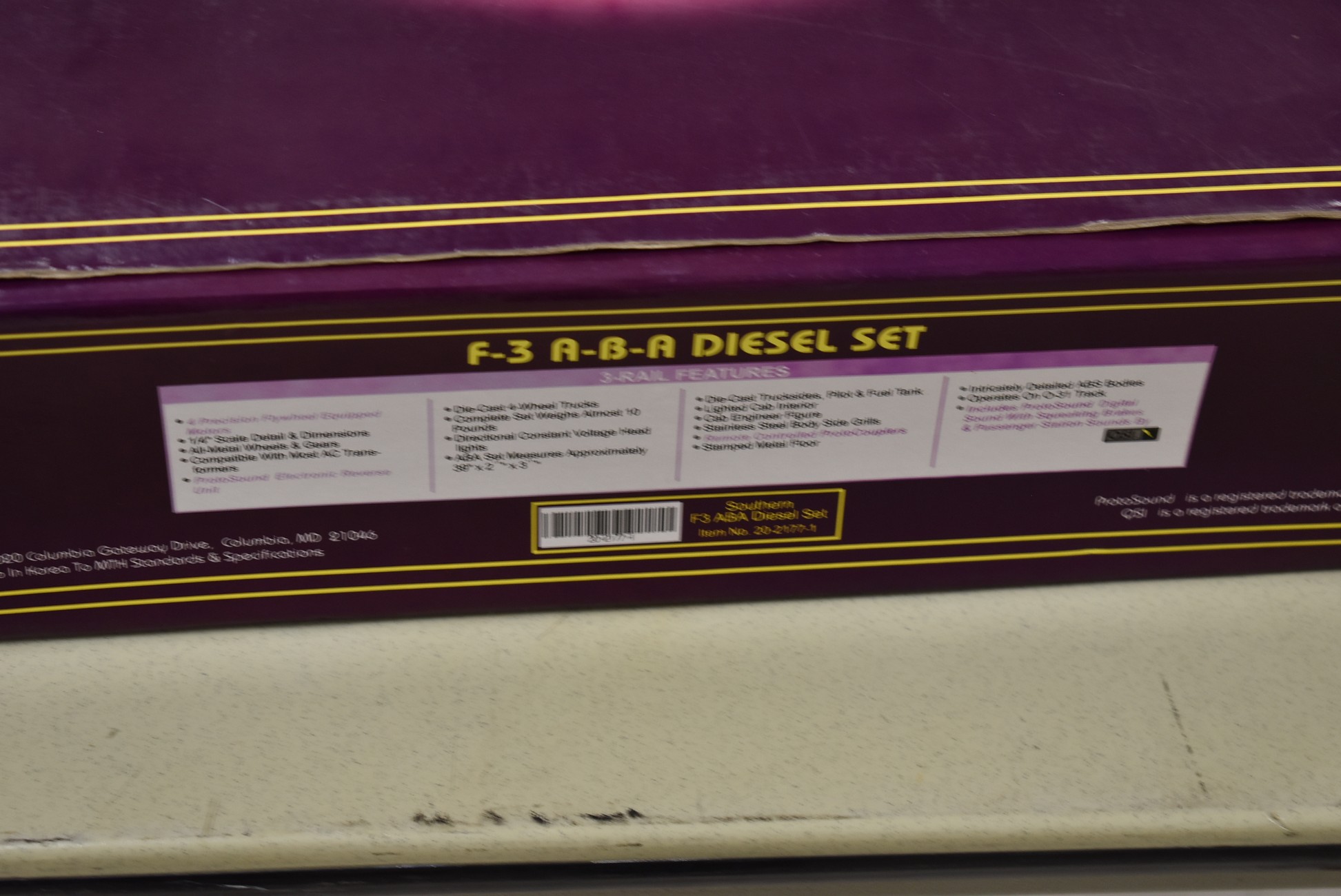345. M.T.H F-3 A-B-A Southern Diesel Set 20-2177 – in box – Selling w/Set is MTH 20-2177-3 Southern B Unit Non-Powered – w/Box