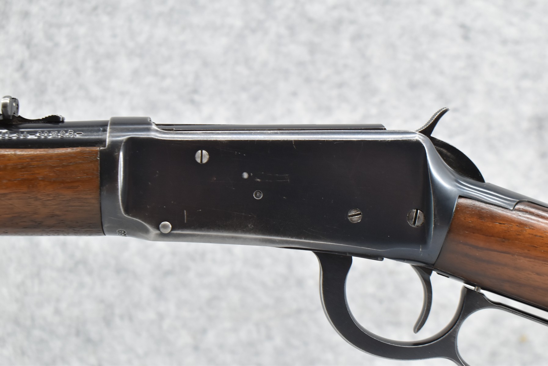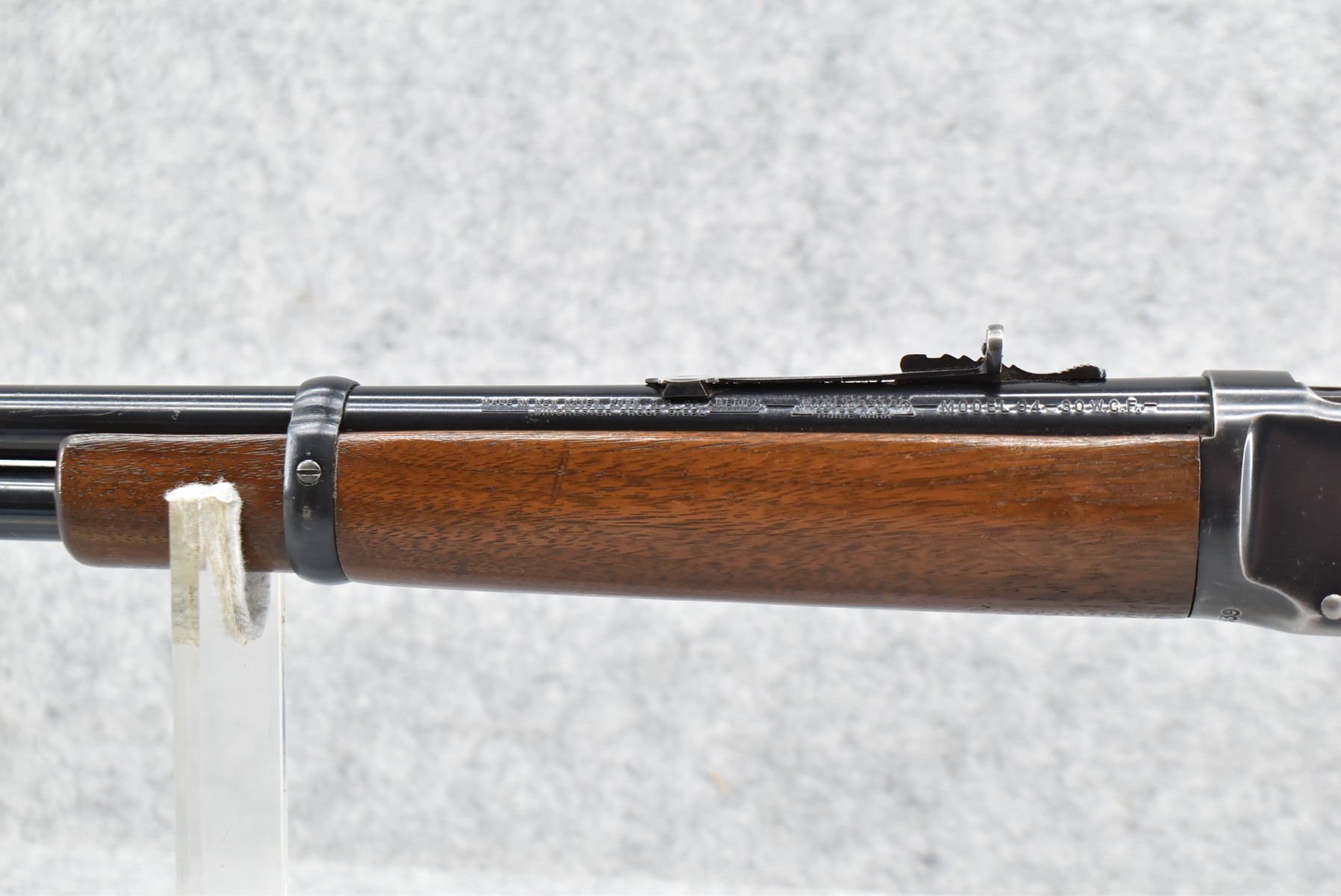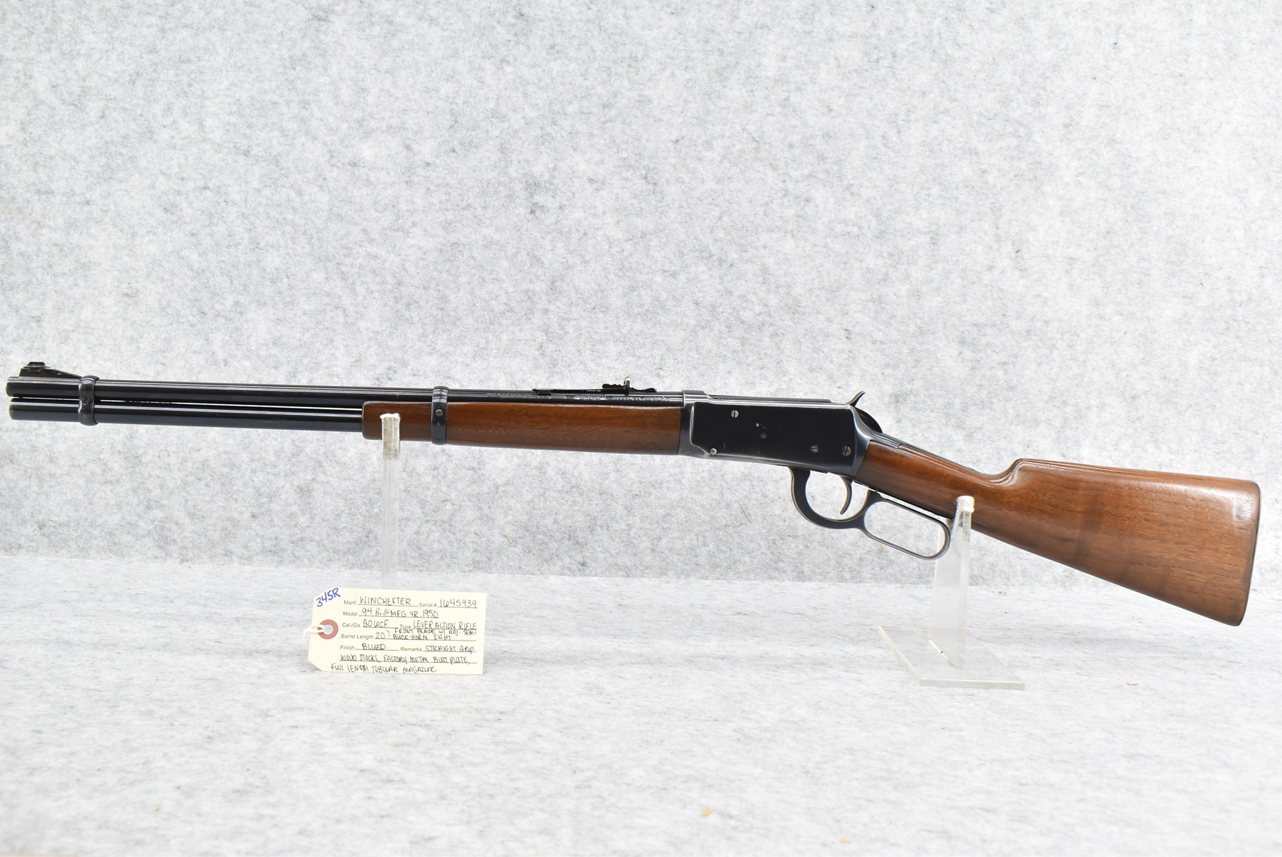 345R. Winchester – Mod. 94 (Pre-64) – 30 WCF Cal. Lever Action Rifle – w/20” Barrel w/Front Blade & Adj. Semi-Buckhorn Sights w/Full Length Tubular Magazine – Blued Finish – w/Straight Grip Wood Stocks w/Factory Metal Butt Plate – Mfg. 1950
