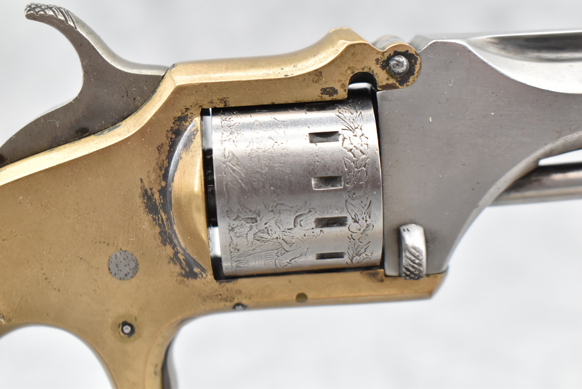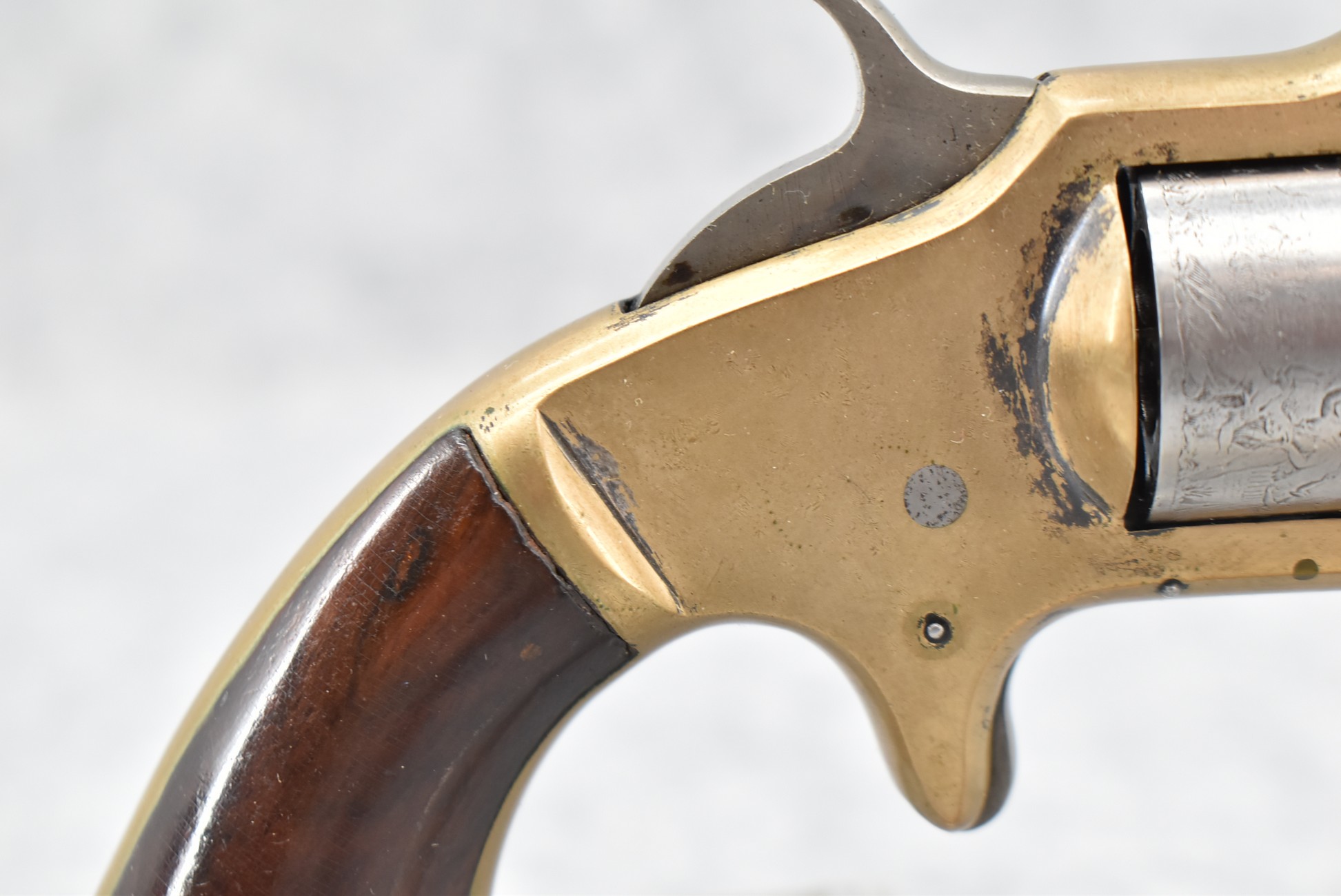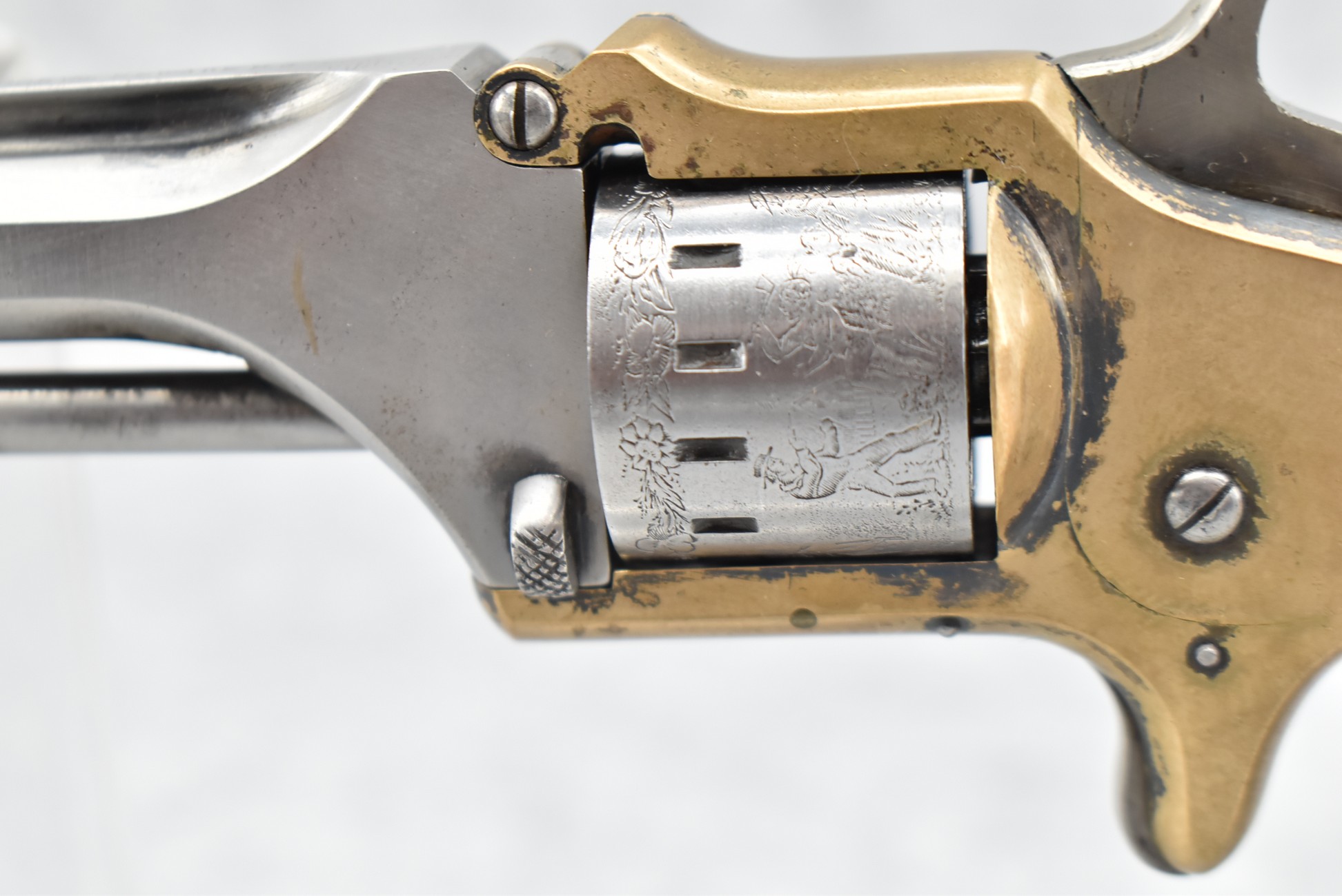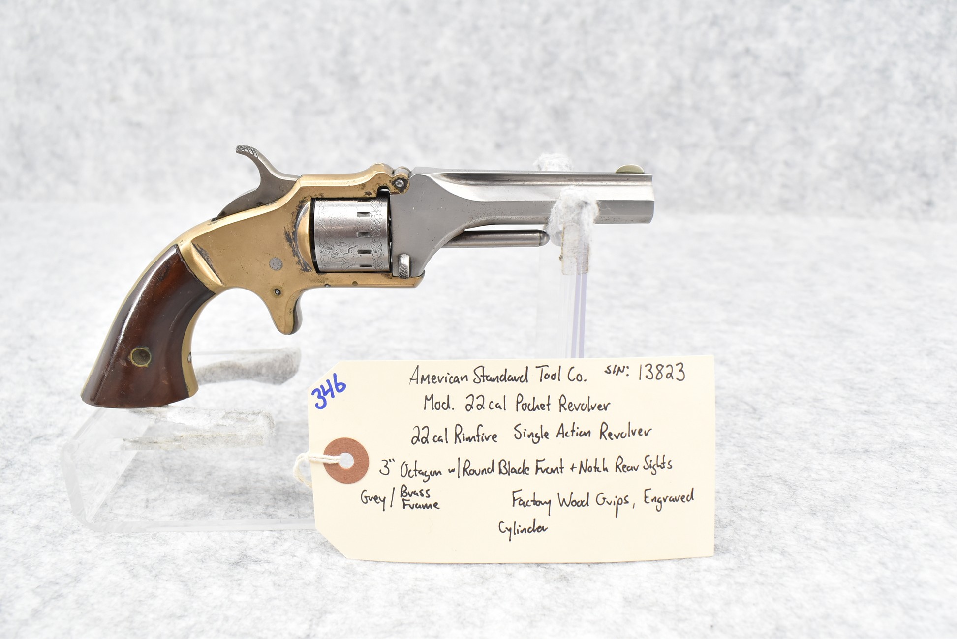 346. American Standard Tool Co. – Mod. 22 Cal. Pocket Revolver – 22 Cal. RF Single Action Revolver – w/3” Octagon Barrel w/Round Blade Front & Notch Rear Sights – Gray Finish w/Brass Frame – w/Factory Wood Grips – w/Engraved Cylinder