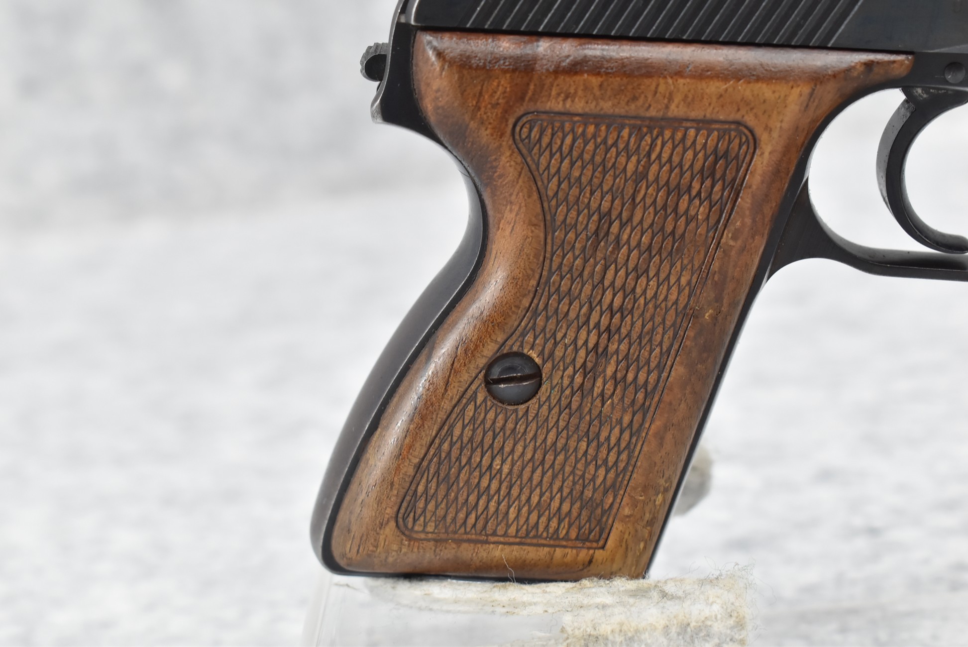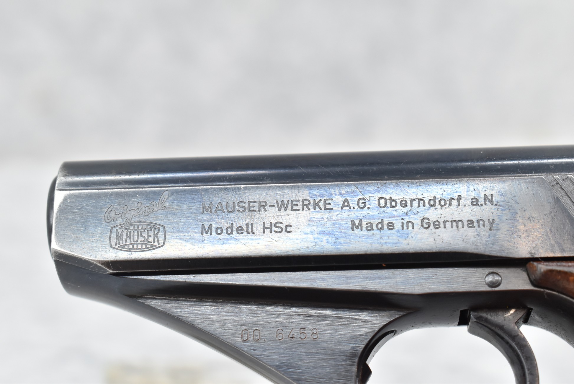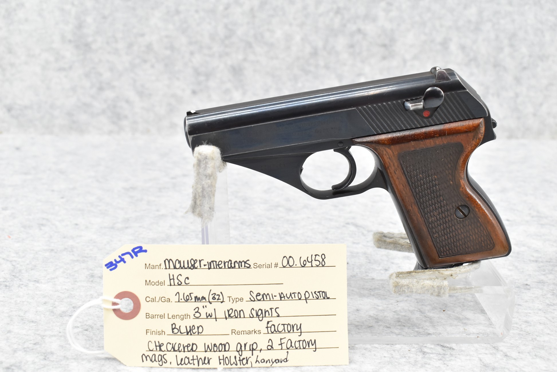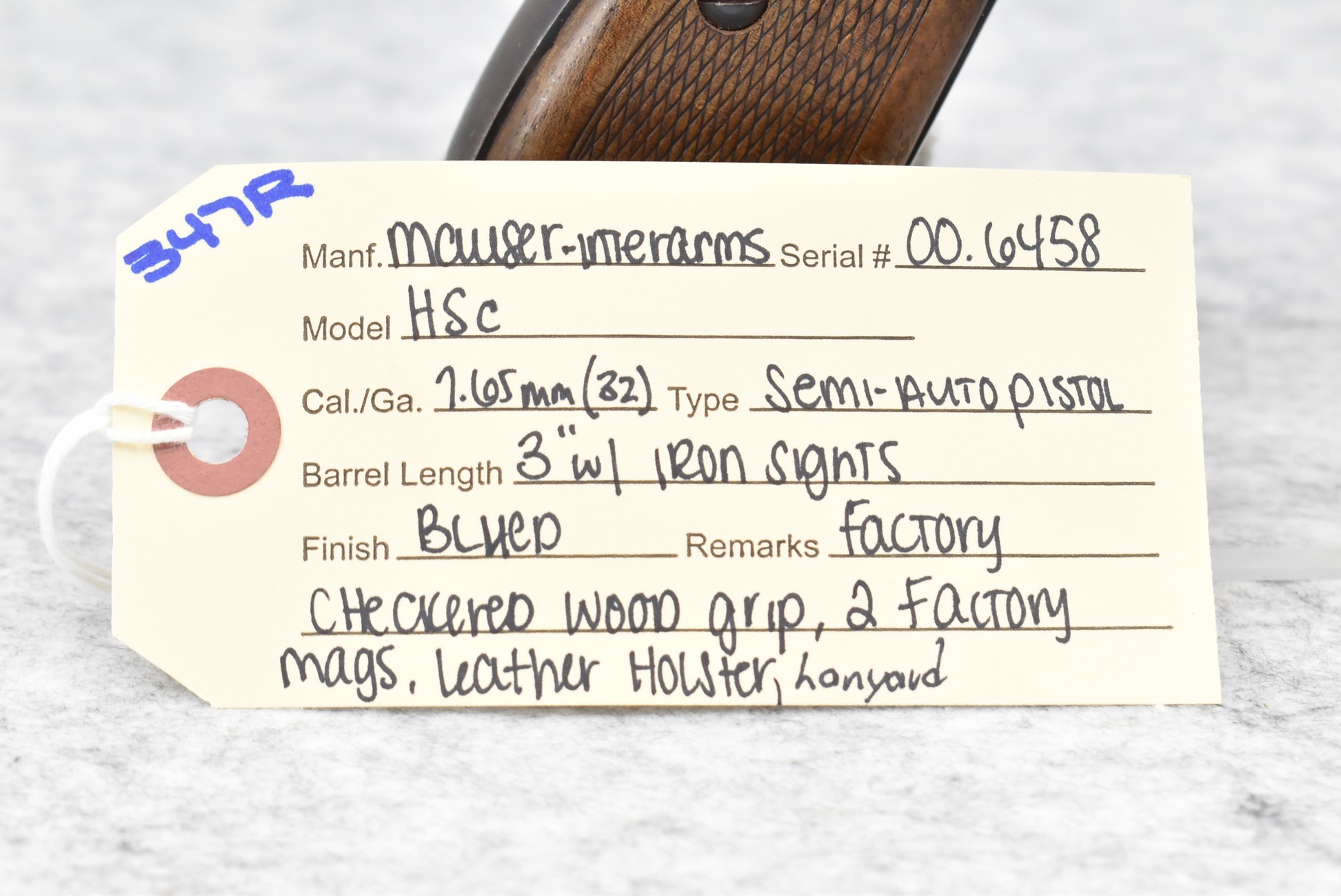 347R. Mauser (Interarms) – Mod. HSc – 7.65mm (32) Cal. Semi-Auto Pistol – w/3” Barrel w/Iron Sights – Blued Finish – w/Factory Checkered Wood Grip – w/2 Factory Mags – w/Lanyard – w/Leather Holster