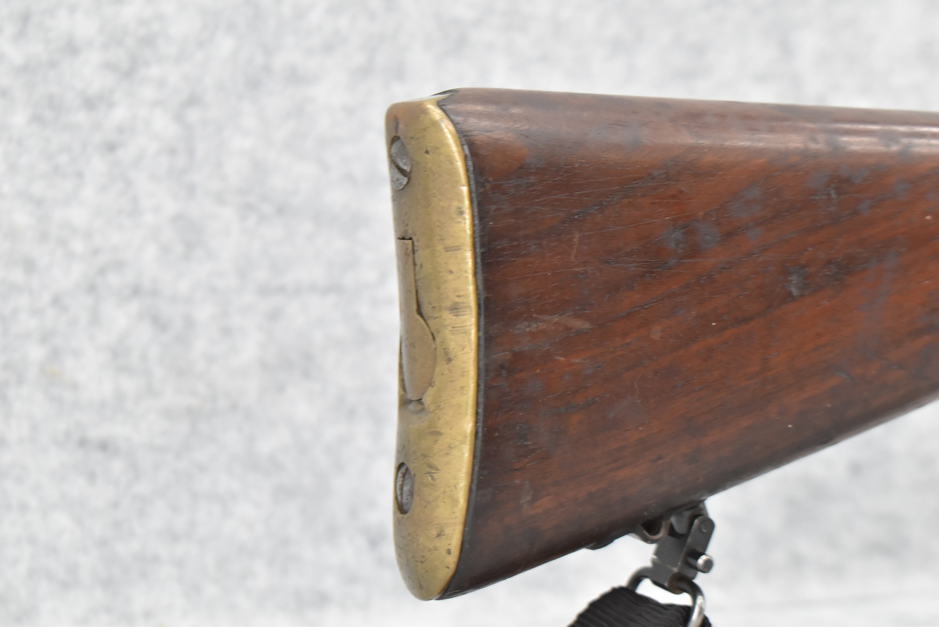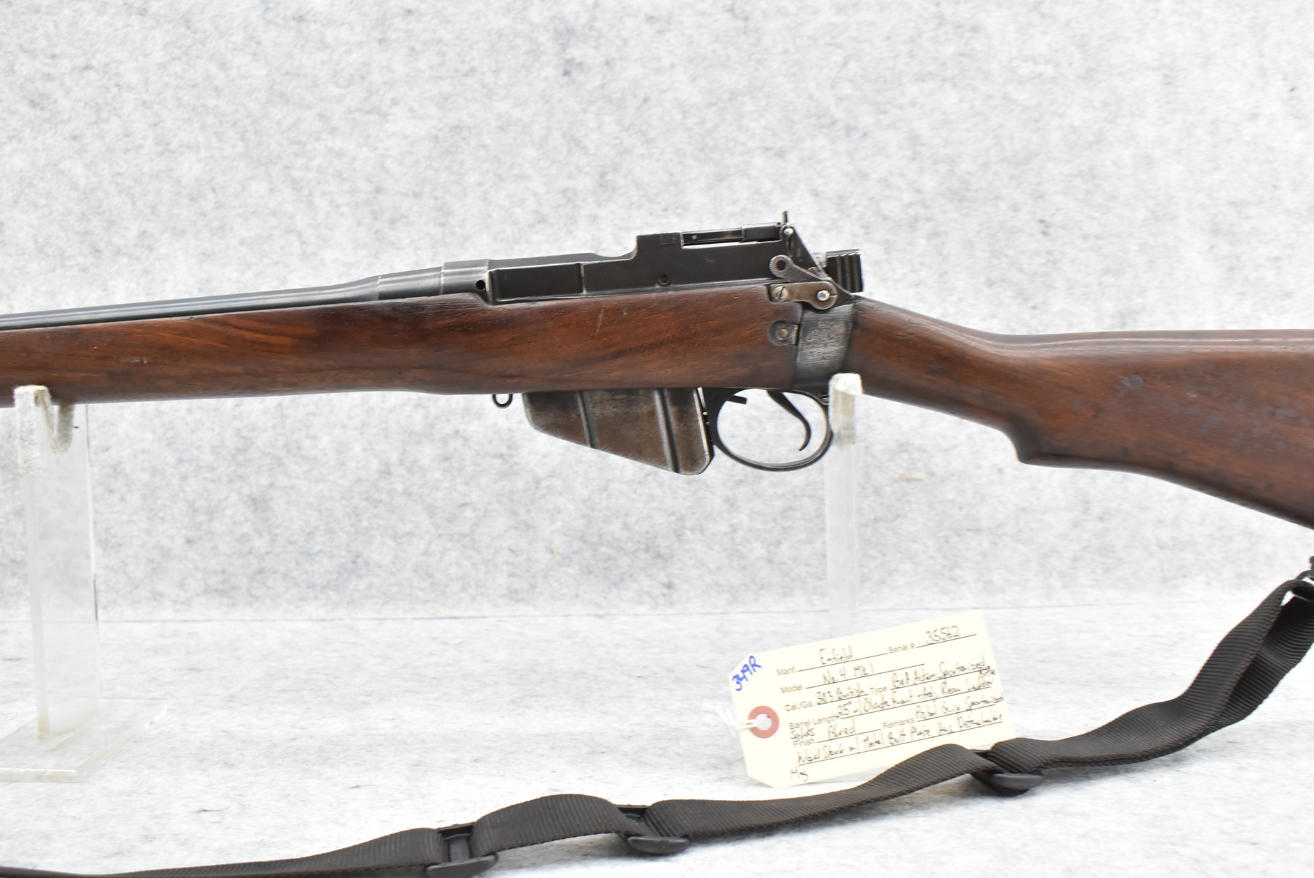 349R. Enfield – Mod. No. 4 MKI – 303 British Cal. Bolt Action Rifle – w/25” Barrel w/Blade Front & Adj. Rear Ladder Sights – Blued Finish – w/Pistol Grip Sporterized Wood Stock w/Metal Butt Plate – w/Detachable Mag