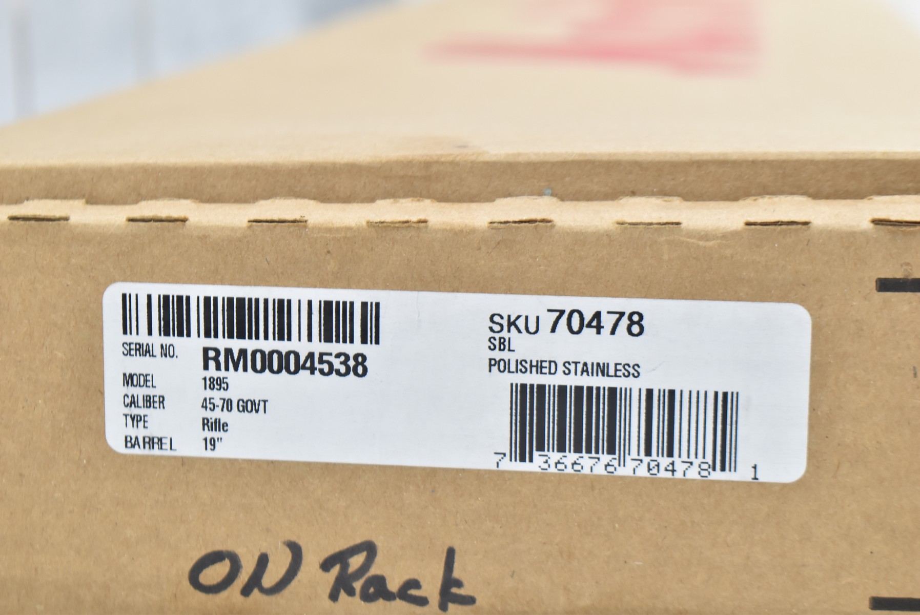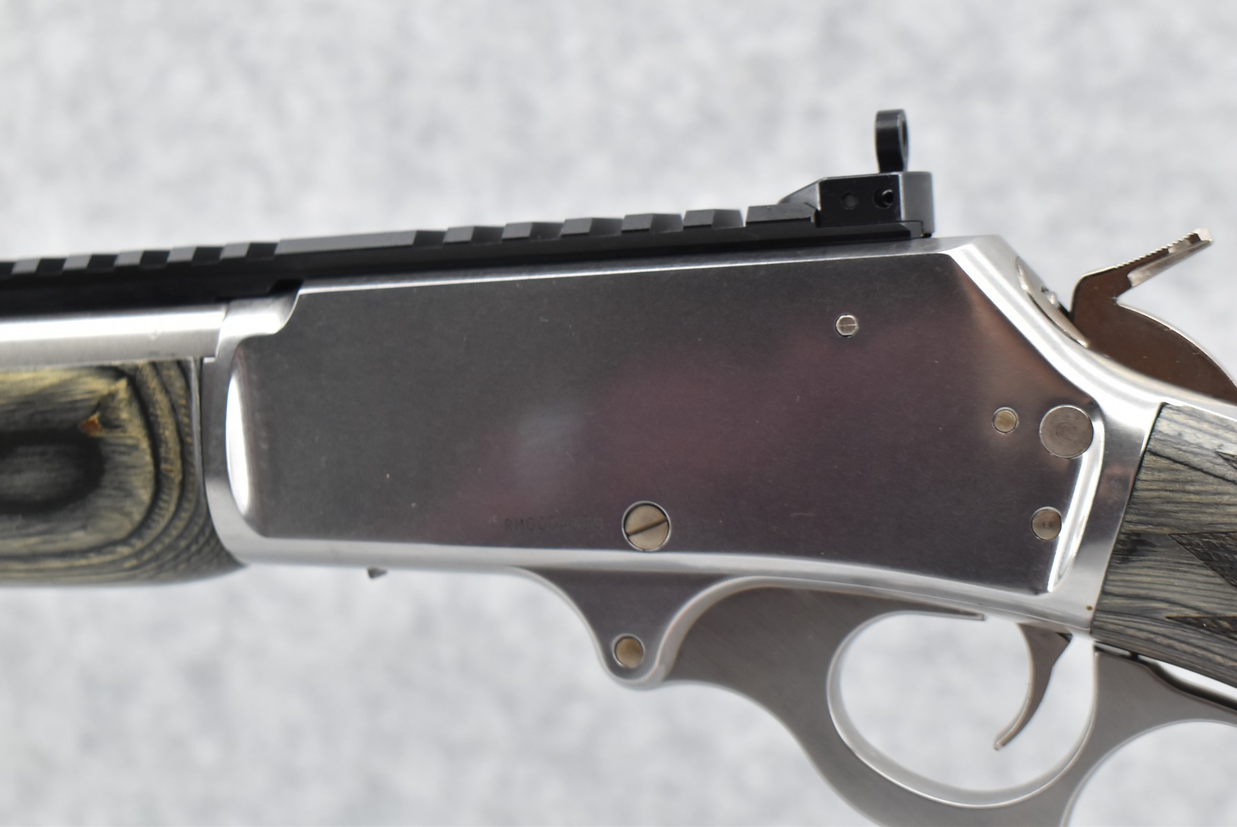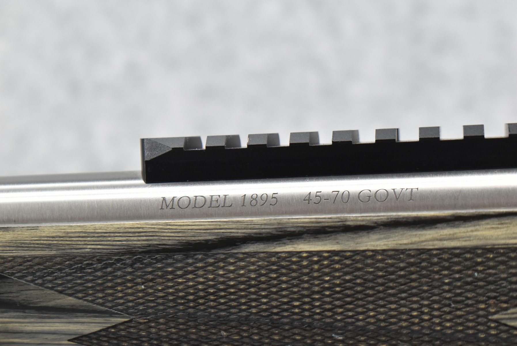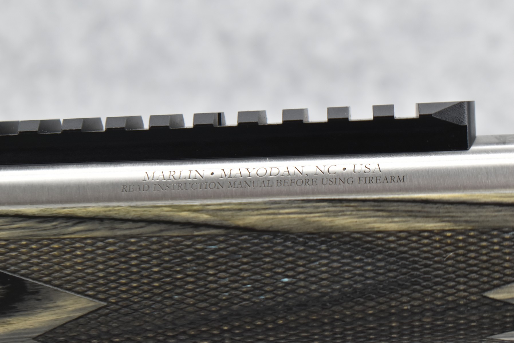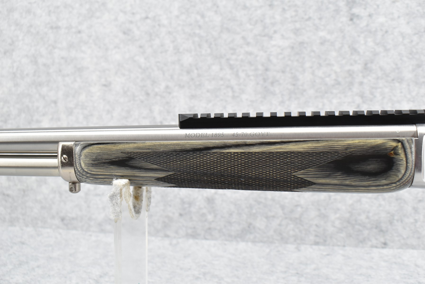 34R. Marlin – Mod. 1895 SBL – 45-70 Cal. Lever Action Rifle – w/19” Barrel w/Fiber Optic Front Blade & Rear Adj. Ghost Sights – Stainless Finish – w/Factory Checkered Pistol Grip Gray Laminated Wood Stocks w/Factory Recoil Pad – w/Picatinny Rail Mount – Unfired w/Factory Box, Manual & Ext. Hammer Spur