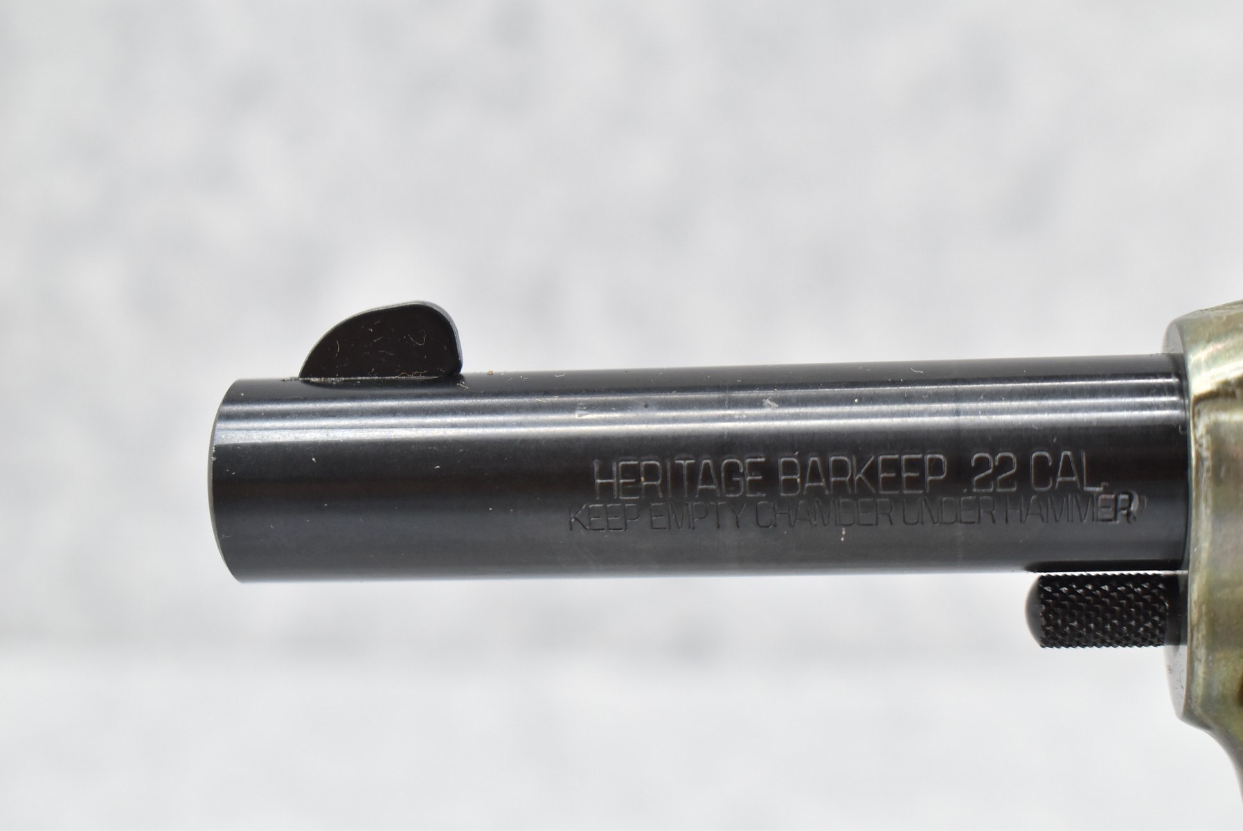 352R. Heritage – Mod. Bar Keep – 22 Cal. Single Action Revolver – w/3½” Barrel w/Front Blade and Rear Notch Sights – Blued Finish – w/Factory Scaled Wood Grips – New and Unfired w/Factory Box