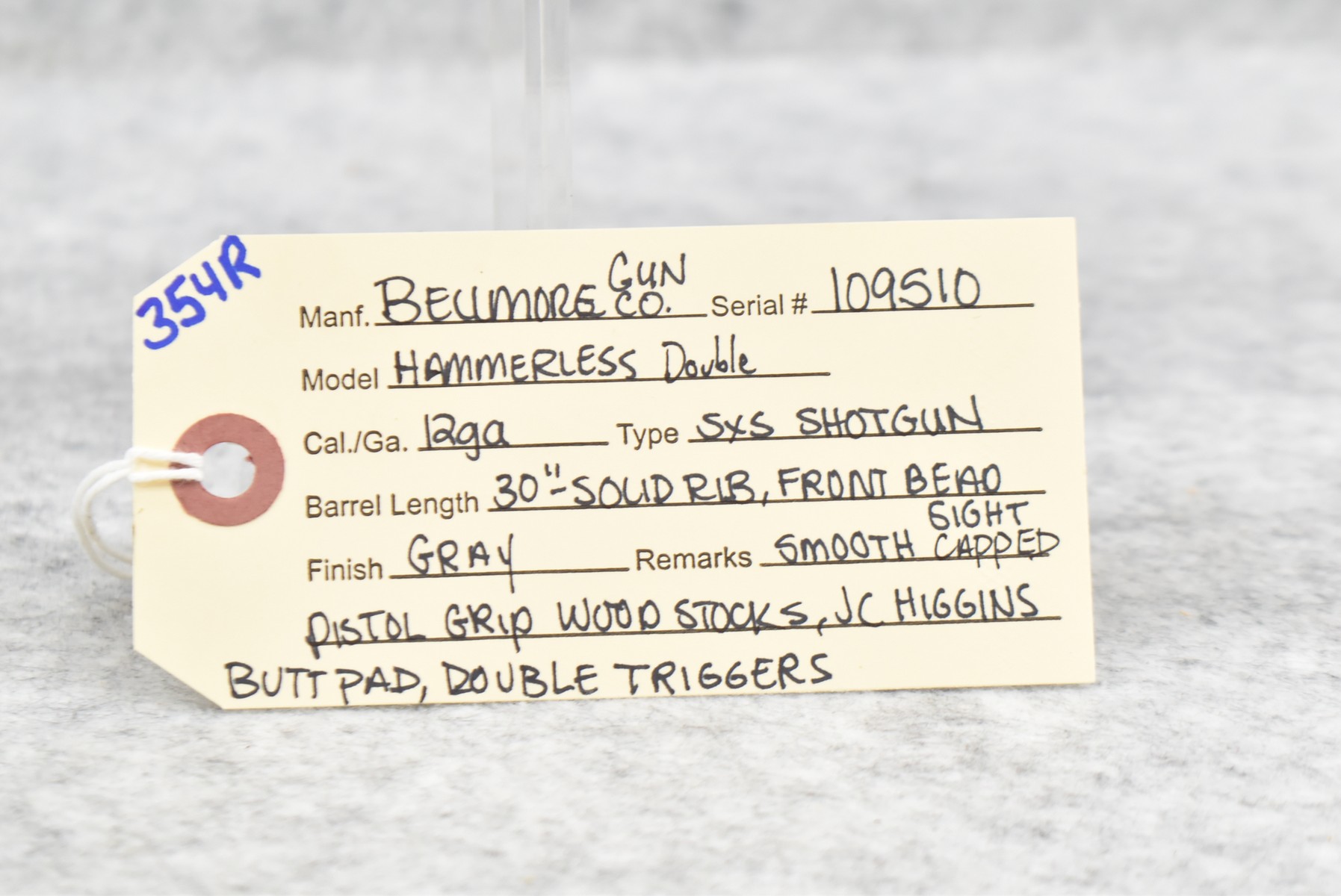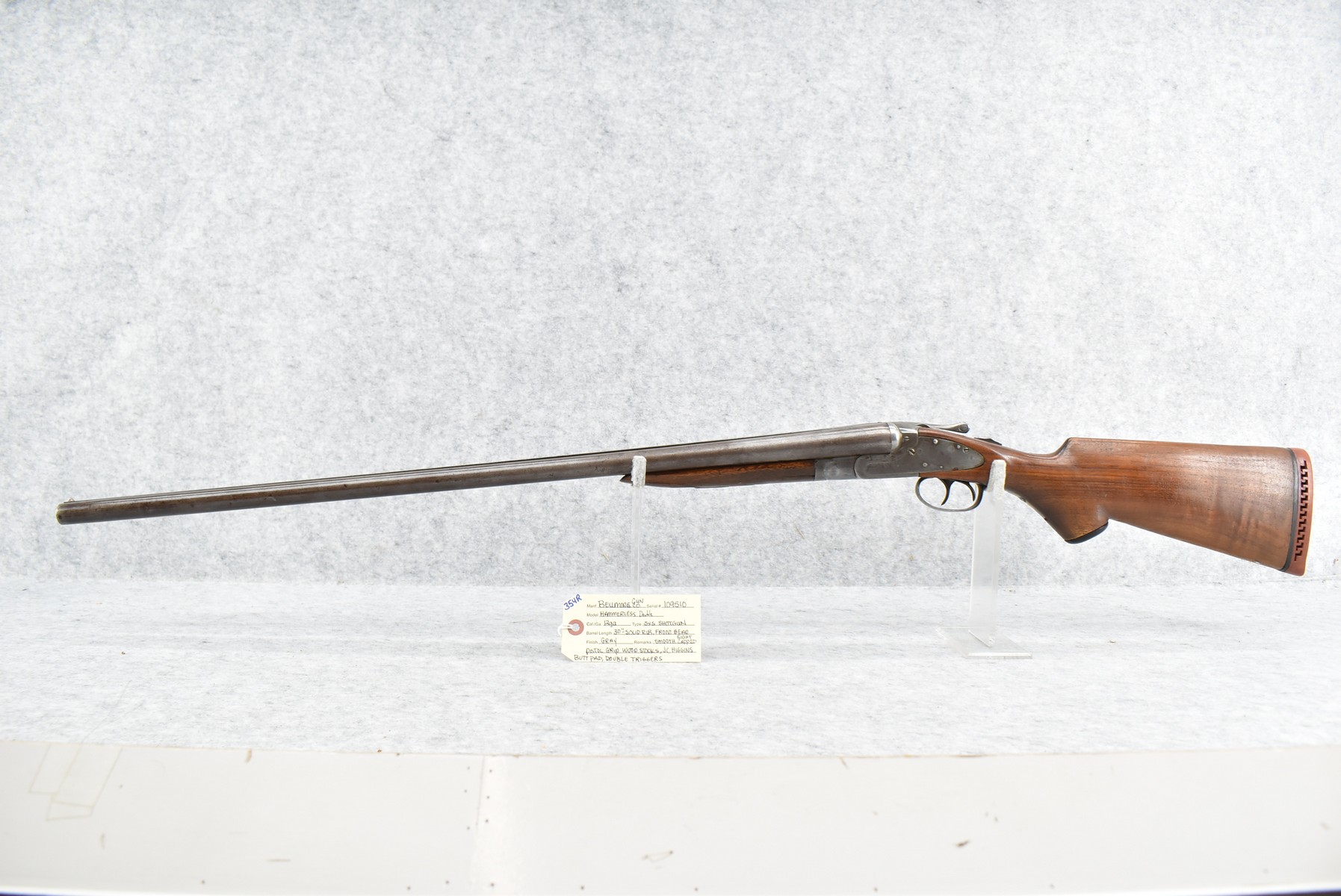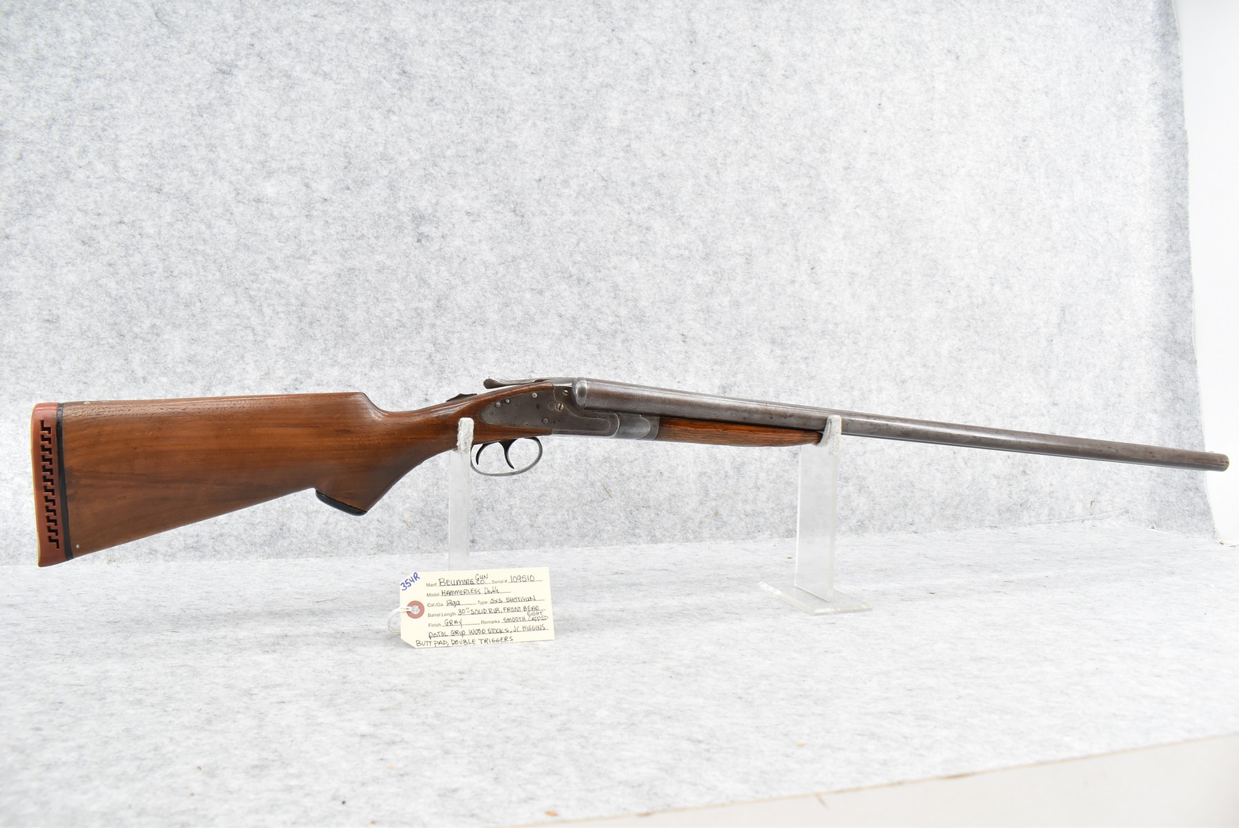 354R. Bellmore Gun Co. – Mod. Hammerless Double – 12ga. Double Barrel Shotgun – w/30” Solid Rib Barrel w/Front Bead Sight – Gray Finish – w/Smooth Capped Pistol Grip Wood Stocks w/J.C. Higgins Butt Pad – w/Double Triggerw