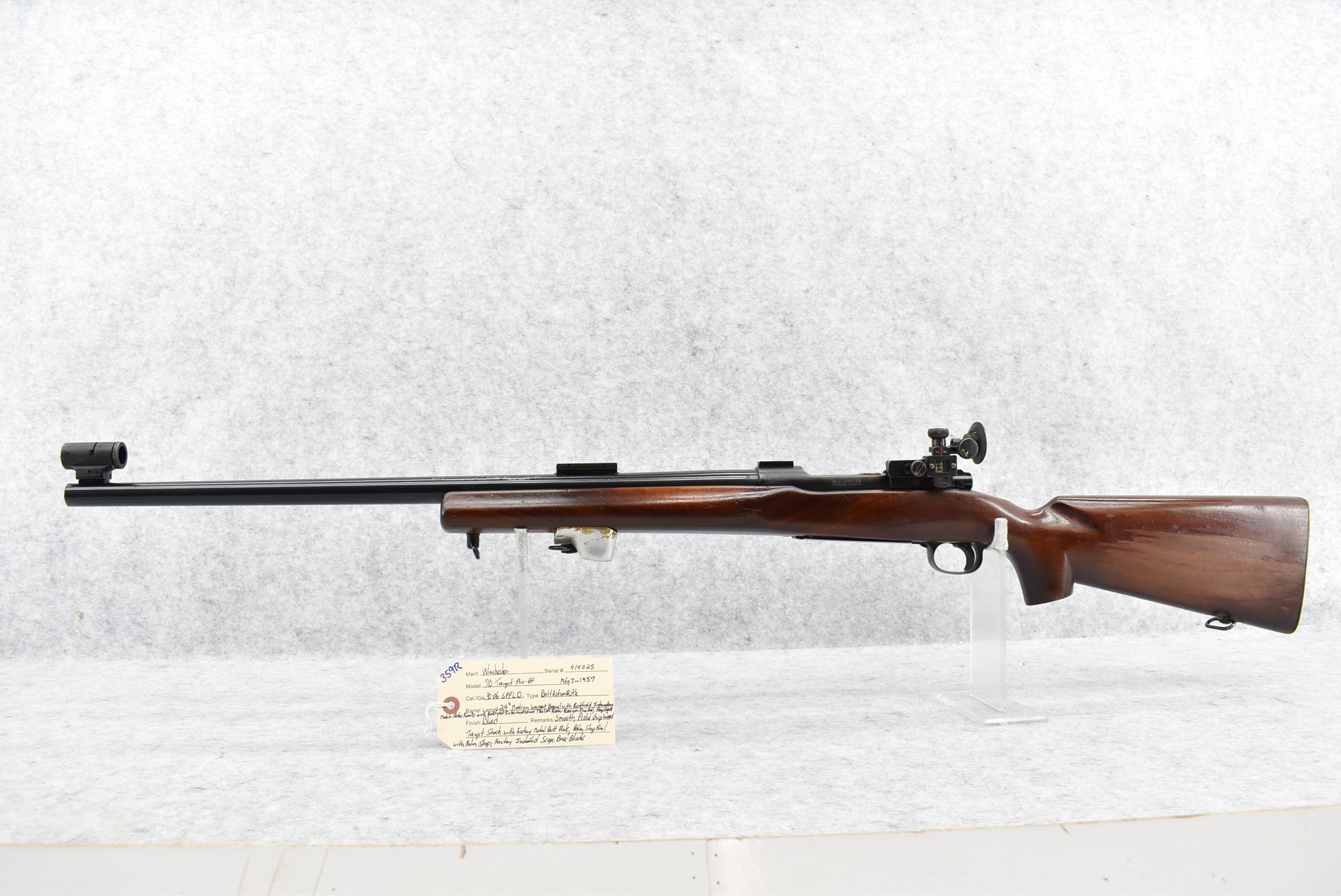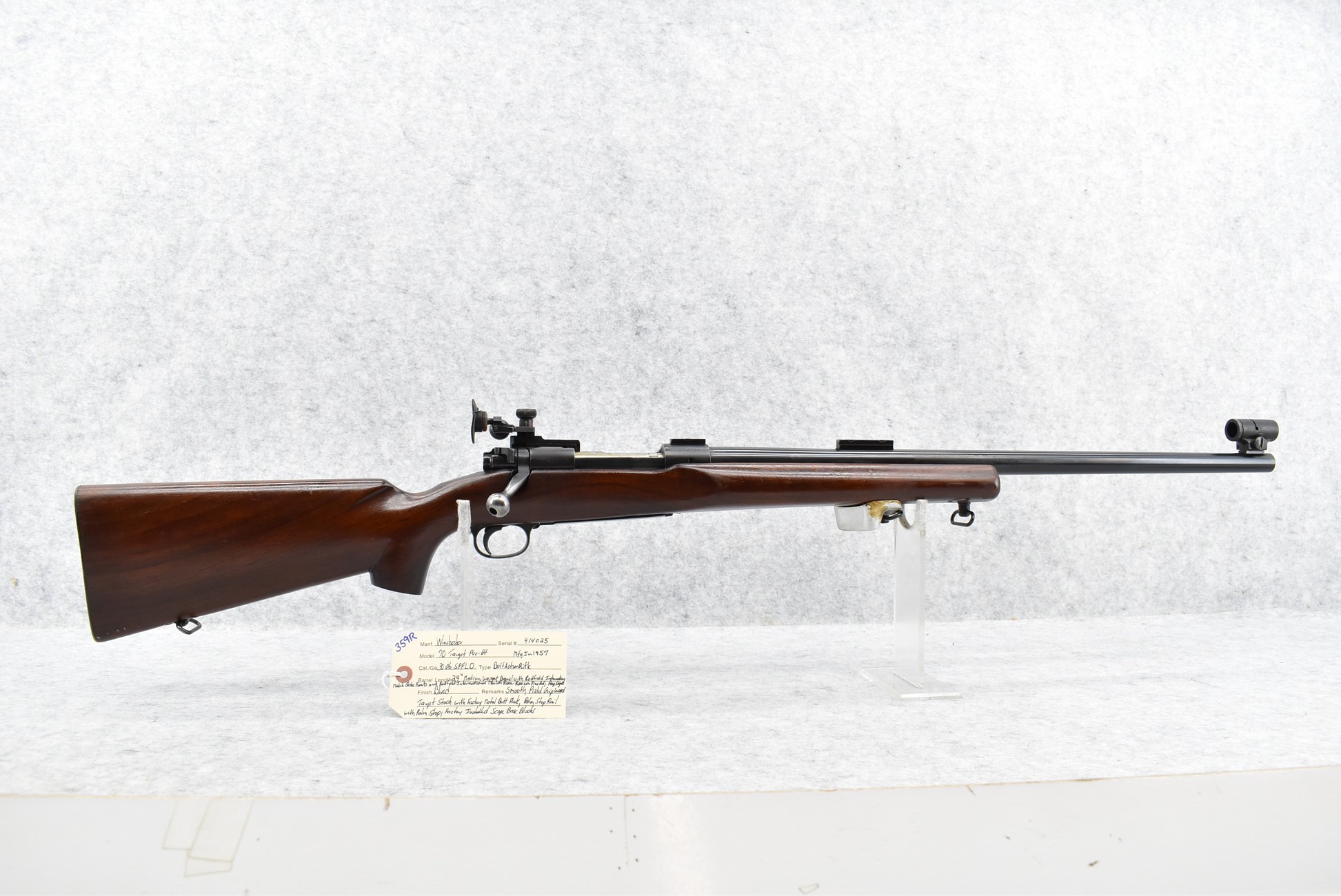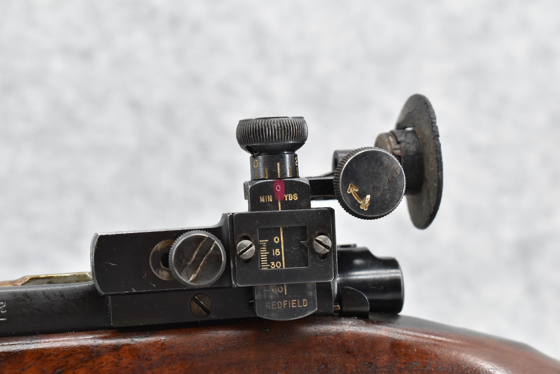 359R. Winchester – Mod. 70 Target (Pre-64) – 30-06 Cal. Bolt Action Rifle – w/24” Medium Weight Barrel w/Redfield International Match Globe Front & Redfield International Match Rear Receiver Fine Adj. Peep Sights – Blued Finish – w/Smooth Pistol Grip Wood Target Stock w/Factory Metal Butt Plate & Palm Stop Rail w/Palm Stop – w/Factory Installed Scope Base Blocks – Mfg. in 1957