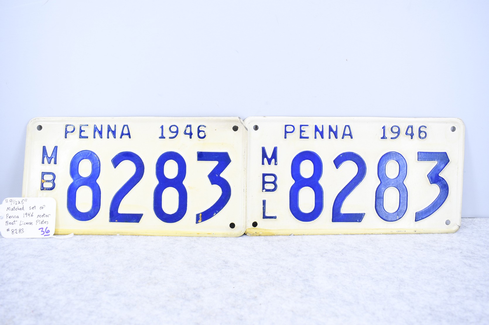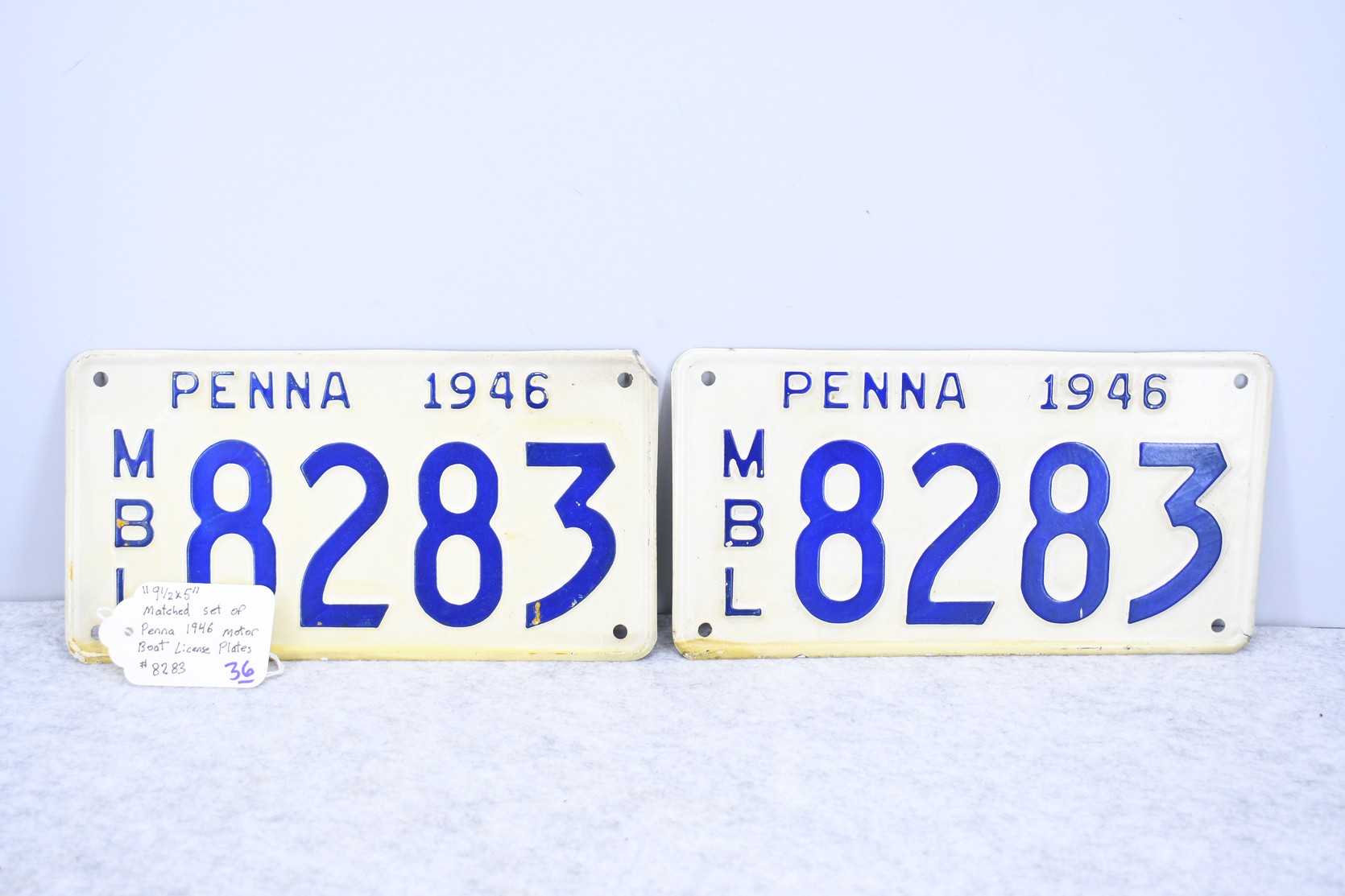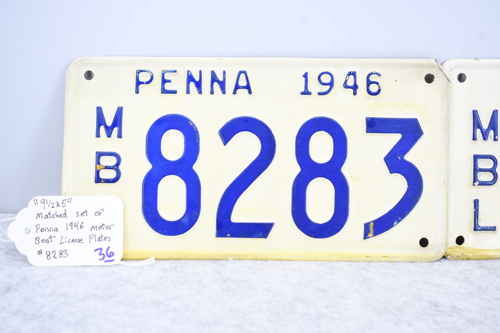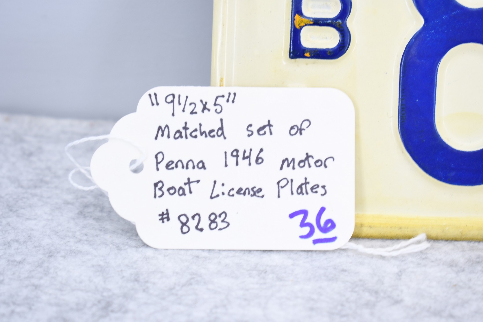 36. Matched Set of Pennsylvania 1946 Motorboat License Plates – Plate No. 8283 – Both Plates are in Very Good Condition