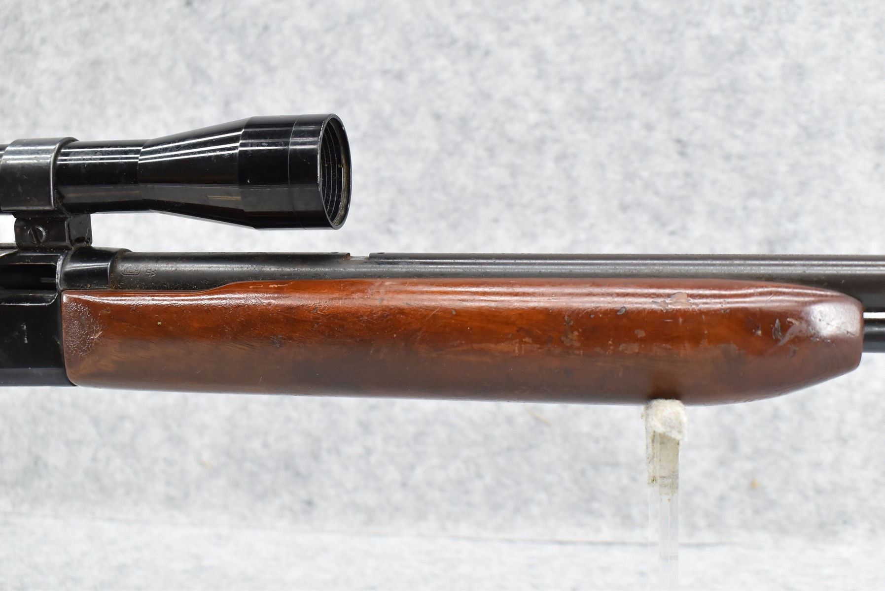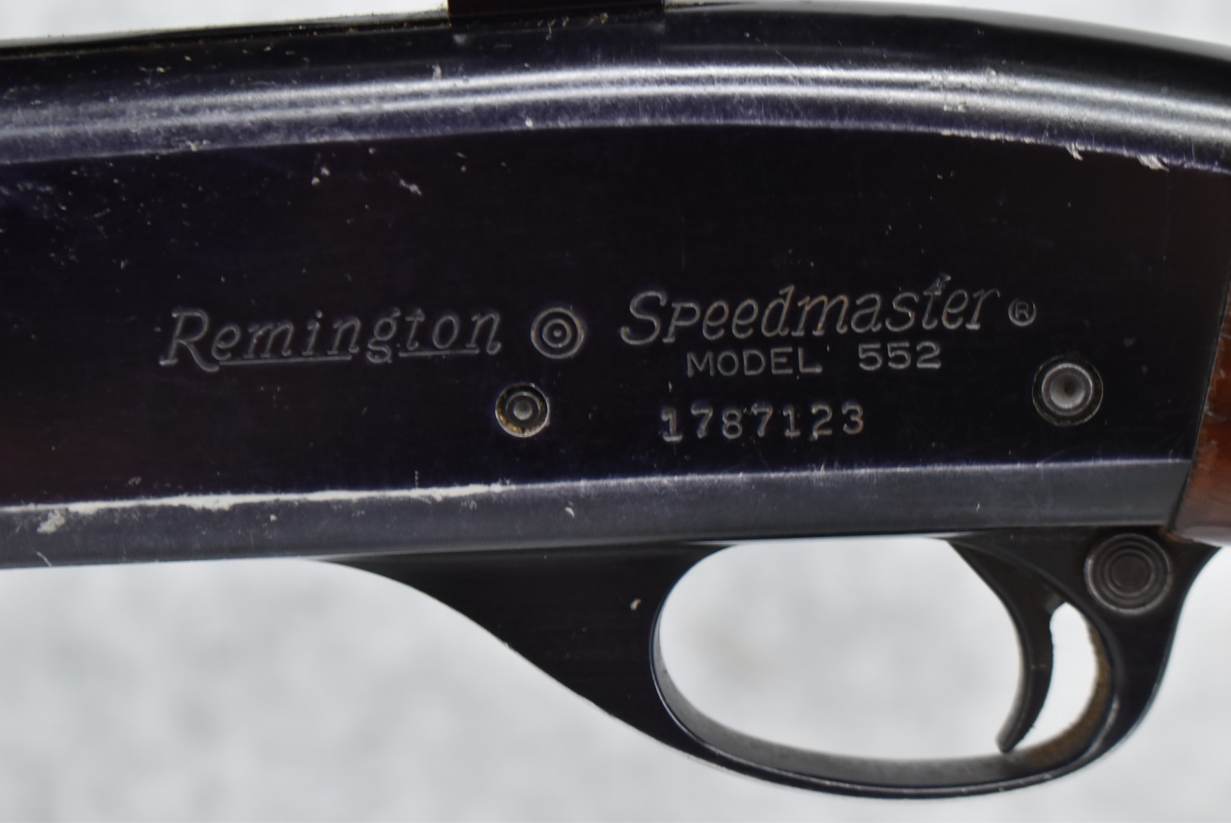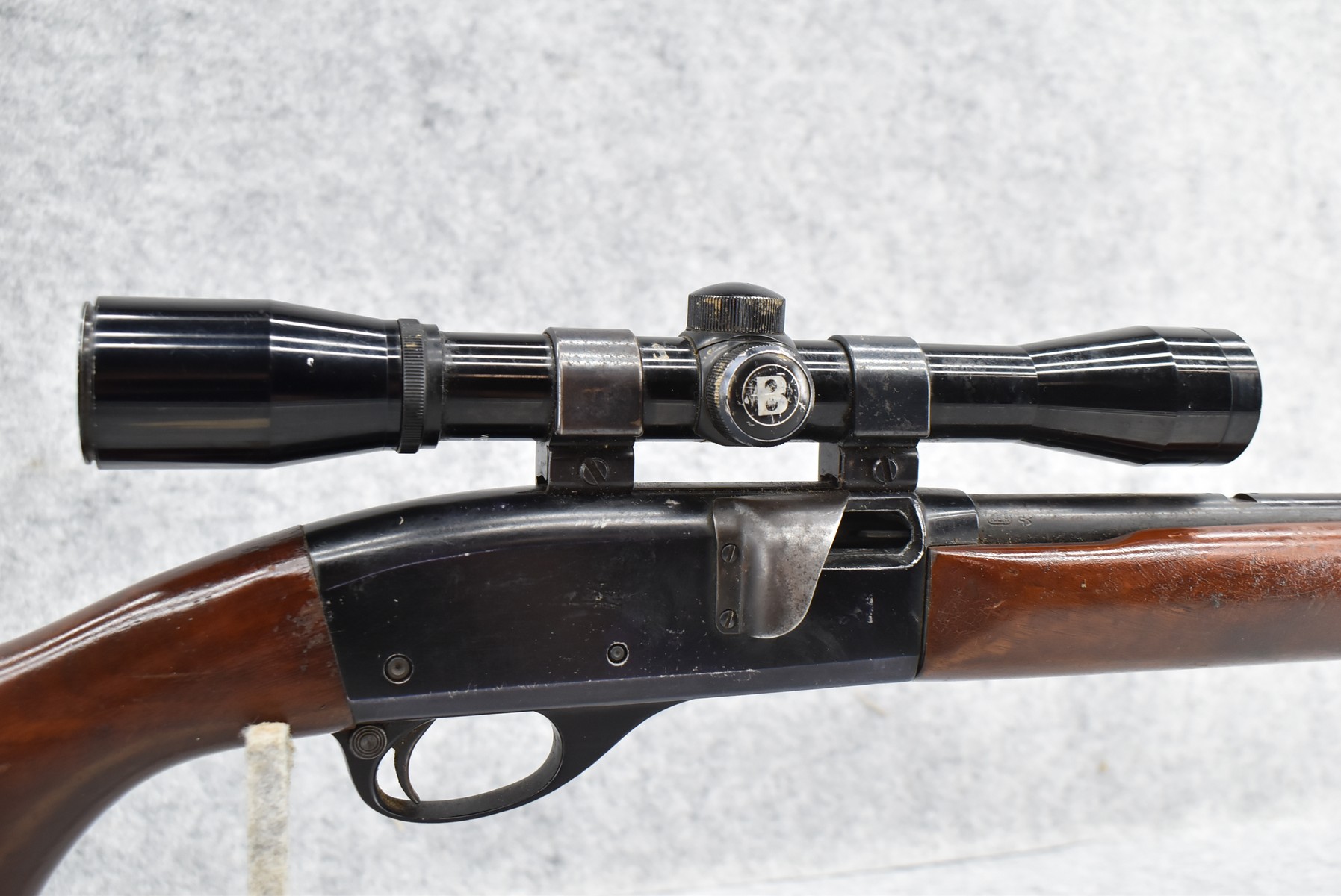 361R. Remington – Mod. 552 Speedmaster – 22 Cal. Semi-Auto Rifle – w/21” Barrel w/Blade Front Sight & Full Length Tubular Magazine – Blued Finish – w/Smooth Pistol Grip Wood Stocks w/Factory Butt Plate – w/Bushnell 4x32mm Sharp Shooter Scope & Weaver Rings