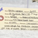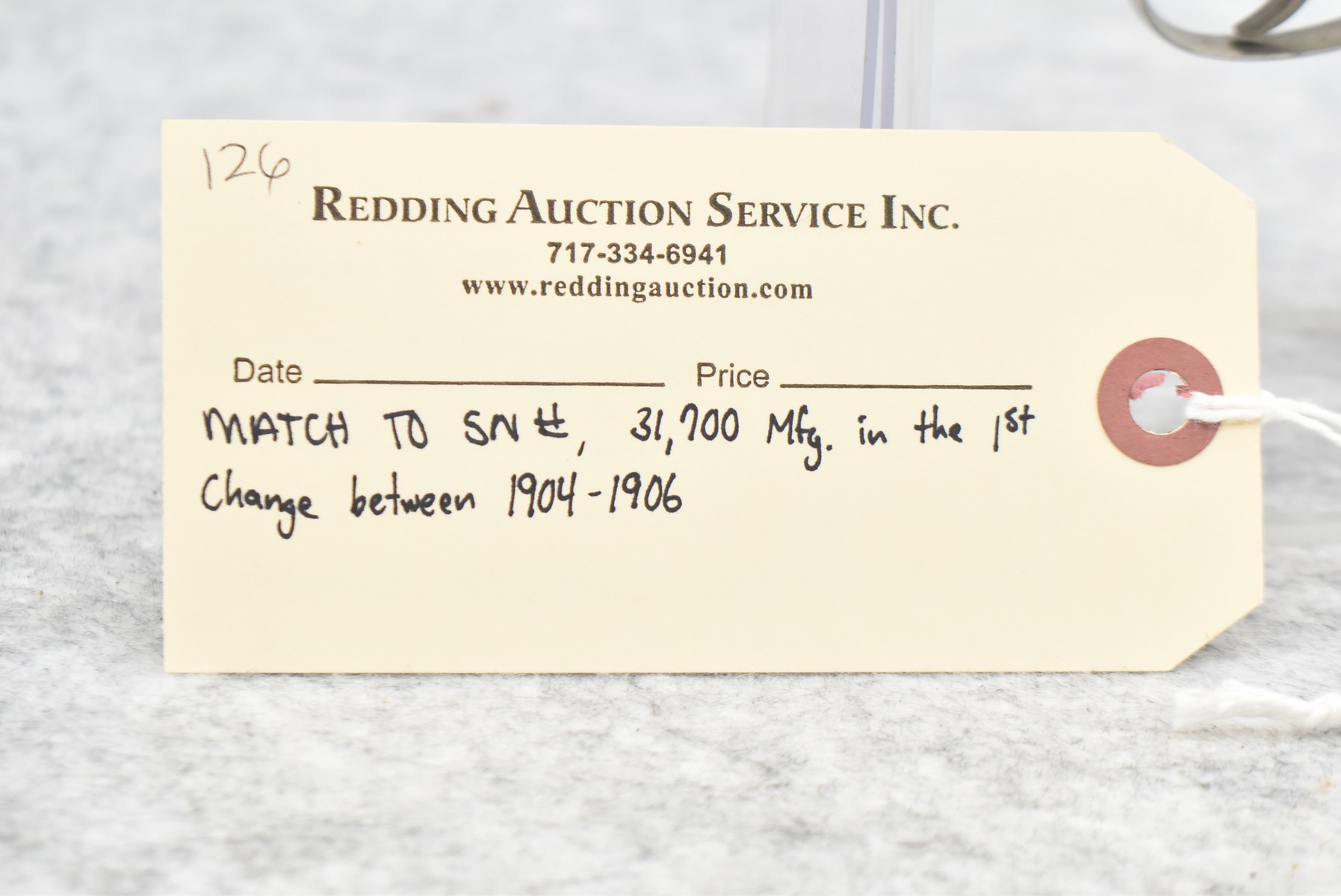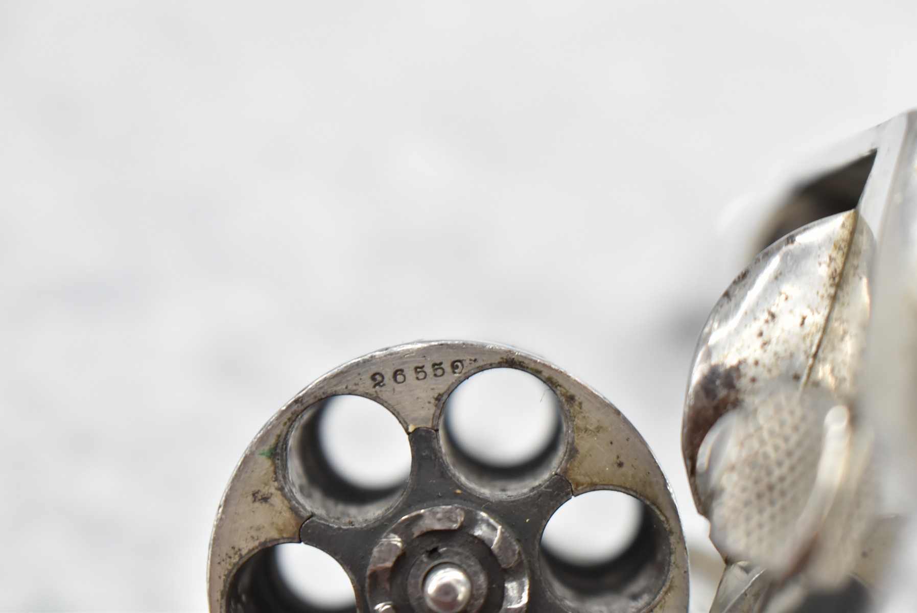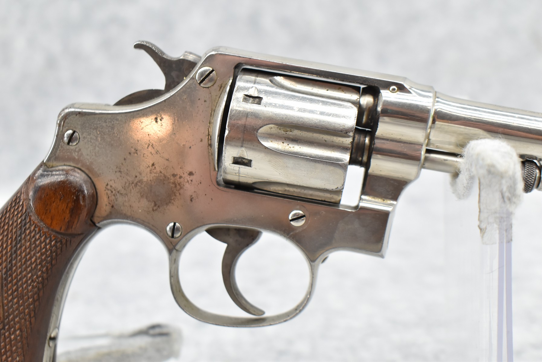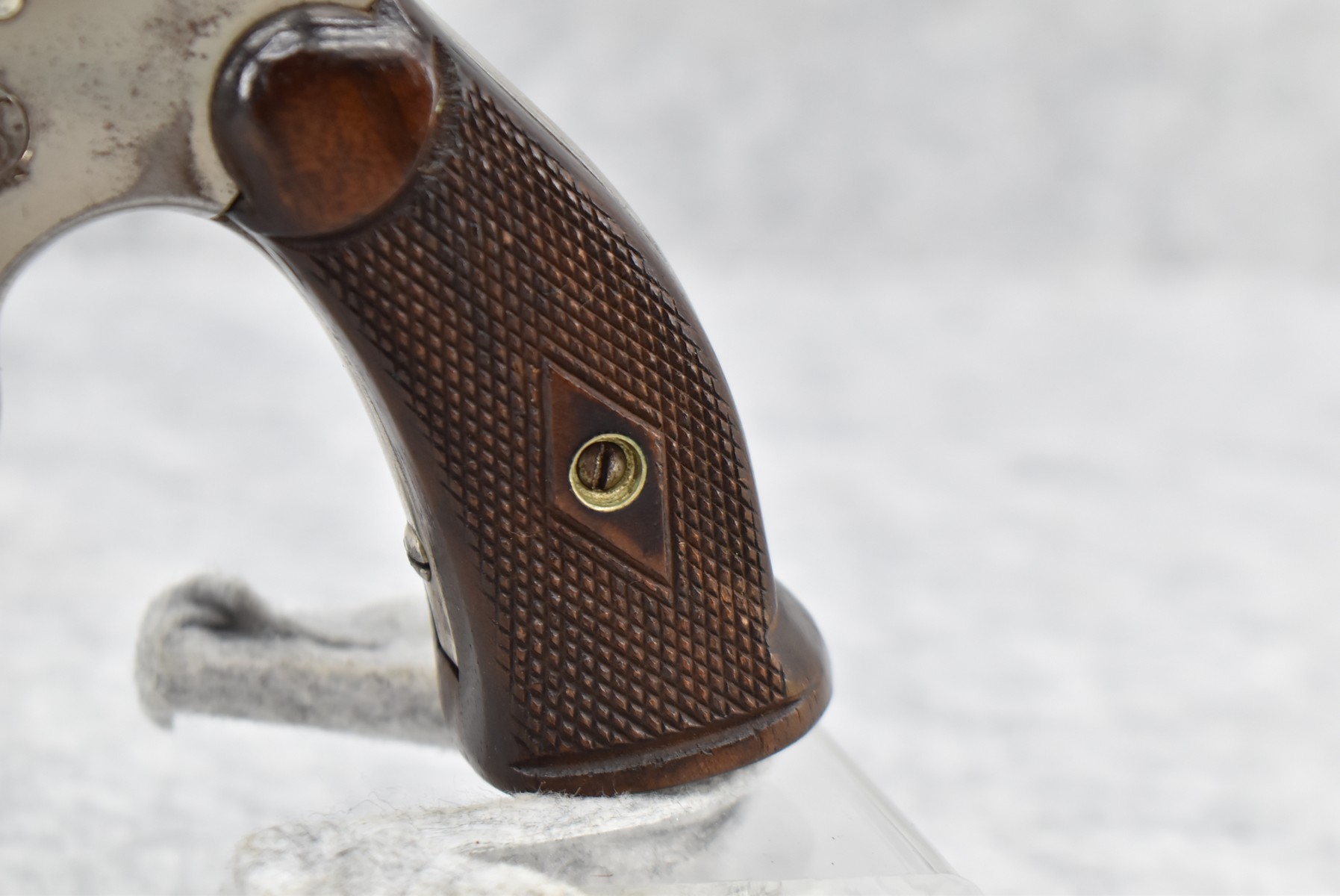 361R. Smith & Wesson – Mod. 32 Hand Ejector Model of 1903 1st Change – 32 S&W Long Cal. Double Action Revolver – w/4 ¼” Barrel w/Front Blade Sight – Nickel Finish – w/Checkered Diamond Wood Grips – Barrel & Cylinder Match to Serial Number – 31,700 Mfg. in the 1st Change Between 1904-1906