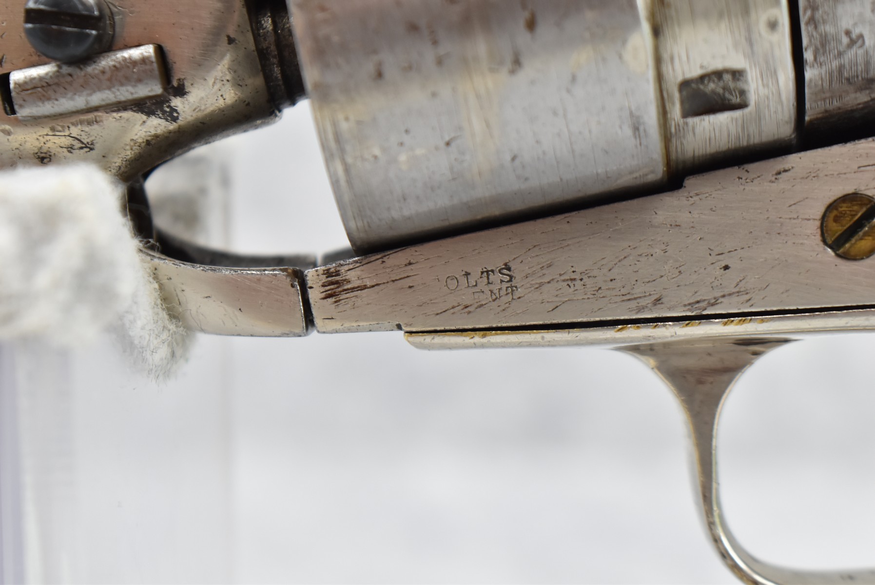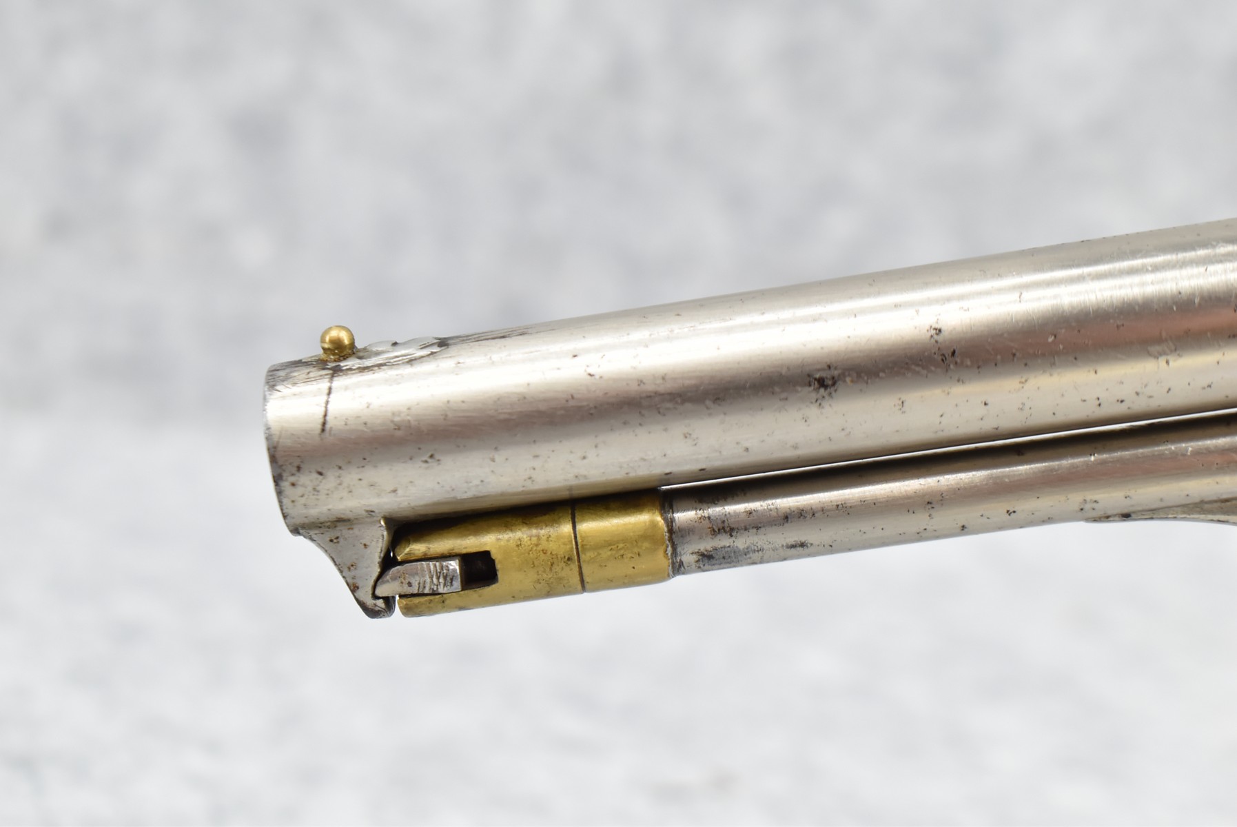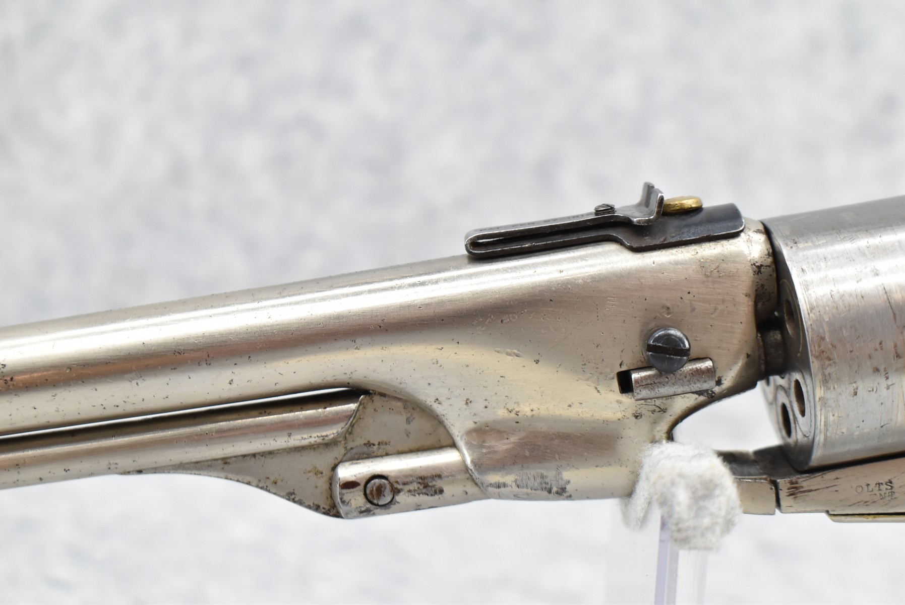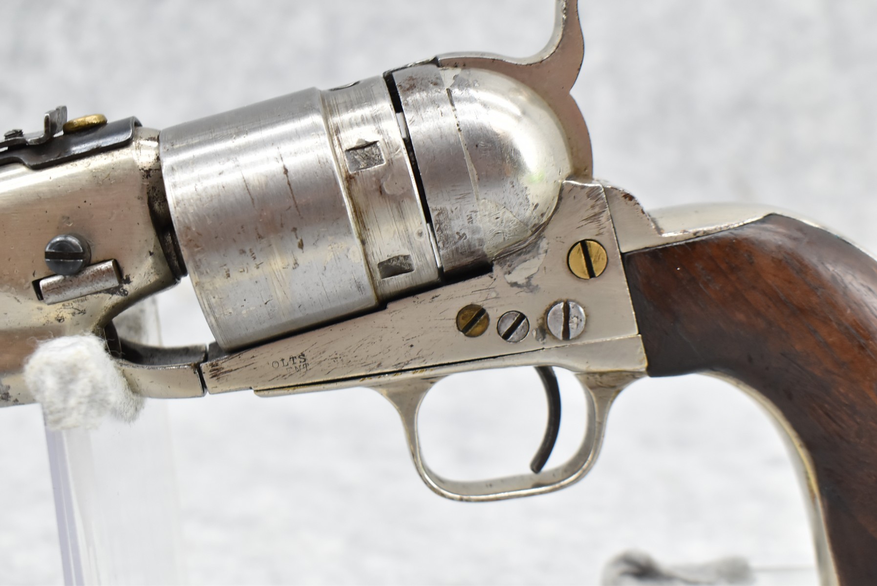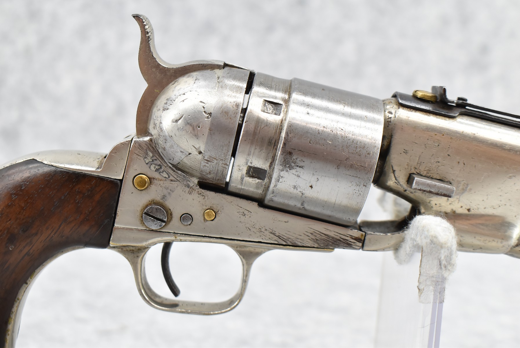 362R. Colt – Mod. 1860 Army – Converted to 22LR Cal. Single Action Revolver – w/7 ¼” Sleeved Barrel w/Sights – Polished Gray/Nickel Finish – w/Smooth Wood Grips – Cylinder & Barrel Have Both Been Sleeved to Shoot 22LR Ammo