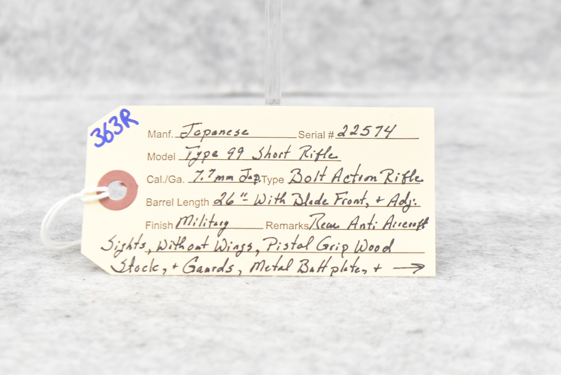 363R.     Japanese – Type 99 Short Rifle – 7.7mm Jap Cal. Bolt Action Rifle – w/26” Barrel w/Blade Front & Adj. Rear Anti-Aircraft Sights without Wings – Military Finish – w/Pistol Grip