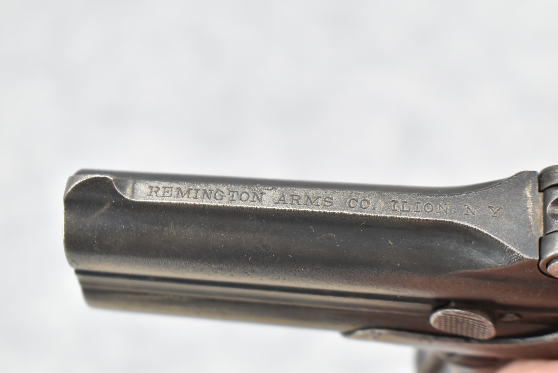 364. Remington Arms Co. – Mod. 95 Derringer Type II – 41 Rim Cal. 2-Shot Over-Under Pistol – w/3” Barrels w/Factory Sights – Dark Gray Finish – w/Black Hard Rubber Checkered Birds Head Grips