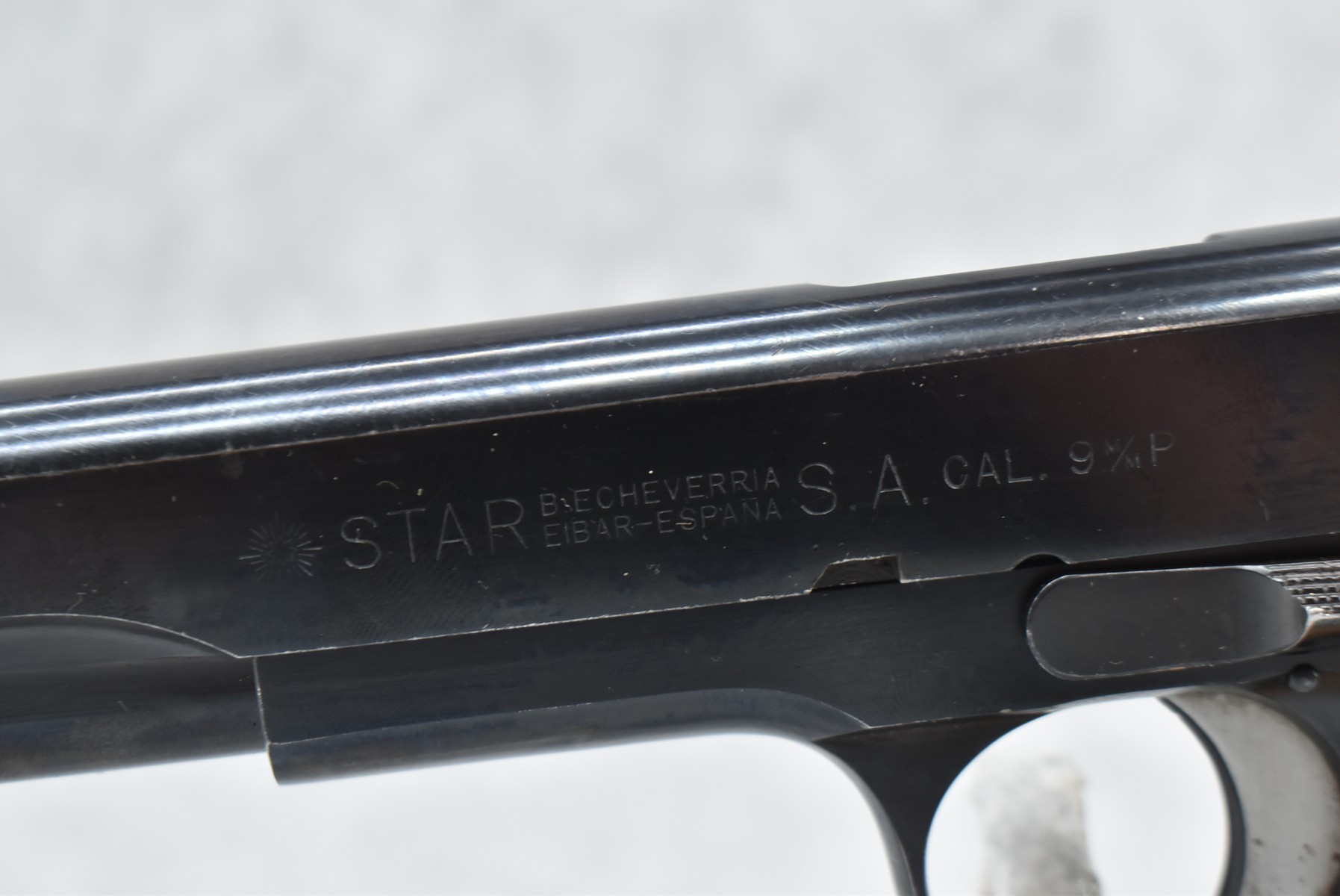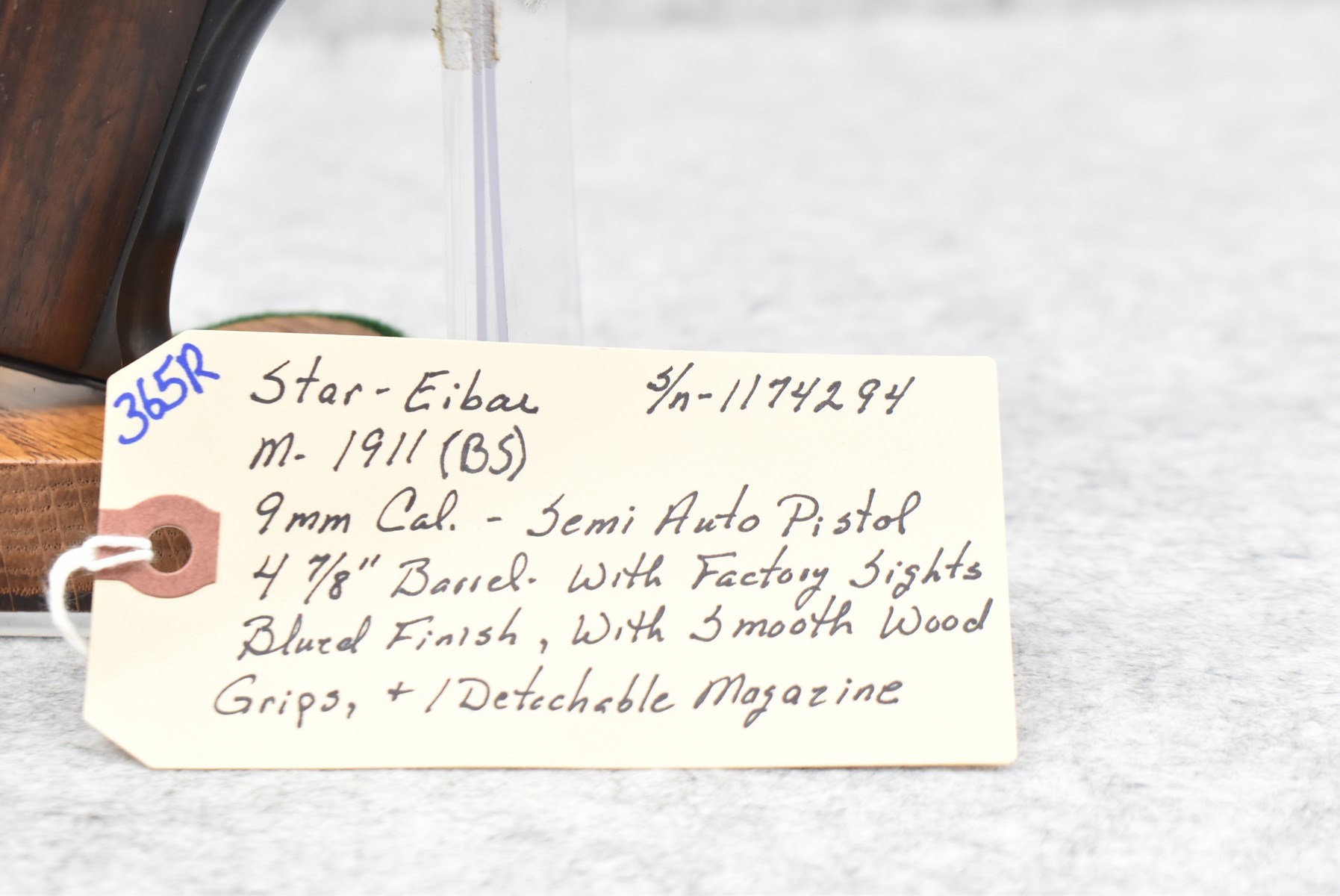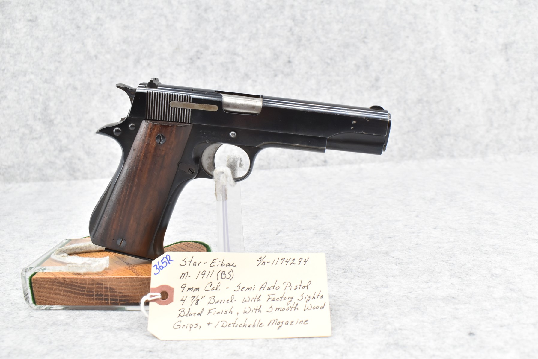 365R. Star-Eibar – Mod. 1911 (BS) – 9mm Cal. Semi-Auto Pistol – w/4 7/8” Barrel w/Factory Sights – Blued Finish – w/Smooth Wood Grips – w/1 Detachable Magazine