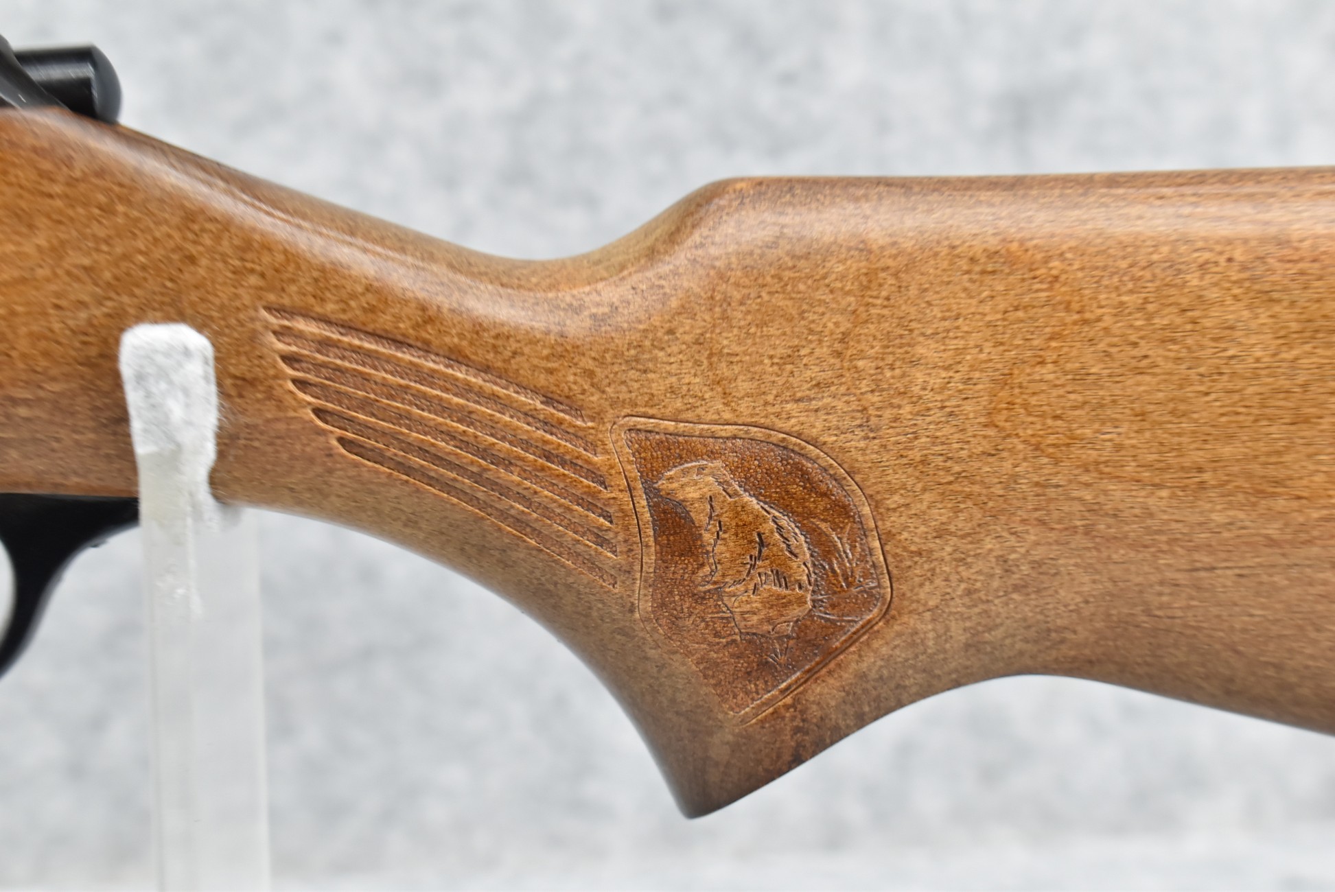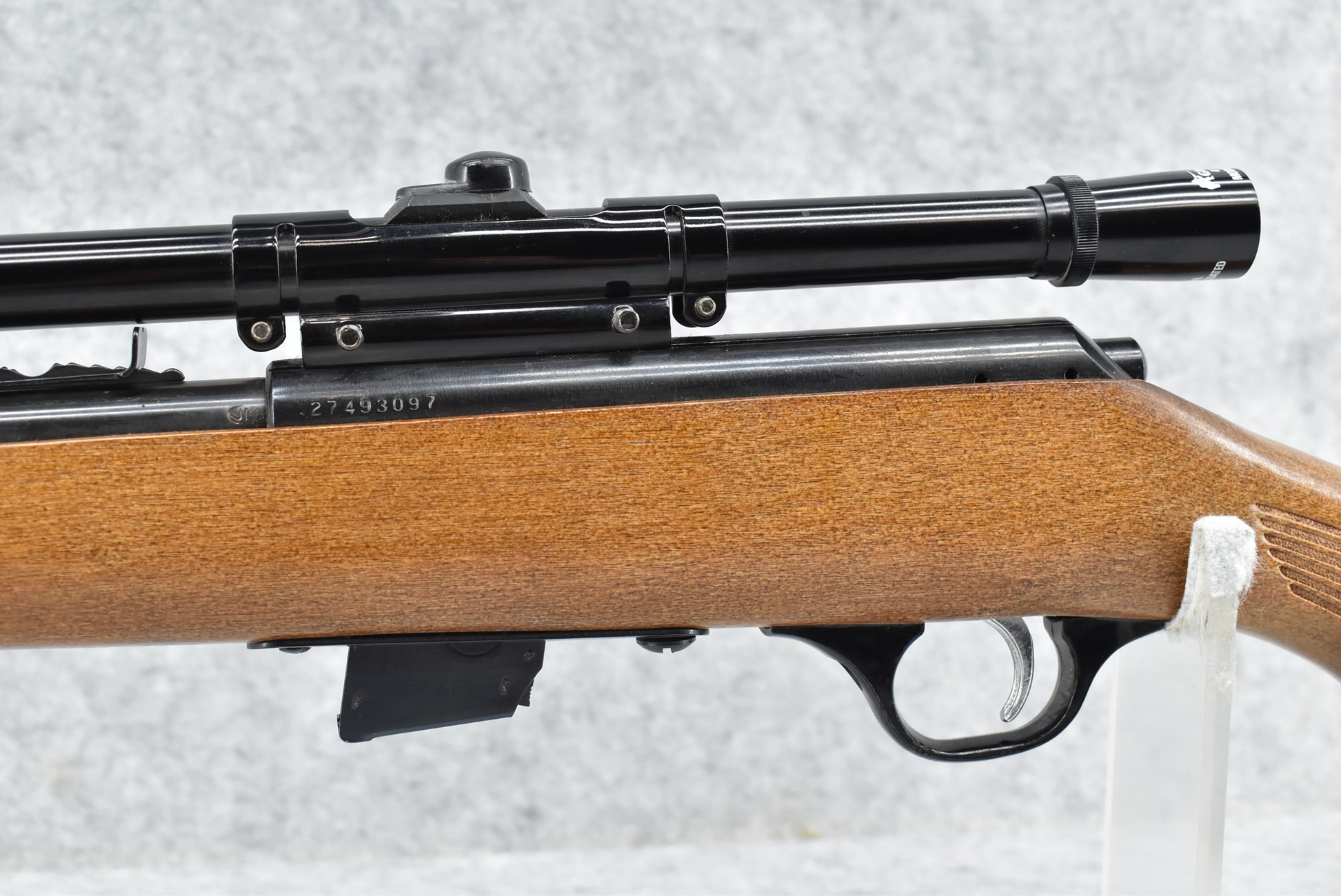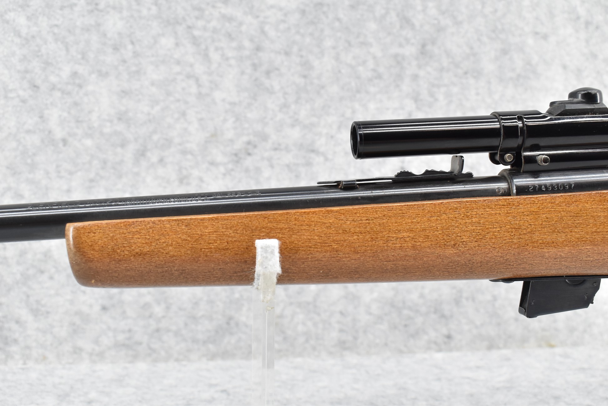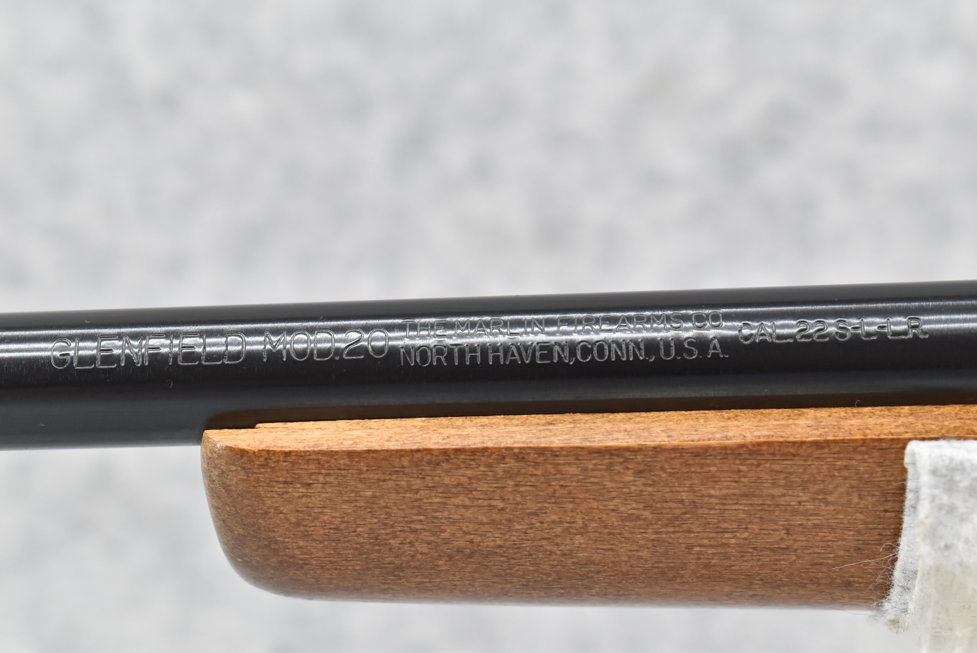 367R. Marlin – Mod. Glenfield Model 20 – 22 Cal. Bolt Action Rifle – w/22” Barrel w/Blade Front & Adj. Rear Sights – Blued Finish – w/Squirrel Carved Pistol Grip Wood Stock w/Factory Butt Plate – w/Factory Detachable Mag – w/Glenfield 200B 4×15 Scope