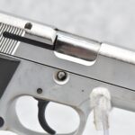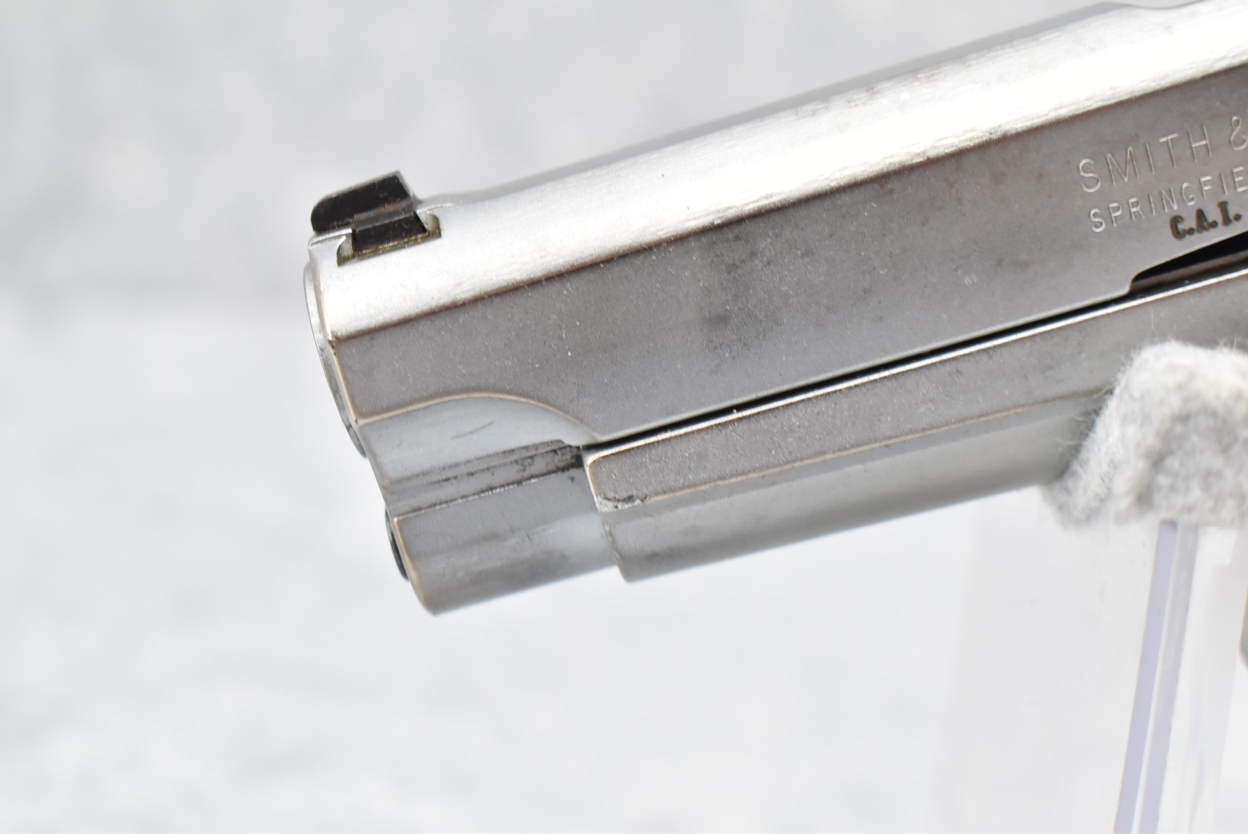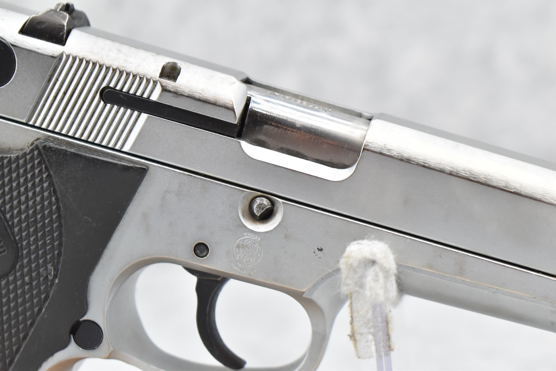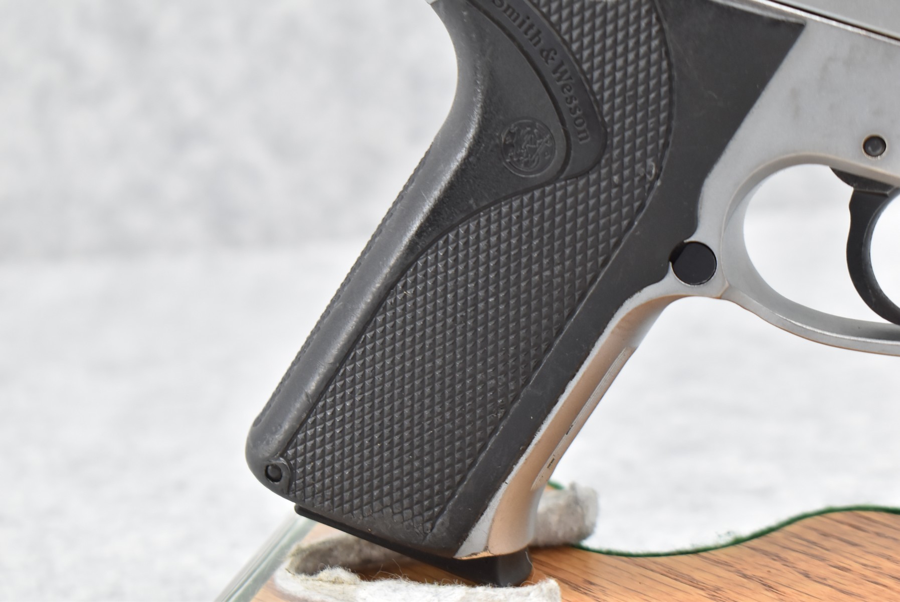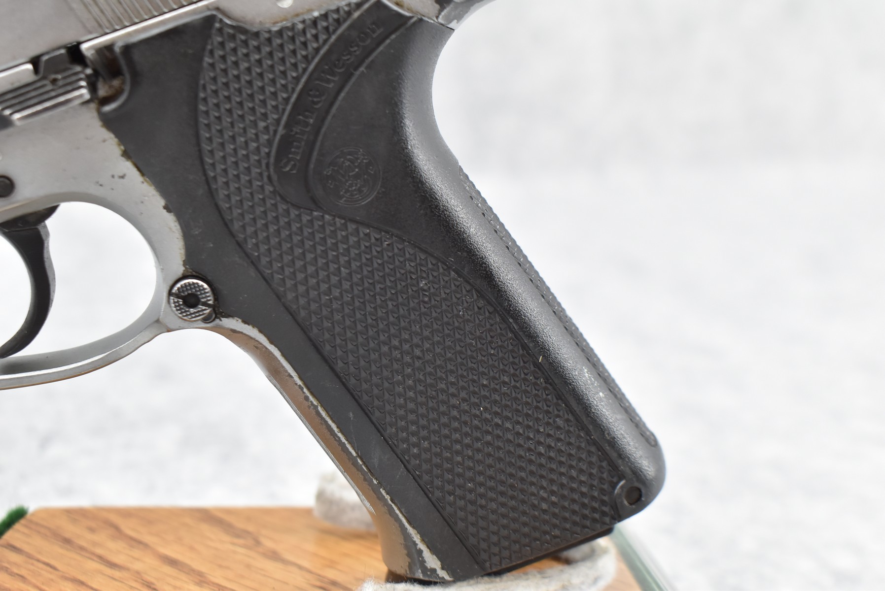 368R. Smith & Wesson – Mod. 915 – 9mm Para Cal. Semi-Auto Pistol – w/4” Barrel w/Blade Front and Adjustable Rear Notch Sights – Stainless Finish – w/S&W Wrap-a-Round Checkered Black Plastic Grips – w/1 Mrc-Gar Detachable Magazine – Manufactured Between 1992-1994 Only