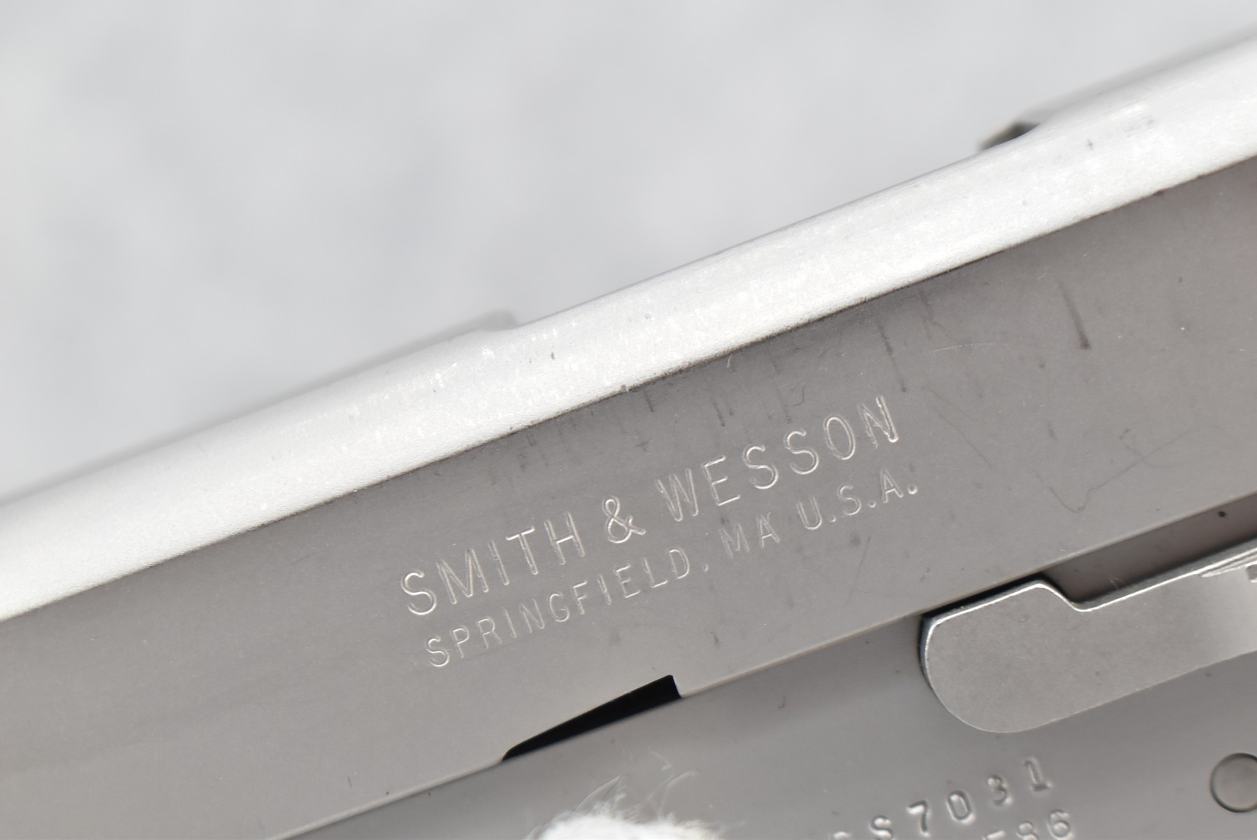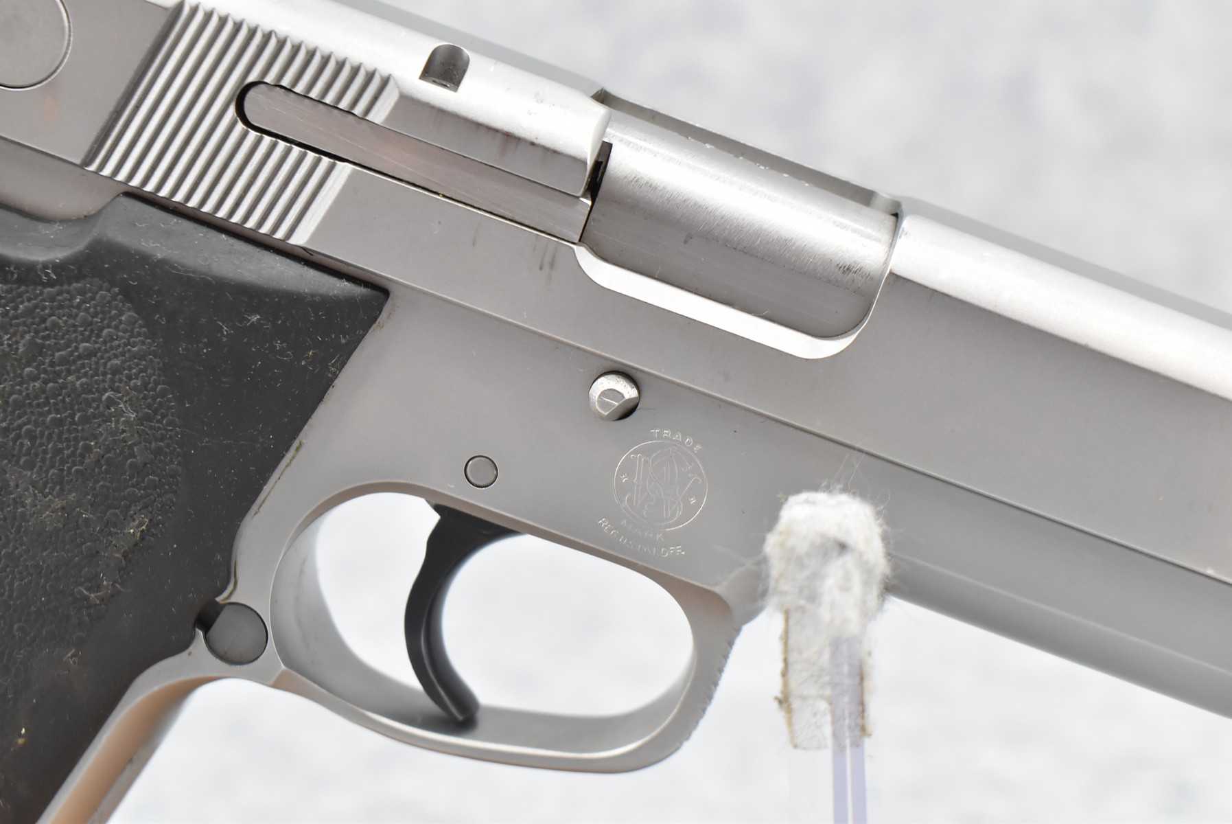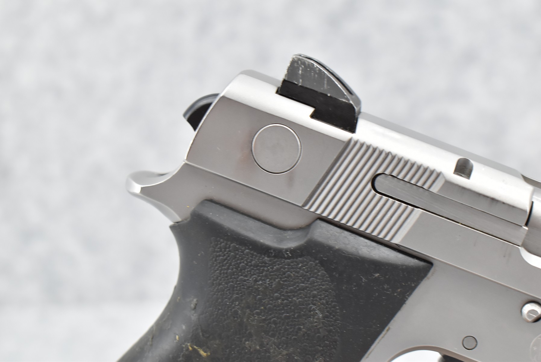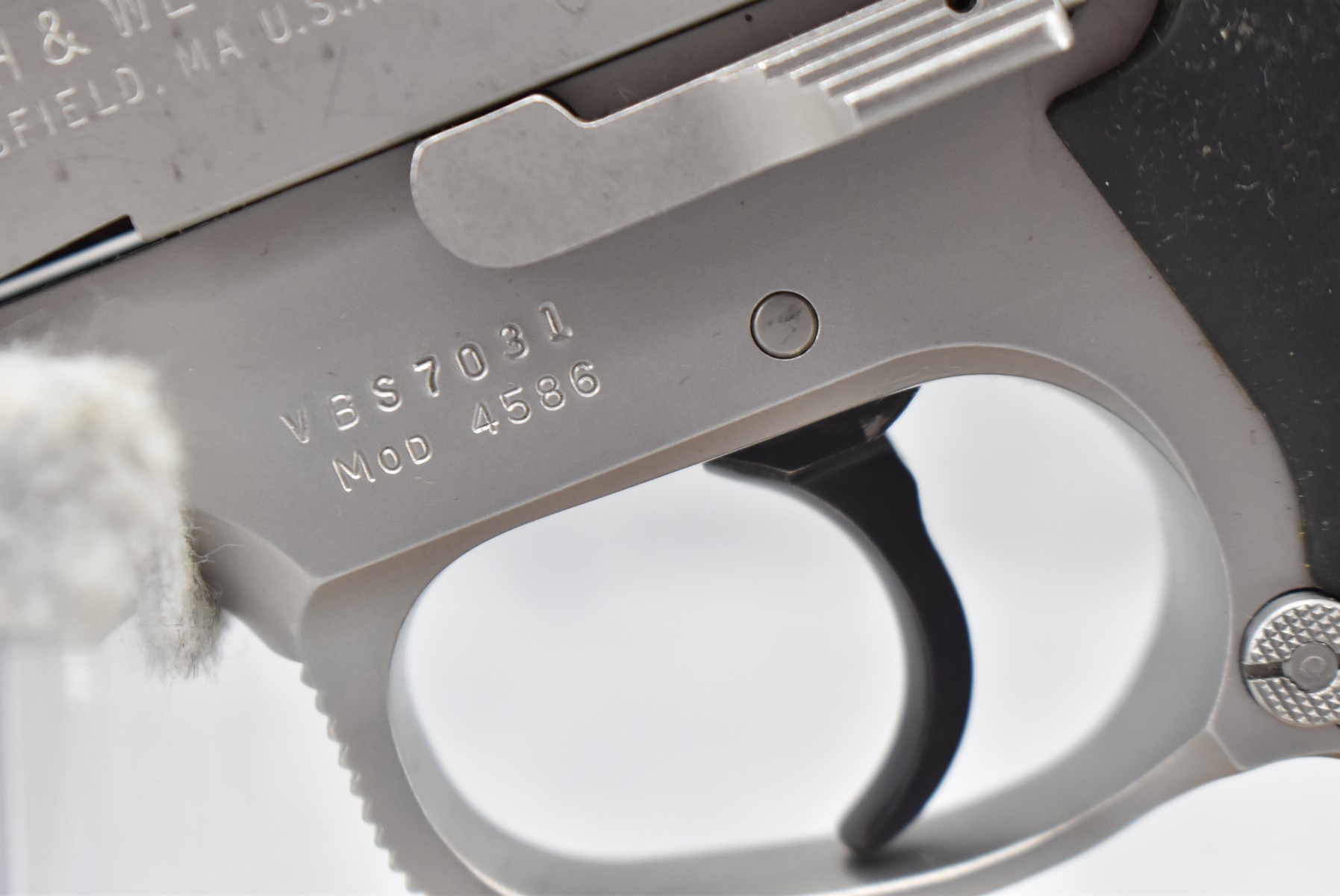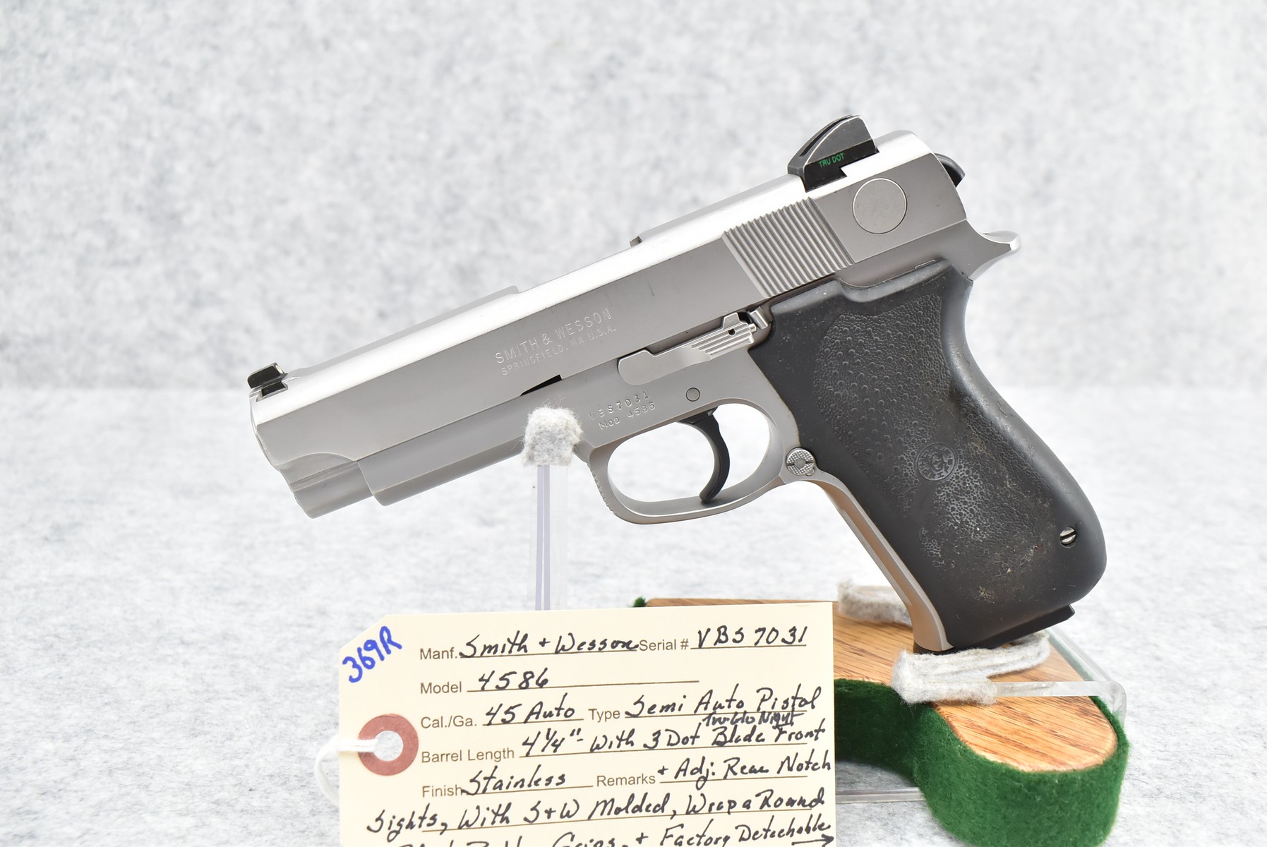 369R. Smith & Wesson – Mod. 4586 – 45 Auto Cal. Semi-Auto Pistol – w/4¼” Barrel w/3-Dot Tru-Glo Blade Front and Adjustable Rear Notch Night Sights – Stainless Finish – w/Smith & Wesson Molded Wrap-a-Round Black Rubber Grips – w/Factory Detachable Magazine – Produced Between 1991-1999 Only