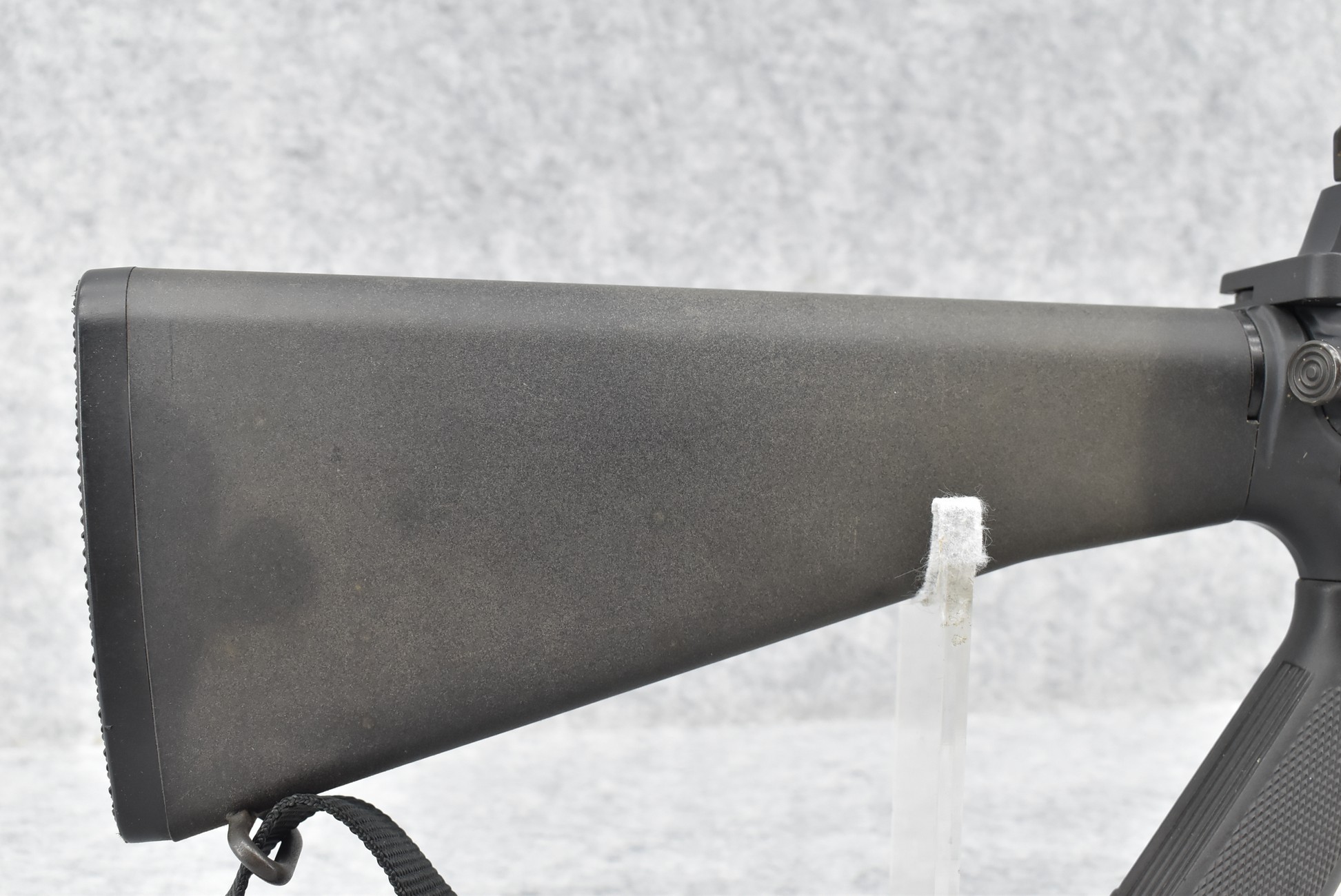 374R. Colt – Mod. Match Target Lightweight – 223/5.56 Cal. Semi-Auto Rifle – w/16.5” Barrel w/Front Iron Post & Rear Sights w/Carry Handle w/Rail Mount w/Adj. Peep Sight – Matte Black Finish – w/Factory Black Pistol Grip w/A2 Fixed Stock & Forearm w/Factory Metal Butt Plate w/4pc. Cleaning Rods in Trap Door of Stock – Note Low Serial # CSL001083 (CANNOT GO TO MARYLAND!)
