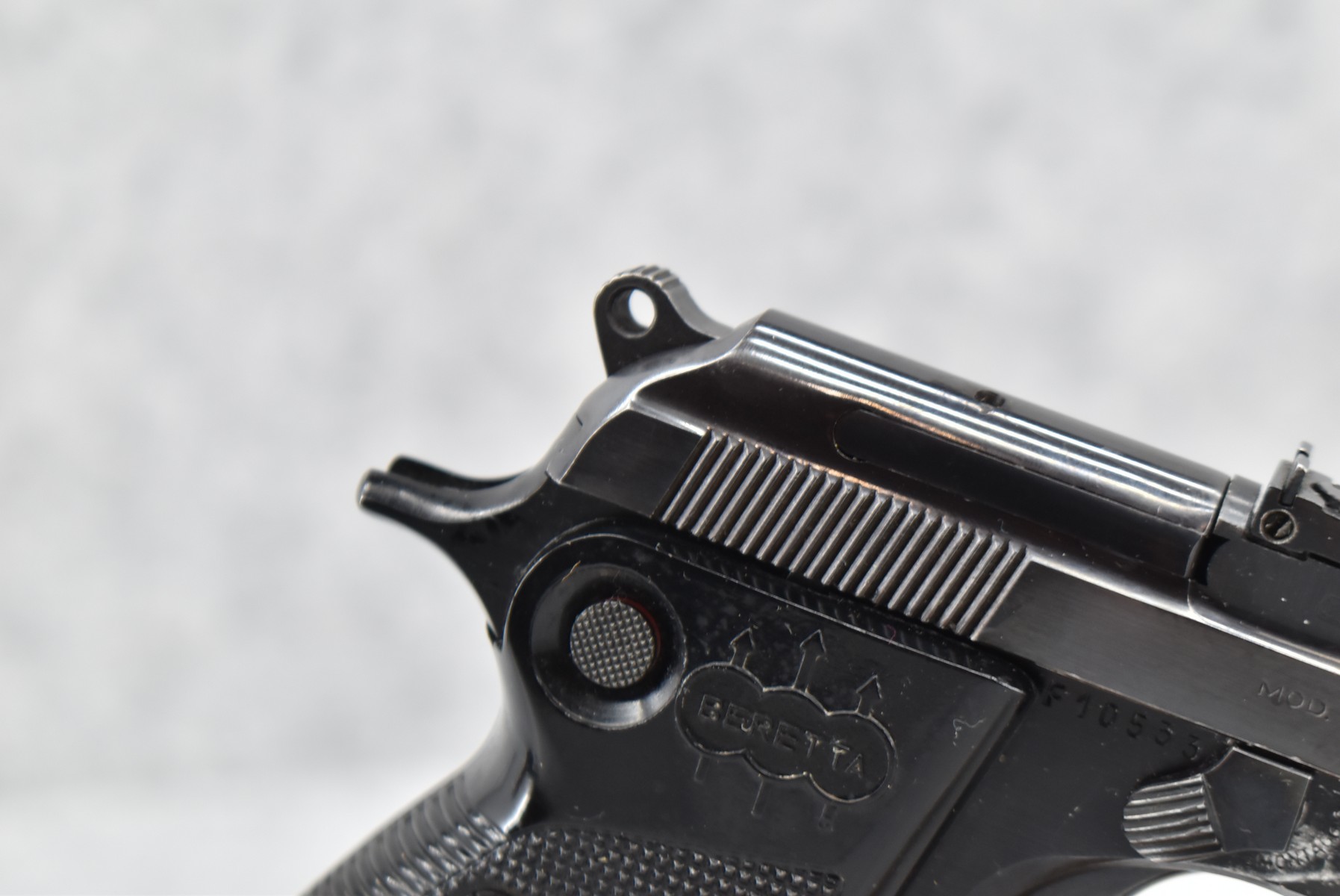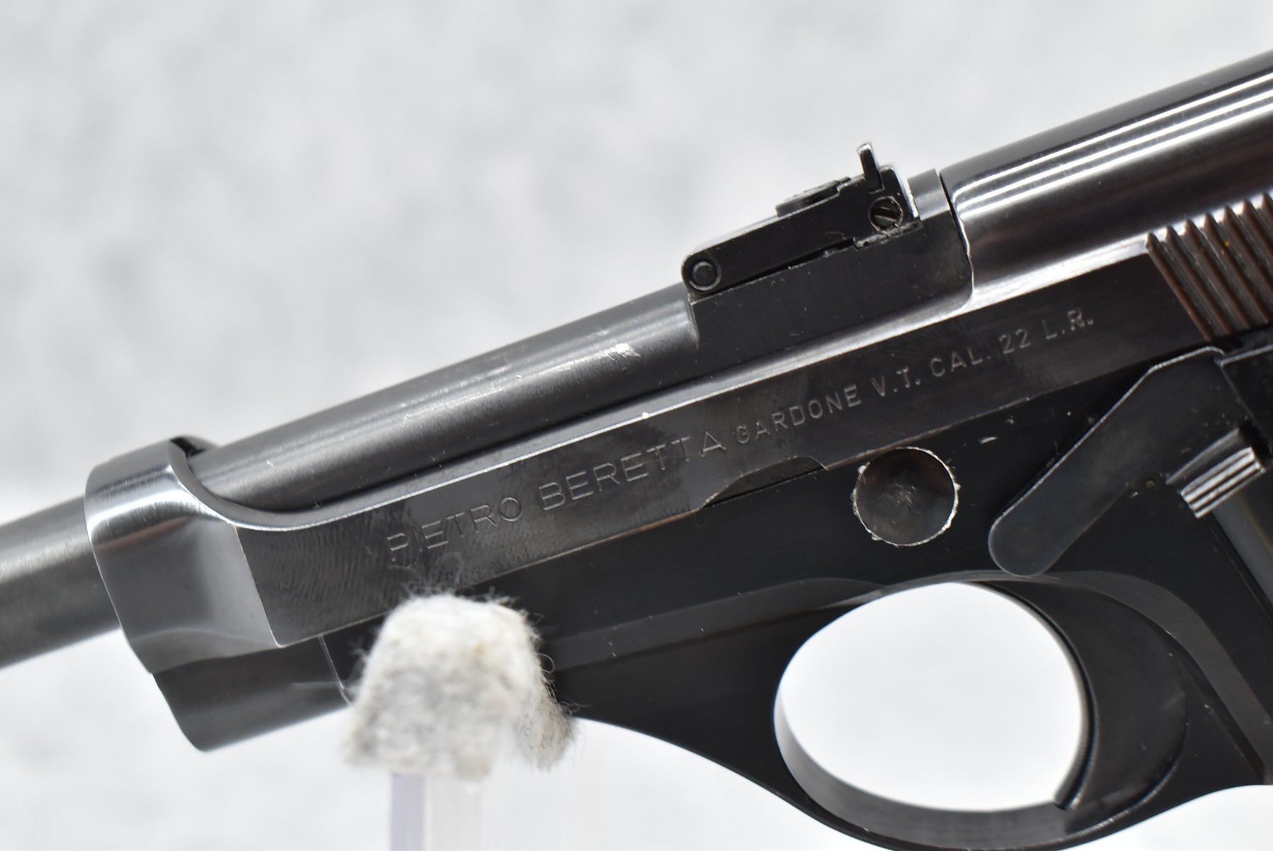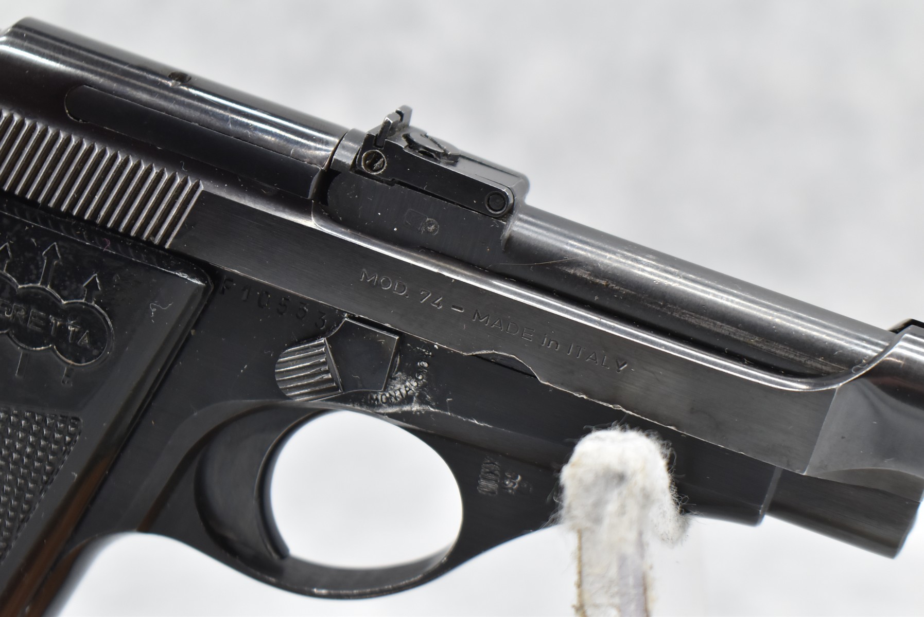 375R. Beretta – Mod. 74 – 22LR Cal. Semi-Auto Pistol – w/5 7/8” Barrel w/Factory Blade Front and Adjustable Rear Sights – Blued Finish – w/Checkered Black Plastic Grips – w/1 Factory Detachable Magazine