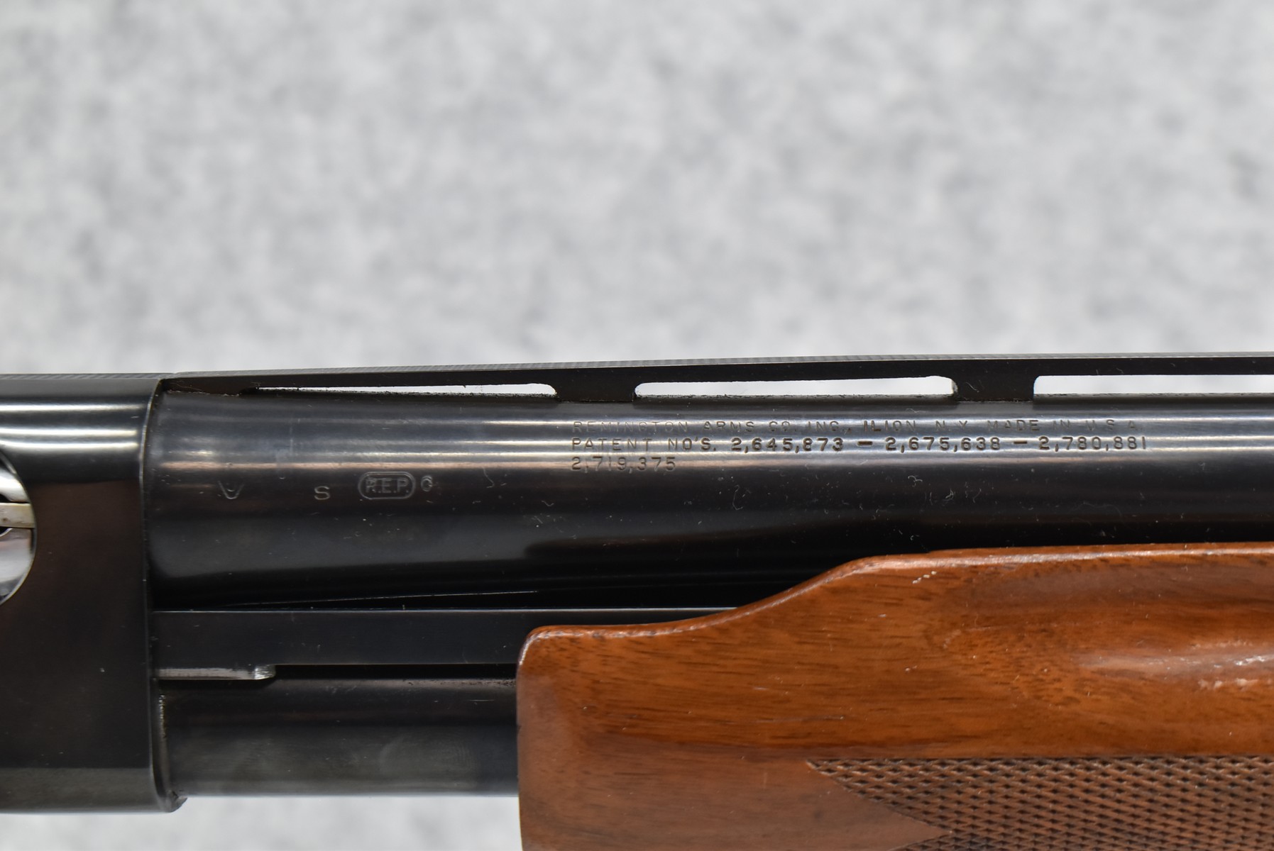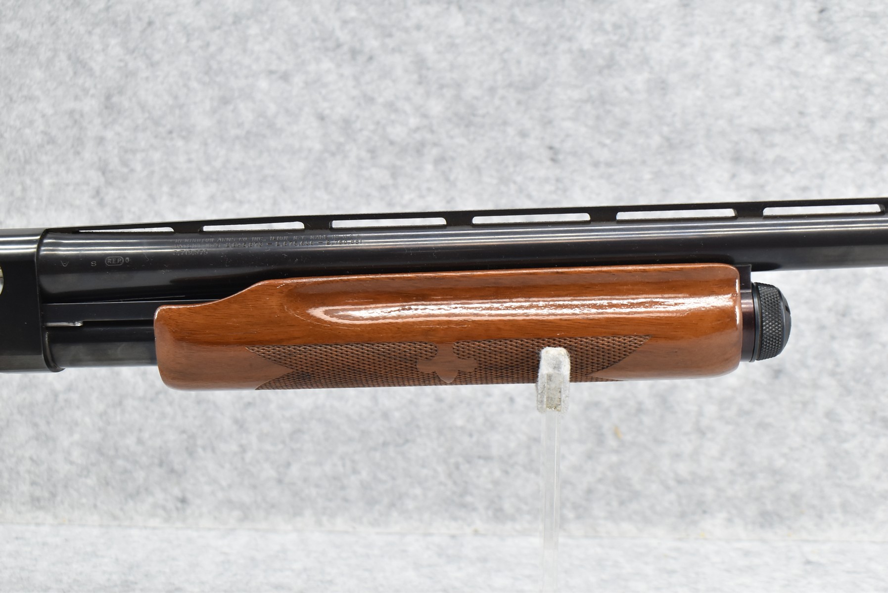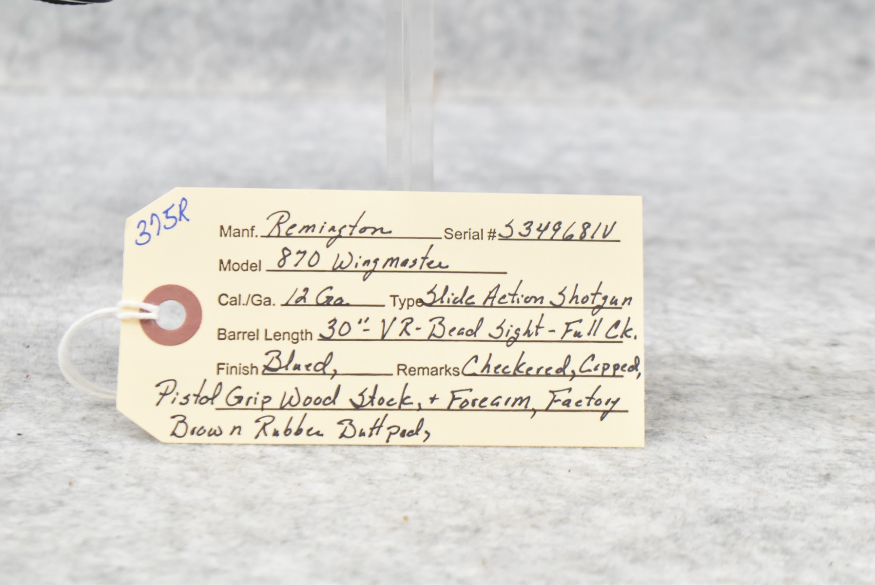375R. Remington – Mod. 870 Wingmaster – 12ga. Pump Action Shotgun – w/30” Full Choke, Vent-Rib Barrel w/Bead Sight – Blued Finish – w/Checkered Capped Pistol Grip Wood Stocks w/Factory Butt Pad