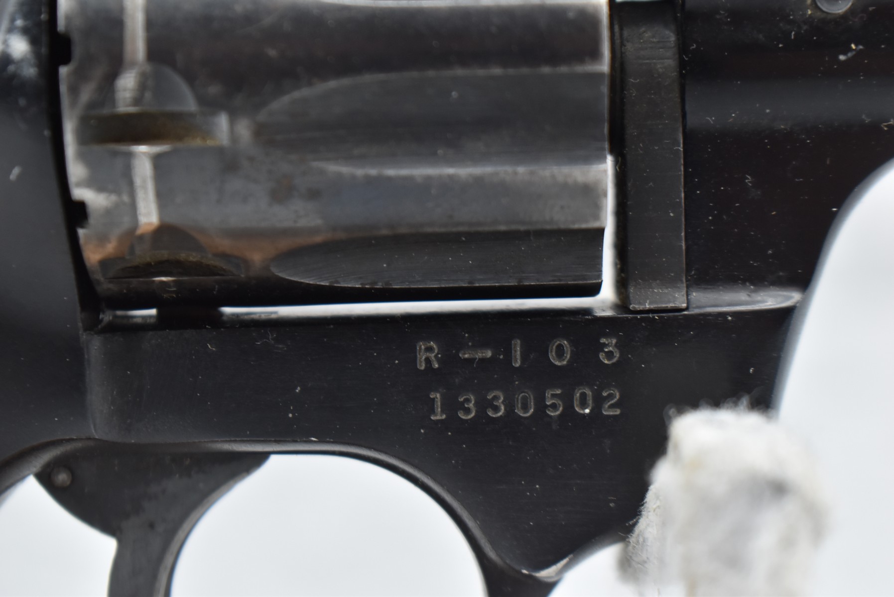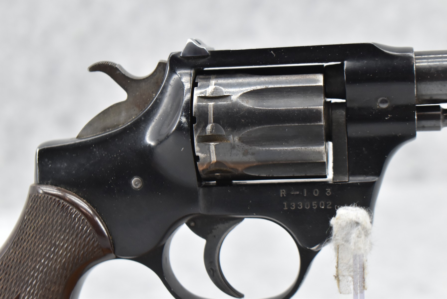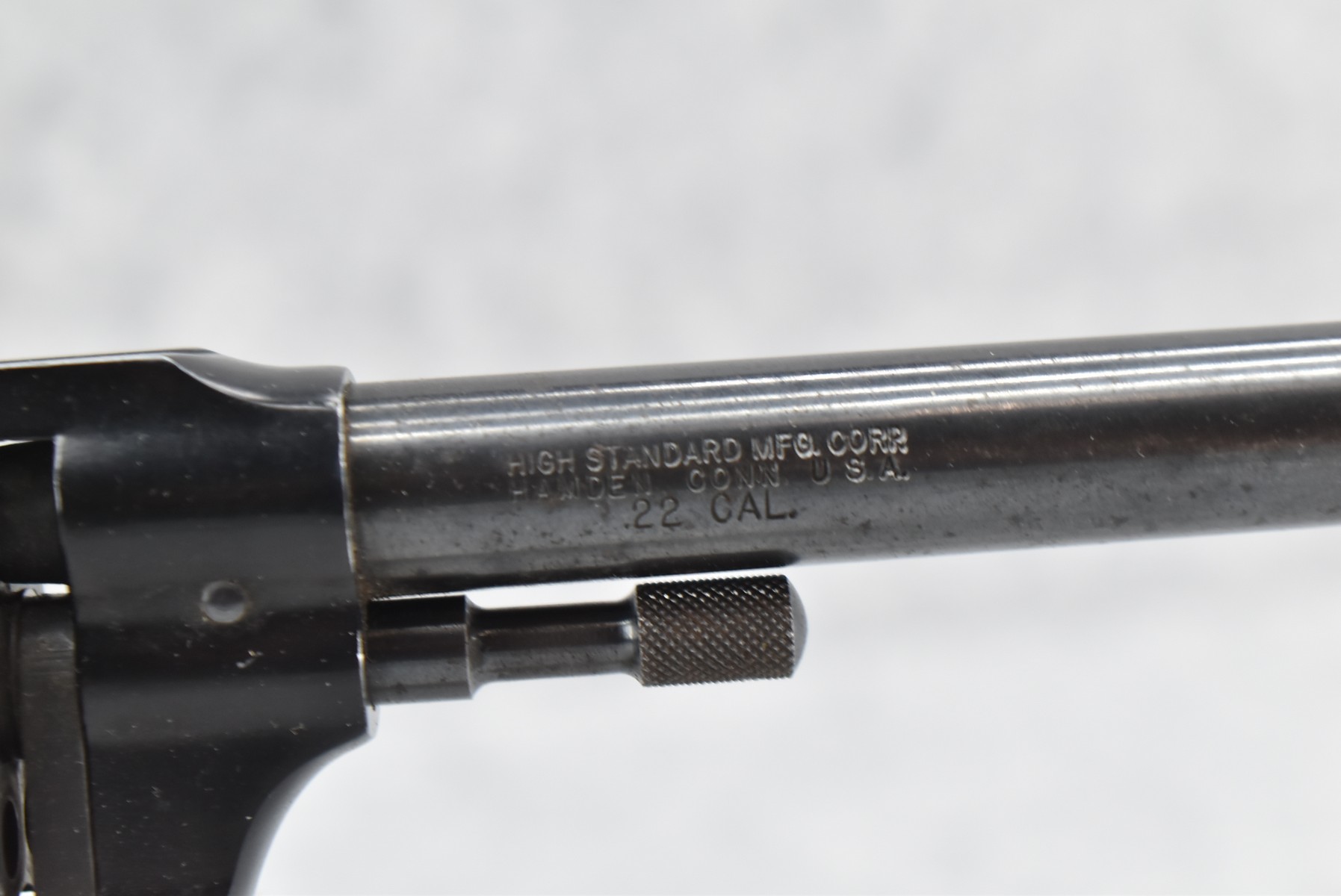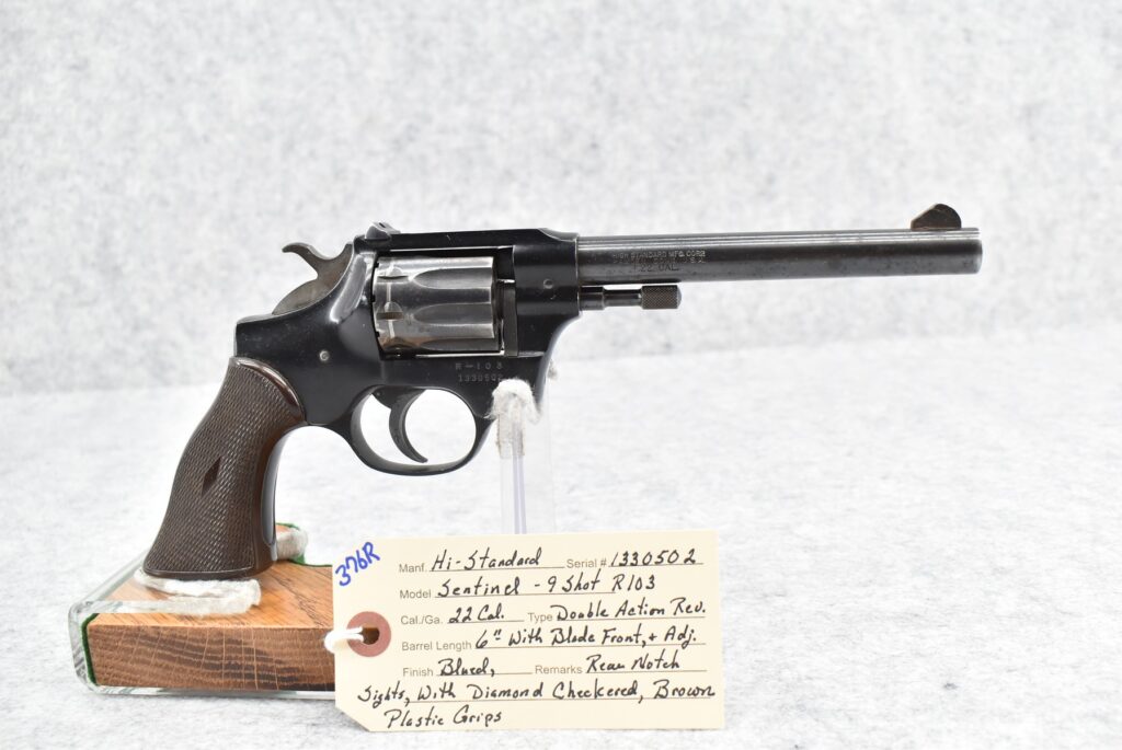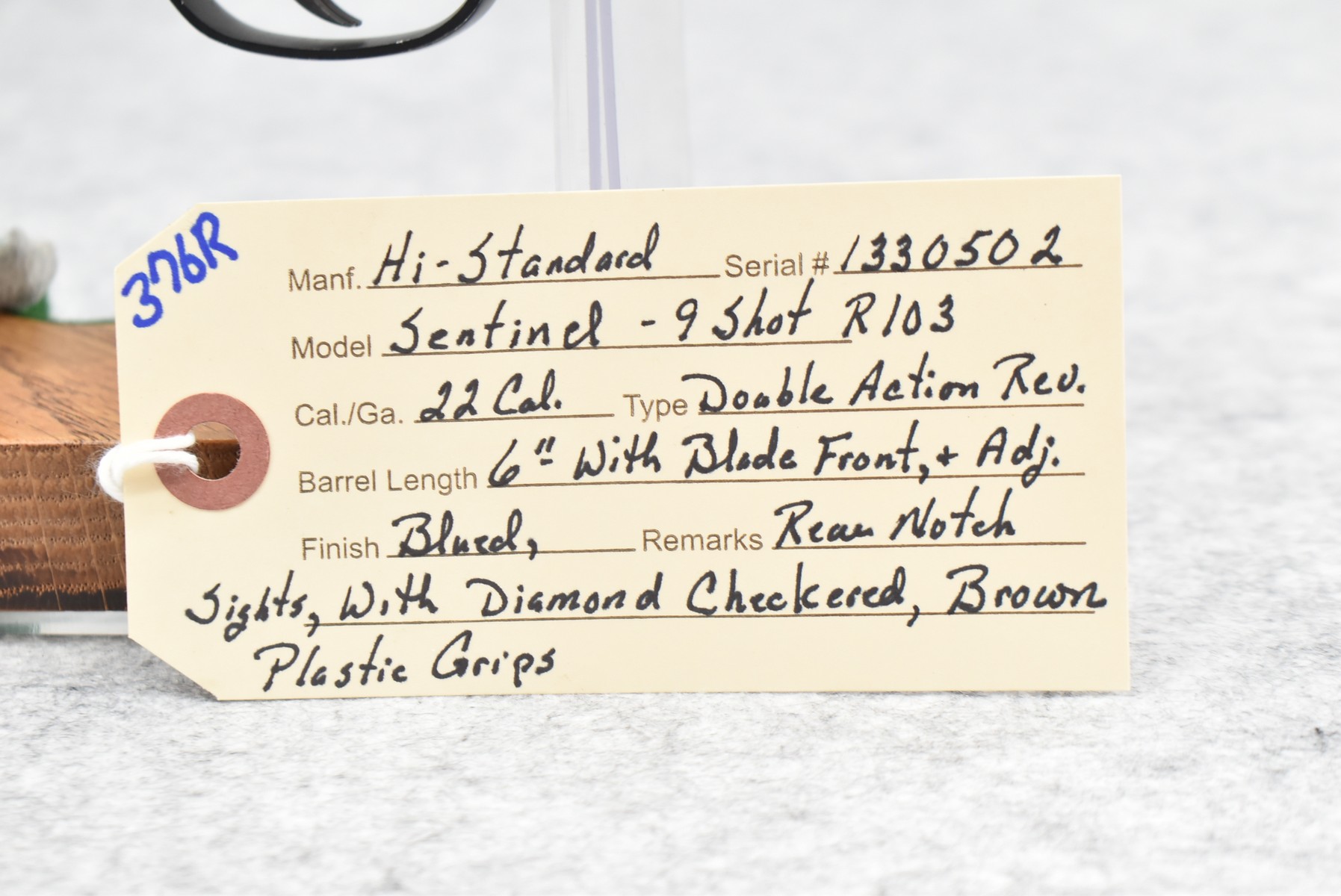 376R. Hi-Standard – Mod. Sentinel R103 – 22 Cal. Double Action 9-Shot Revolver – w/6” Barrel w/Blade Front and Adjustable Rear Notch Sights – Blued Finish – w/Diamond Checkered Brown Plastic Grips