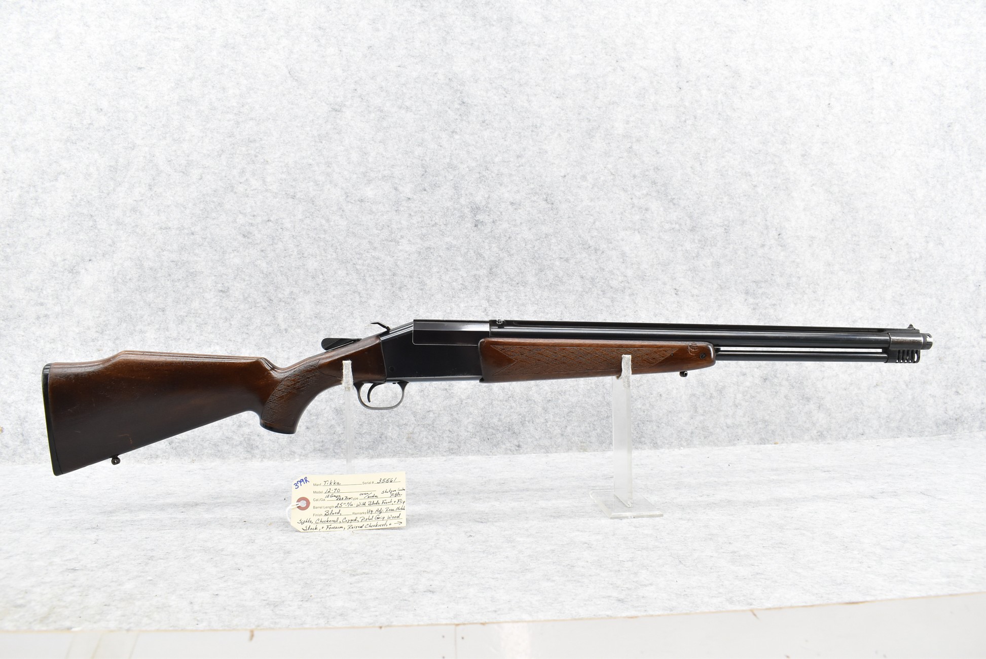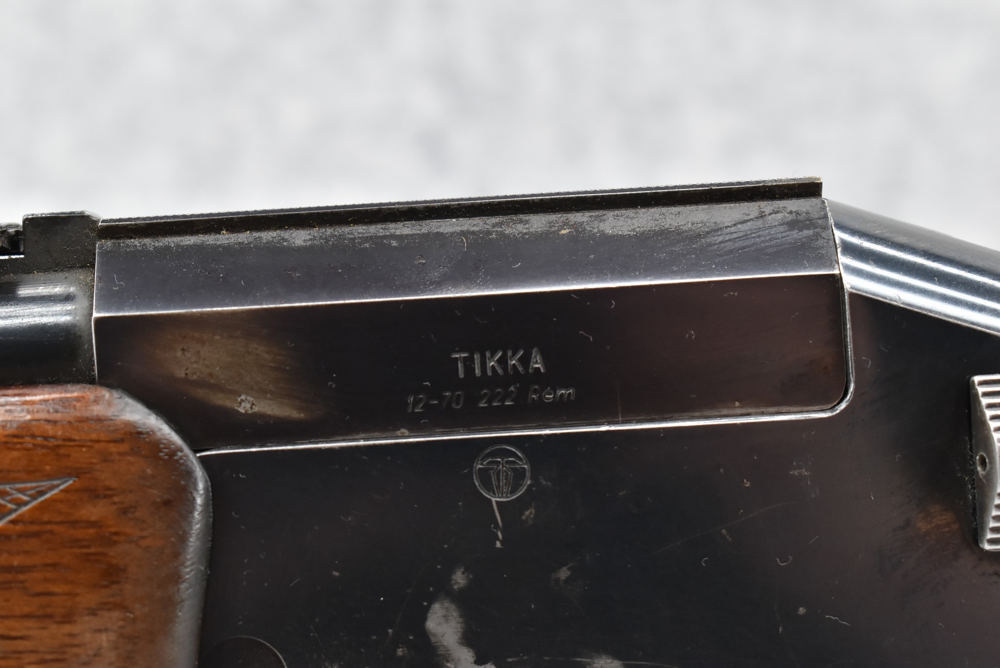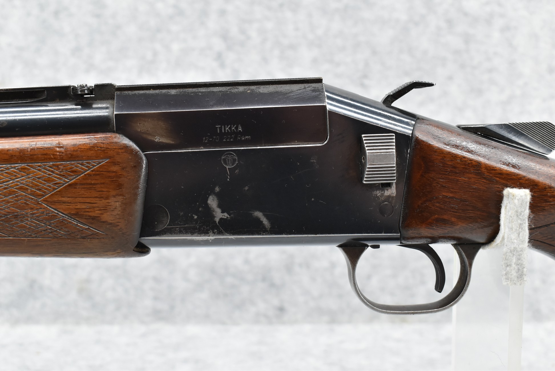 379R. Tikka – Mod. 12-70 – 12ga. Over 222 Rem. Cal. Over-Under Shotgun/Rifle Combo – w/25” Barrels w/Blade Front & Flip Up Adj. Rear Notch Sights – Blued Finish – w/Checkered Capped Pistol Grip Wood Stocks w/Raised Cheek Piece w/Factory Butt Plate – w/Square Button Barrel Selector