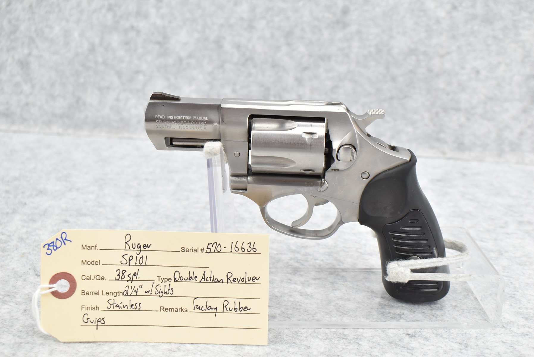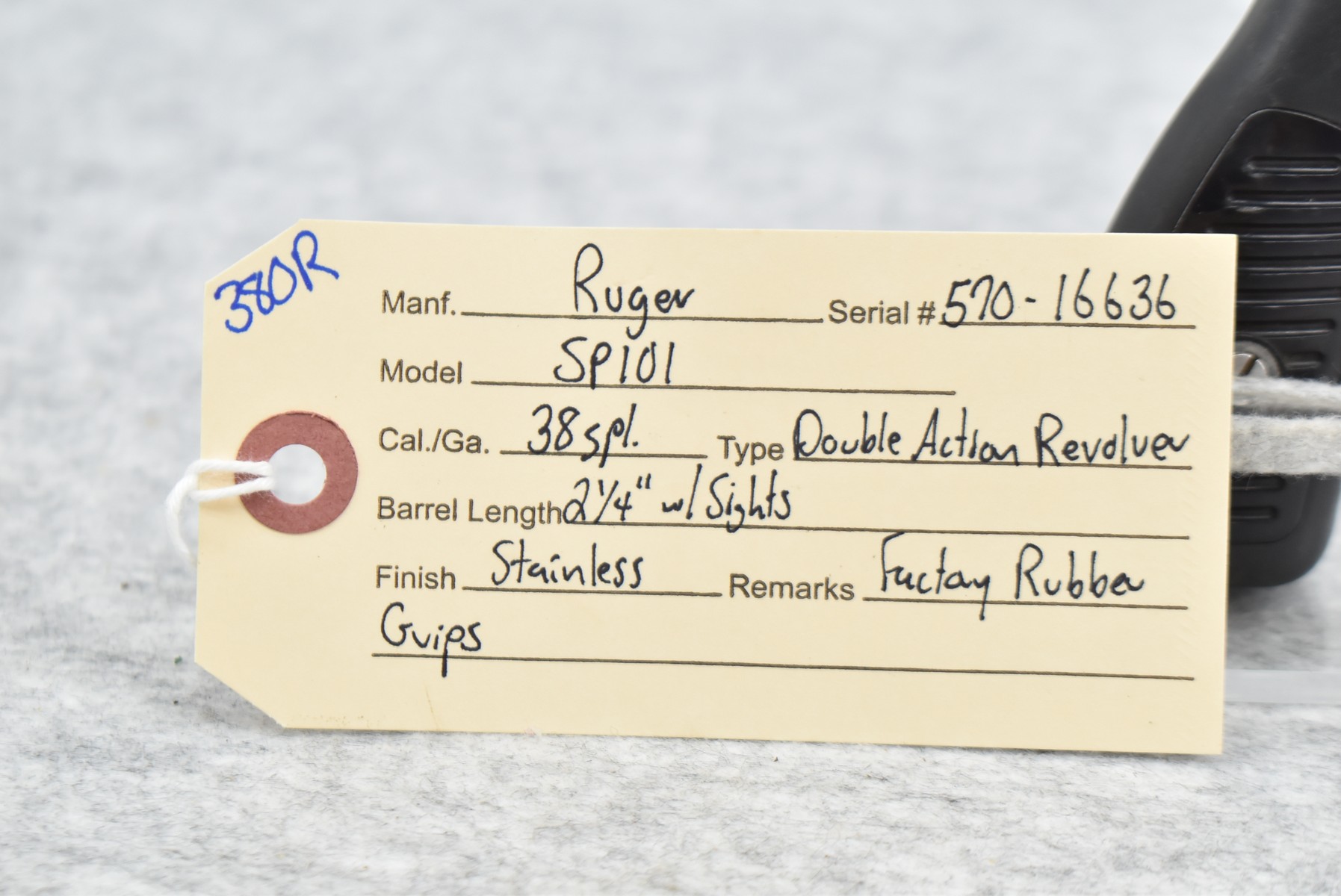 380R. Ruger – Mod. SP101 – 38 Spl. Cal. Double Action Revolver – w/2 ¼” Barrel w/Sights – Stainless Finish – w/Factory Rubber Grips