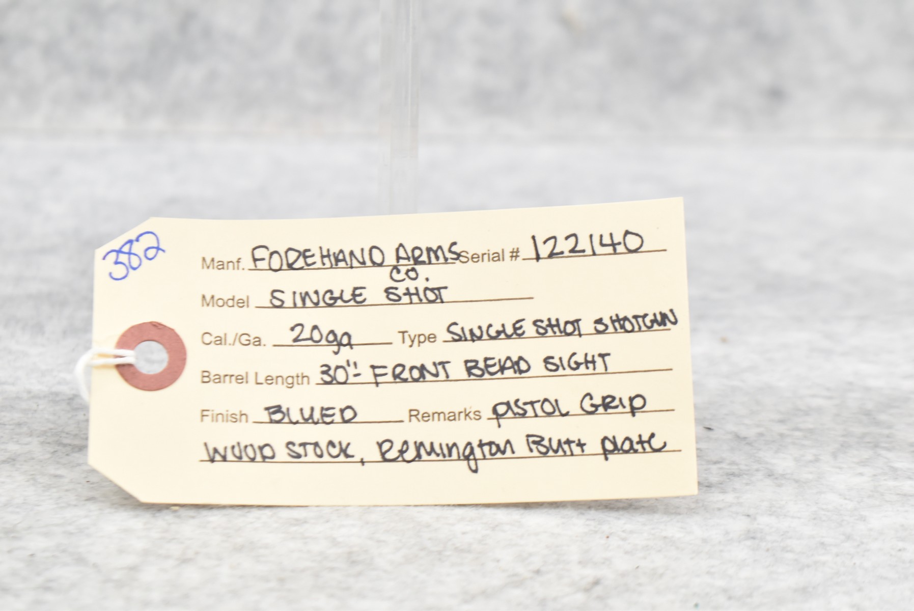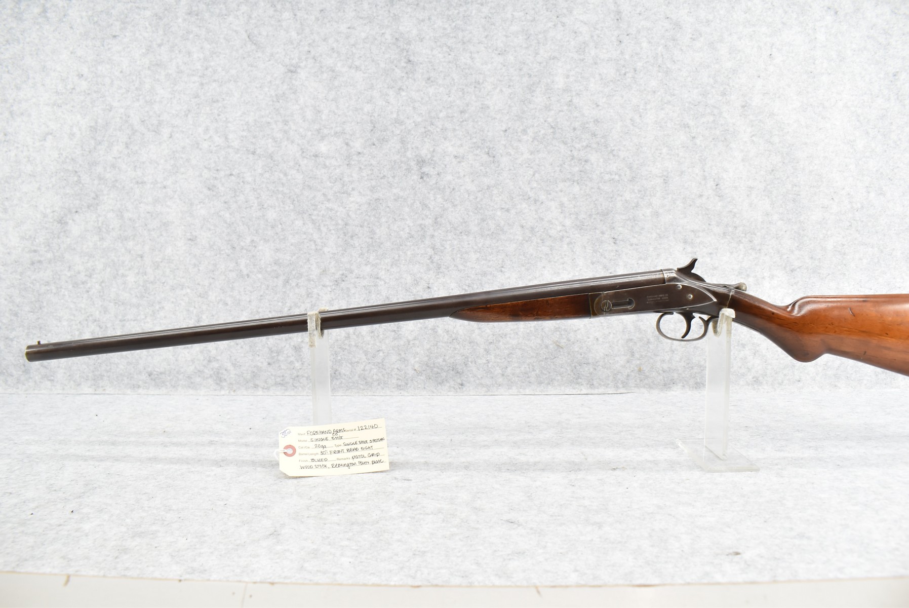382. Forehand Arms Co. – 20ga. Single Shot Shotgun – w/30” Barrel w/Front Bead Sight – Blued Finish – w/Pistol Grip Wood Stock w/Remington Butt Plate