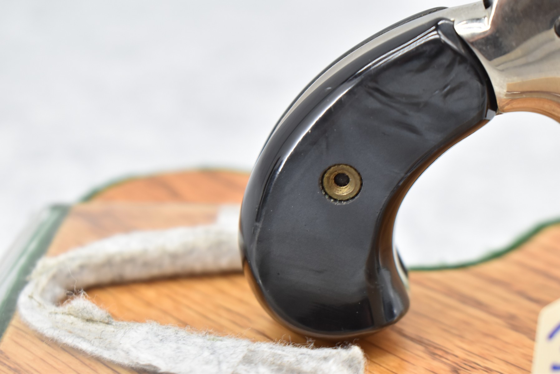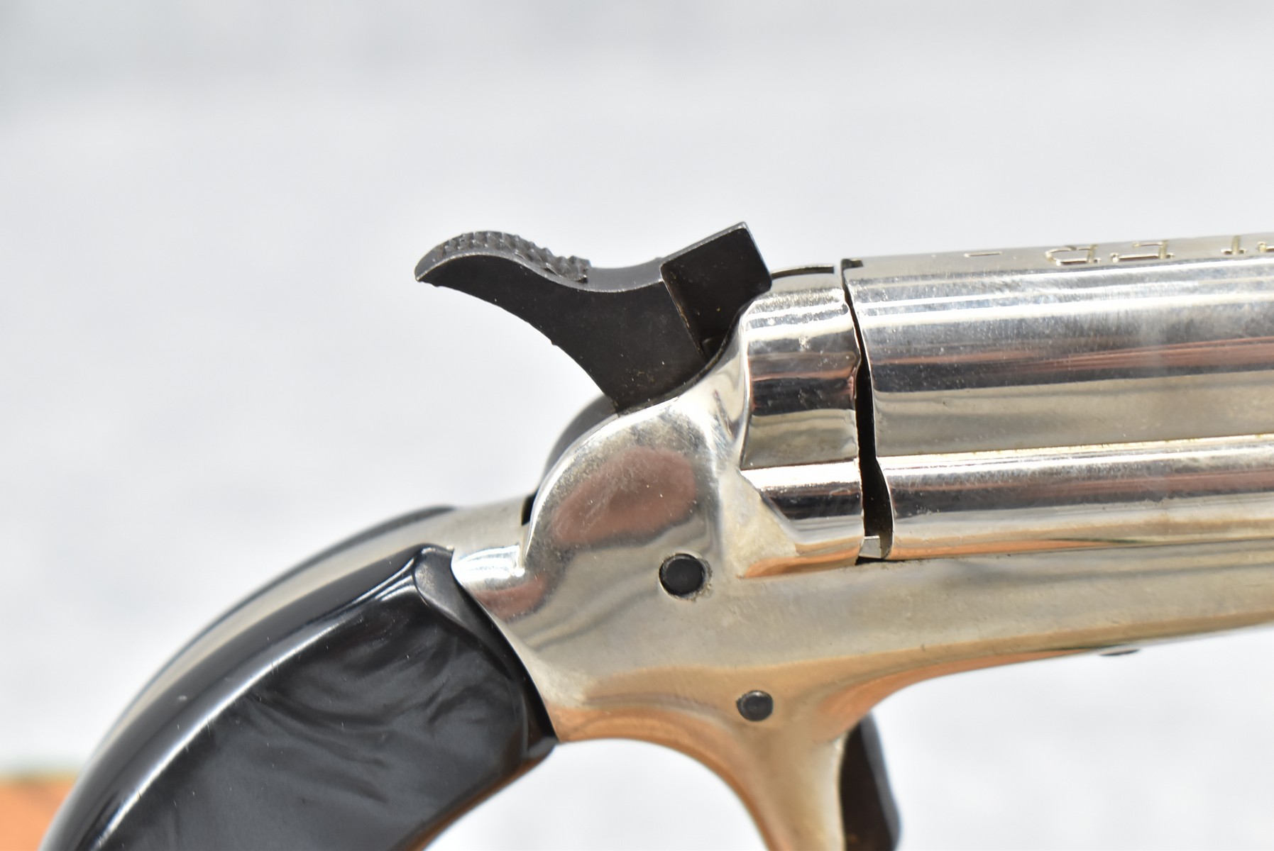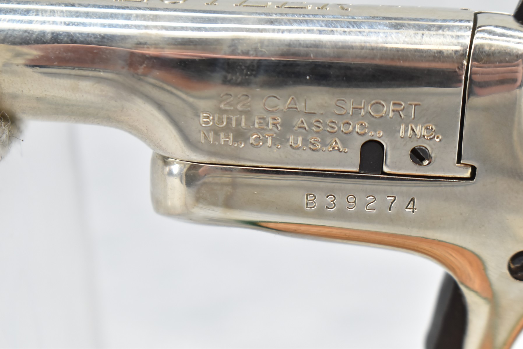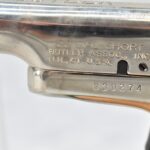 382R. Butler Assoc. – Mod. Pocket Pistol Derringer – 22 Short Cal. Single Shot Pistol – w/2 3/8” Barrel w/Factory Sights – Nickel Finish – w/Black Onyx Birds Head Grips – w/Spur Trigger – w/Black Leather Holster