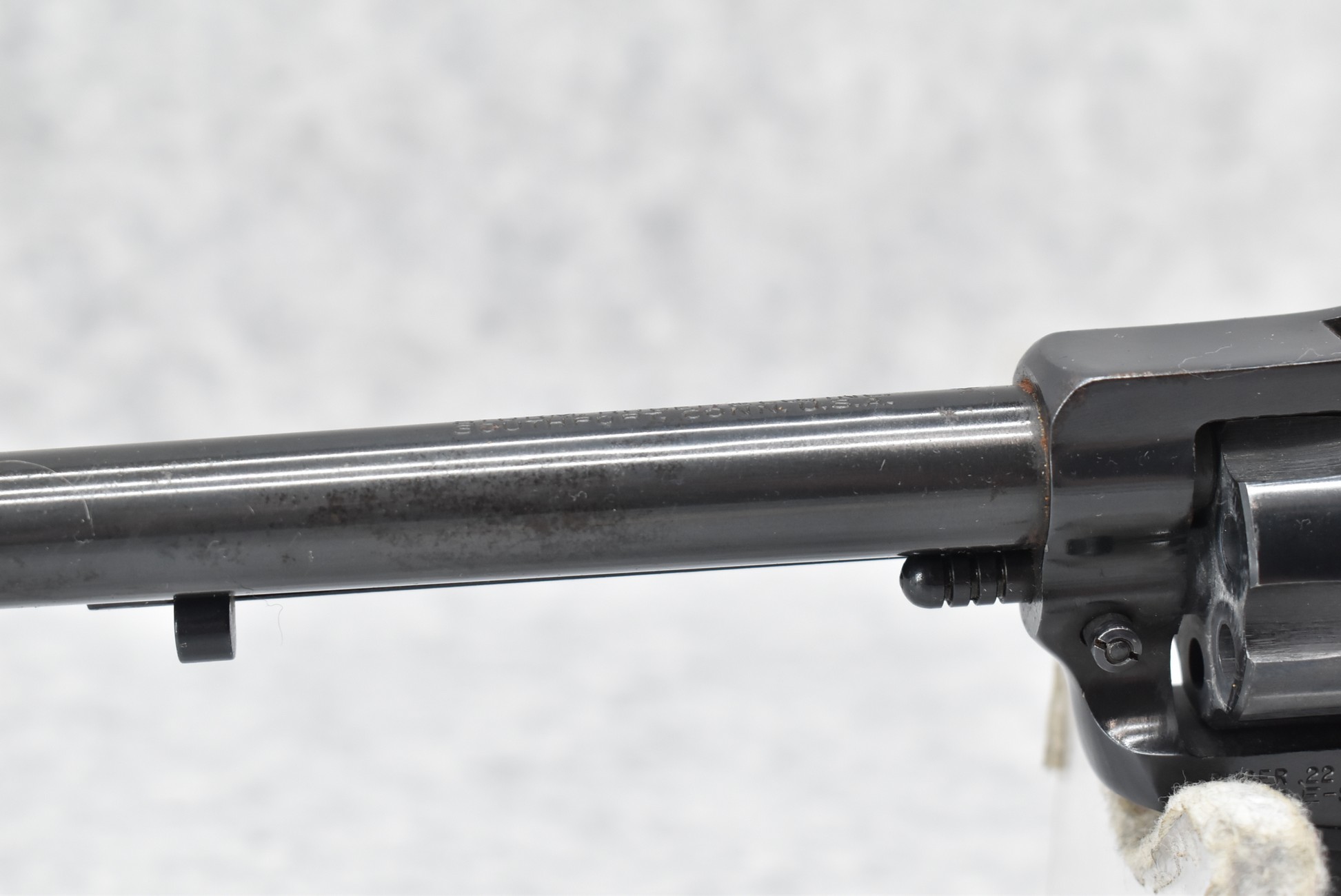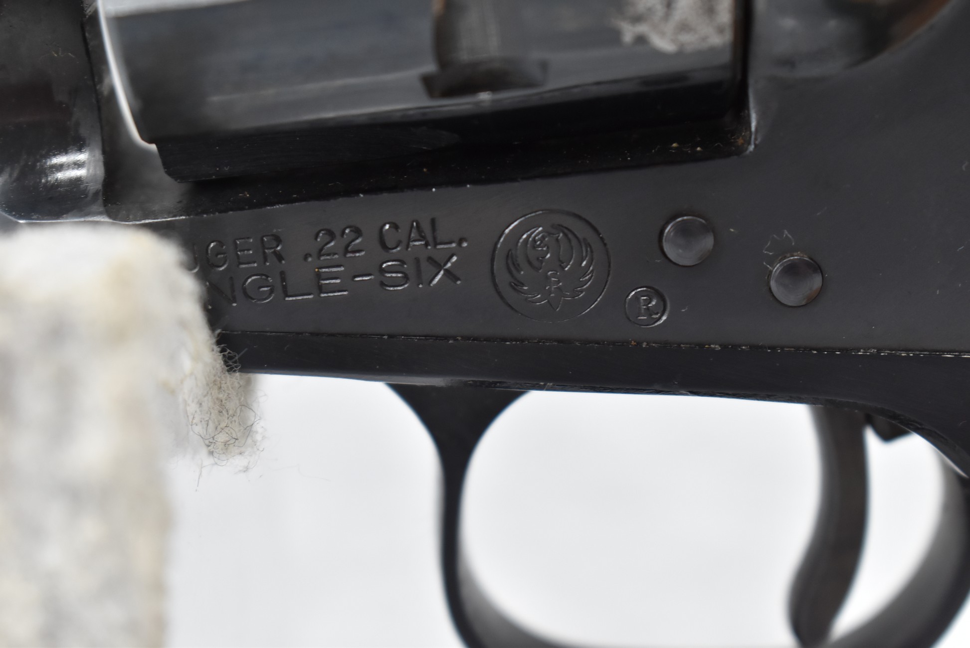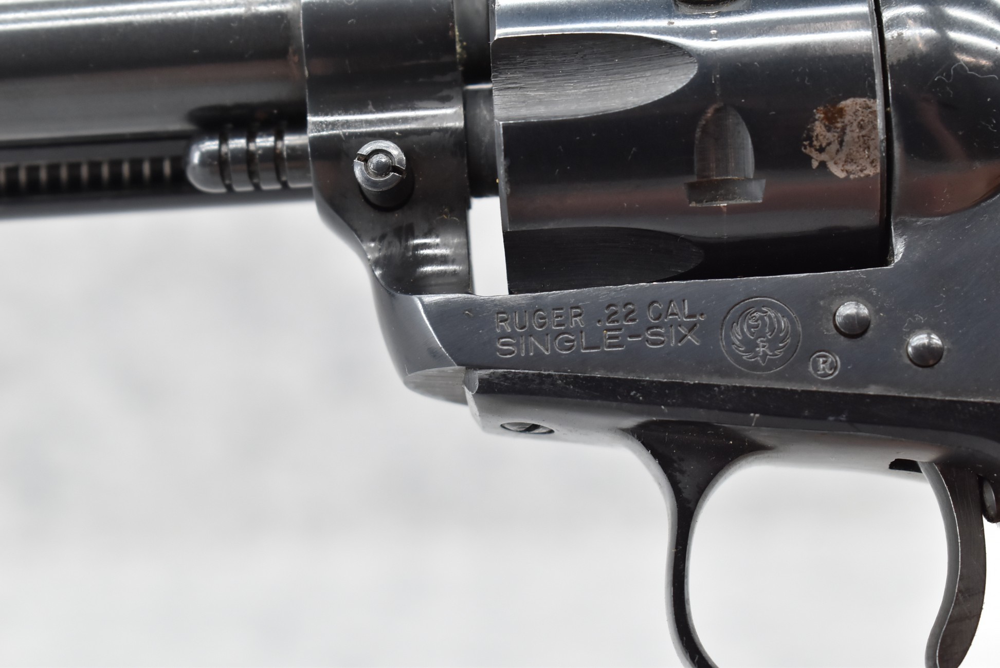 382R. Ruger – Mod. Single Six (3-Screw) – 22 Cal. Single Action Revolver – w/6.5” Barrel w/Sights – Blued Finish – w/Factory Wood Grip w/Silver Eagle Medallion
