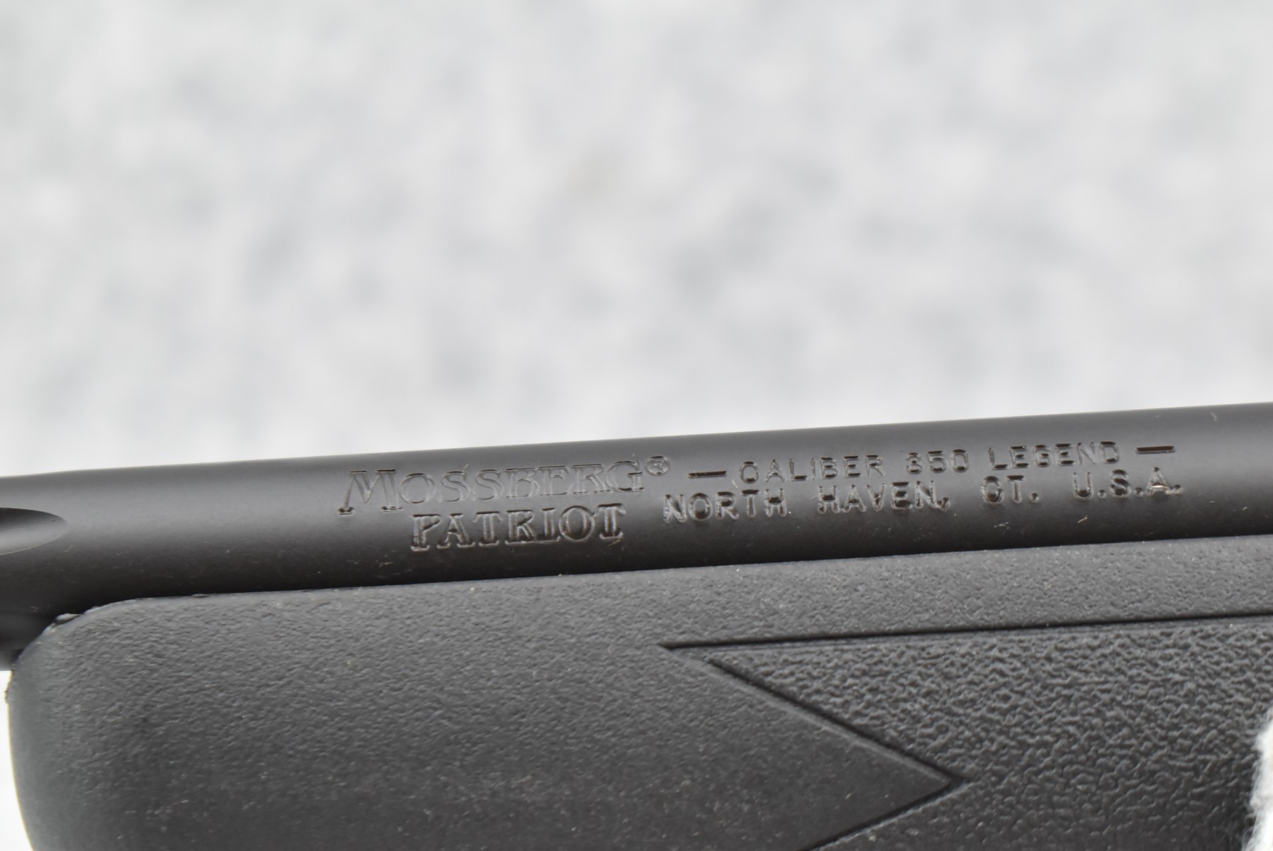 383R. Mossberg – Mod. Patriot – 350 Legend Cal. Bolt Action Rifle – w/22” Spiral Fluted Barrel – Matte Blued Finish – w/Factory Black Synthetic Pistol Grip Stock w/Factory Recoil Pad – w/Factory Detachable Mag – w/2pc. Rail Mount – New & Unfired w/Factory Box & Manual