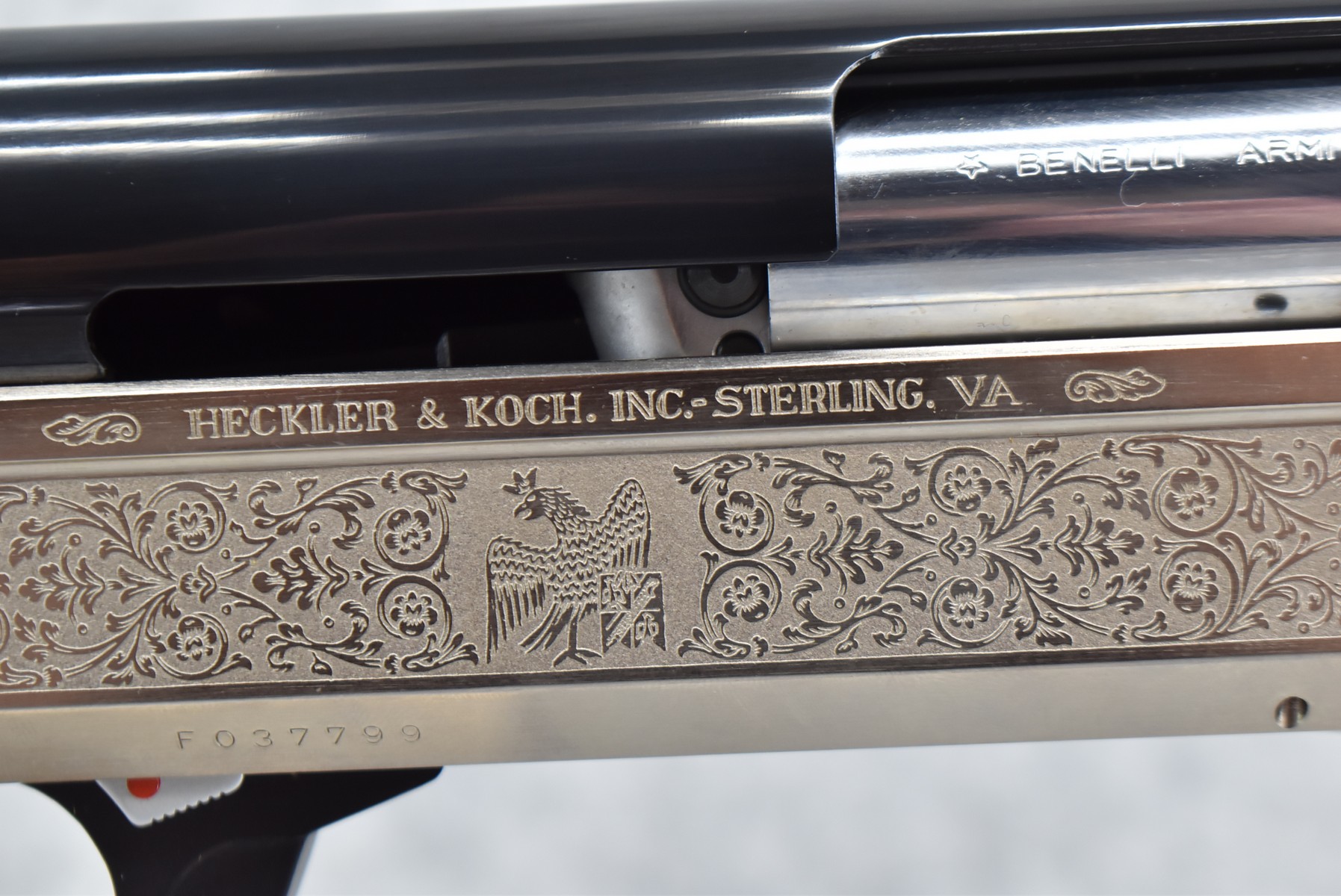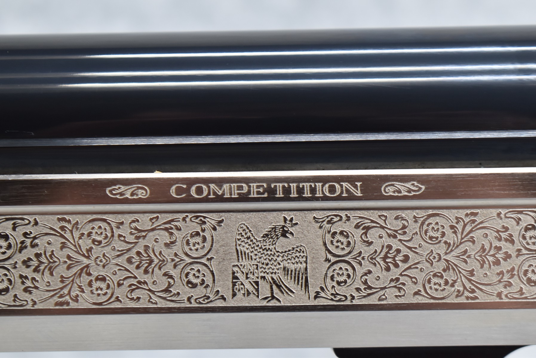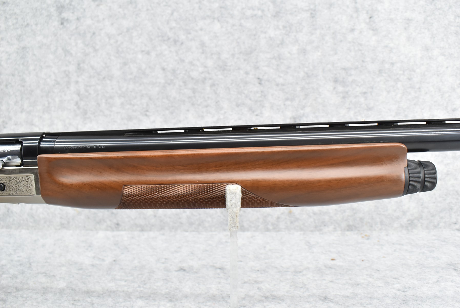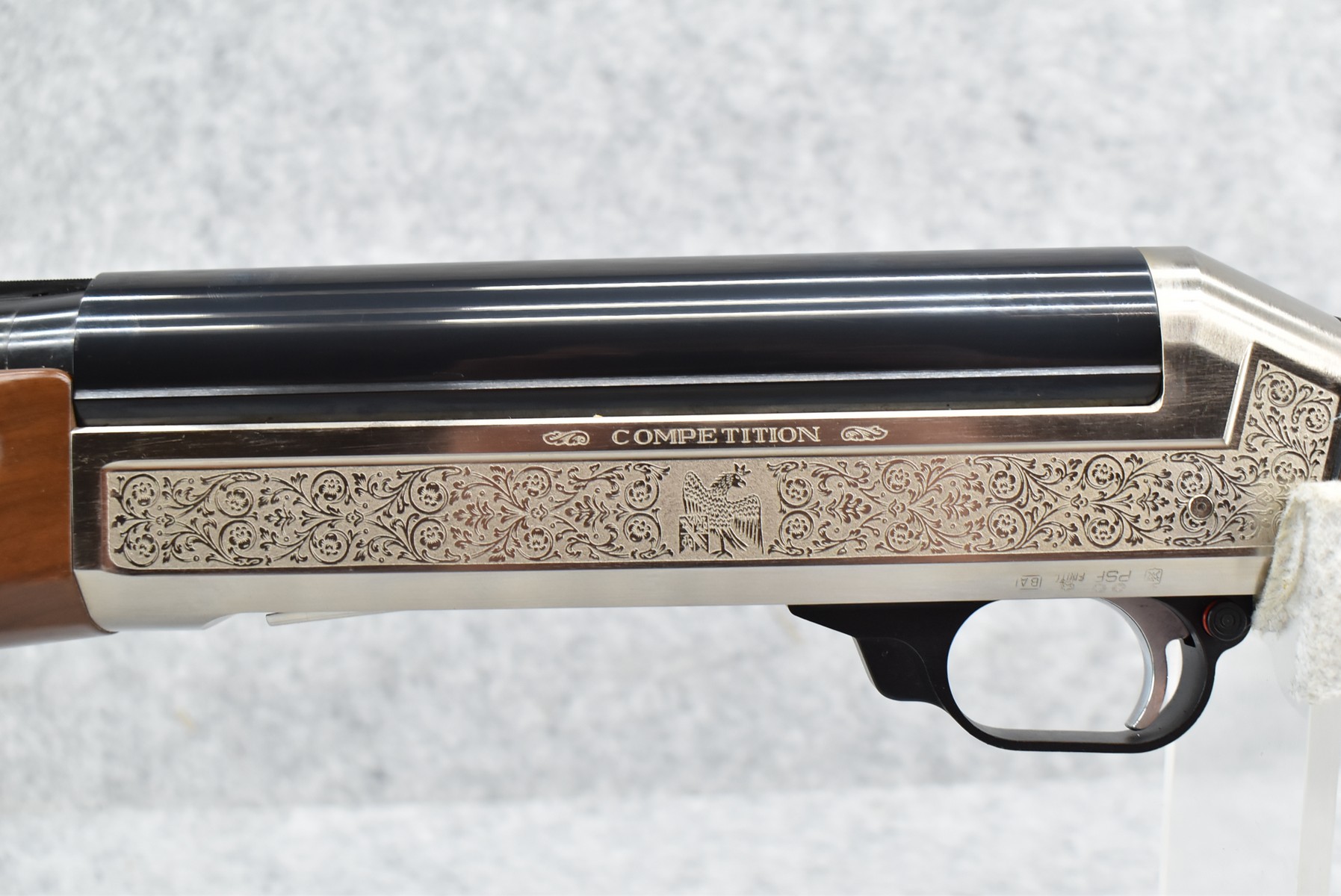385R. Benelli – Mod. Super Black Eagle Competition – 12ga. Semi-Auto Competition Shotgun – w/28” Interchangeable Choked, Vent-Rib Blued Finish Barrel w/Front Fiber Optic & Mid Bead Sights – w/Silver Finish Engraved Receiver – w/Factory Checkered Pistol Grip Wood Stocks w/Factory Recoil Pad – New & Unfired w/Factory Box – Mfg. 1991-1997