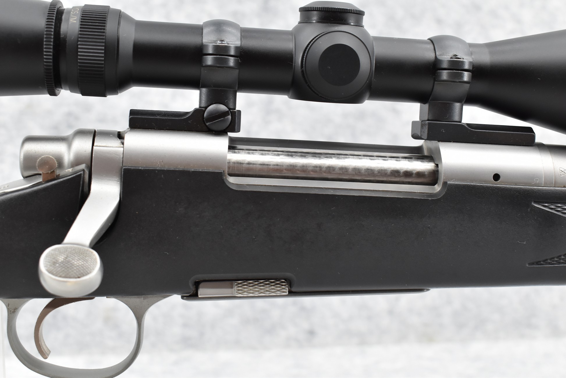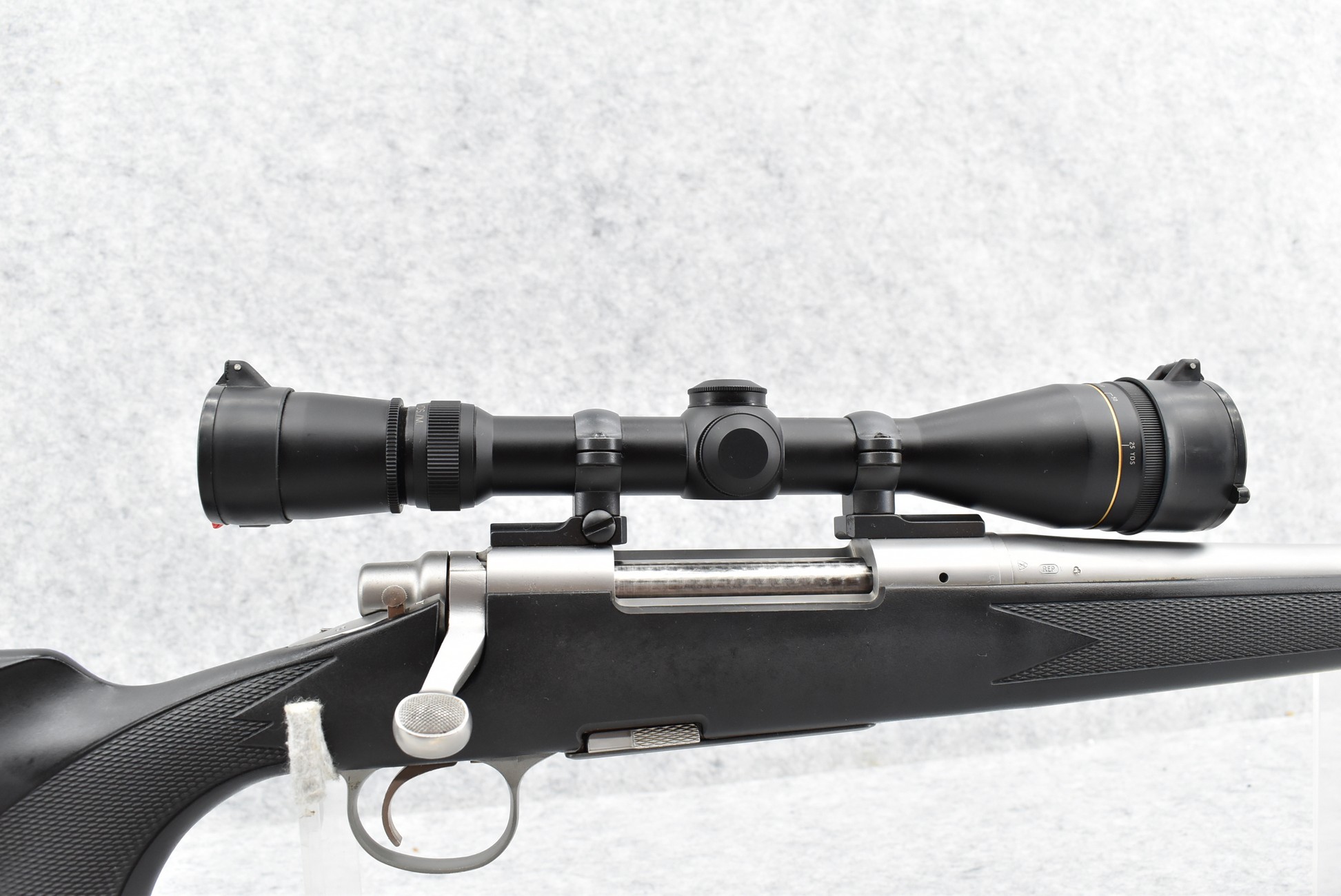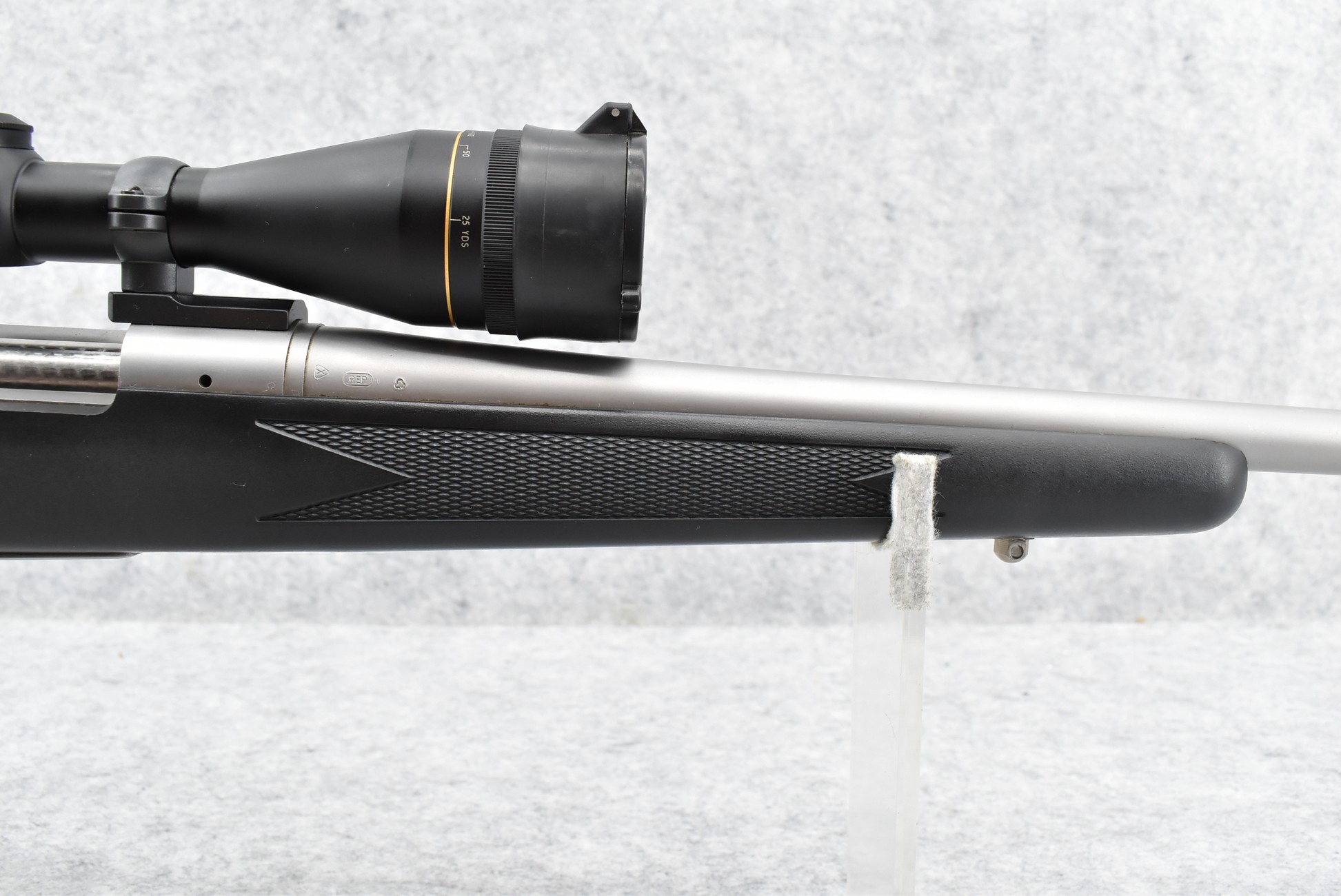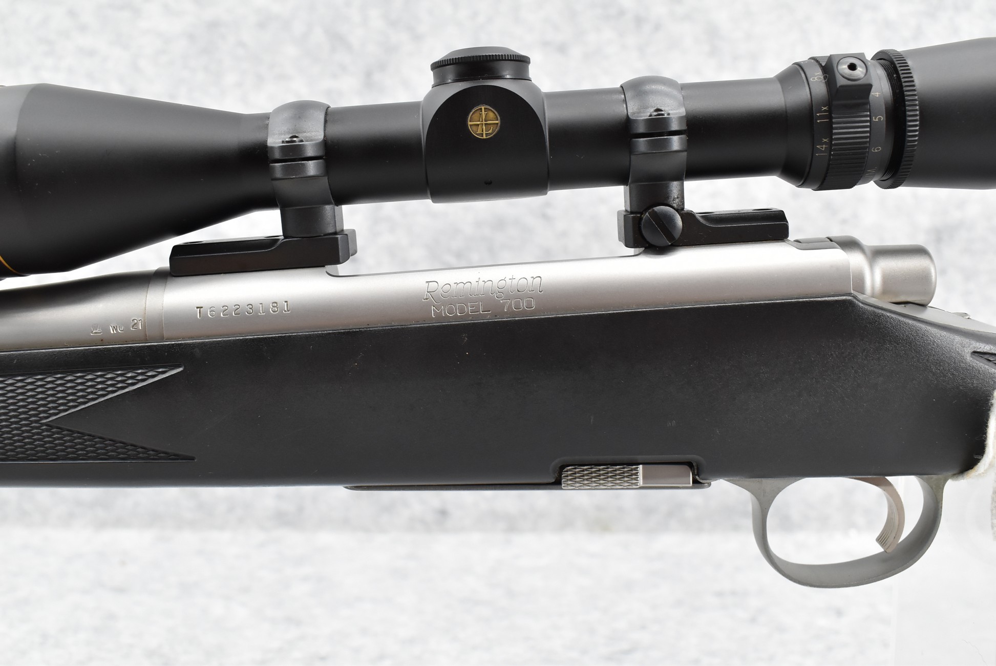 389R. Remington – Mod. 700 BDL DM Stainless Synthetic – 300 Wby. Mag. Cal. Bolt Action Rifle – w/25” Barrel w/Muzzle Brake – w/Leupold Custom Shop Vari X-III 4.5-14x40mm Scope w/Front AO & Custom BDC Reticle Set Up to This Gun – Stainless Finish – w/Checkered Capped Pistol Grip Black Synthetic Stock w/Factory Recoil Pad – w/Factory Detachable Magazine – Scope Reticle Designed for Federal Premium Safari 180gr. Nosler Partition Ammo – Great Package
