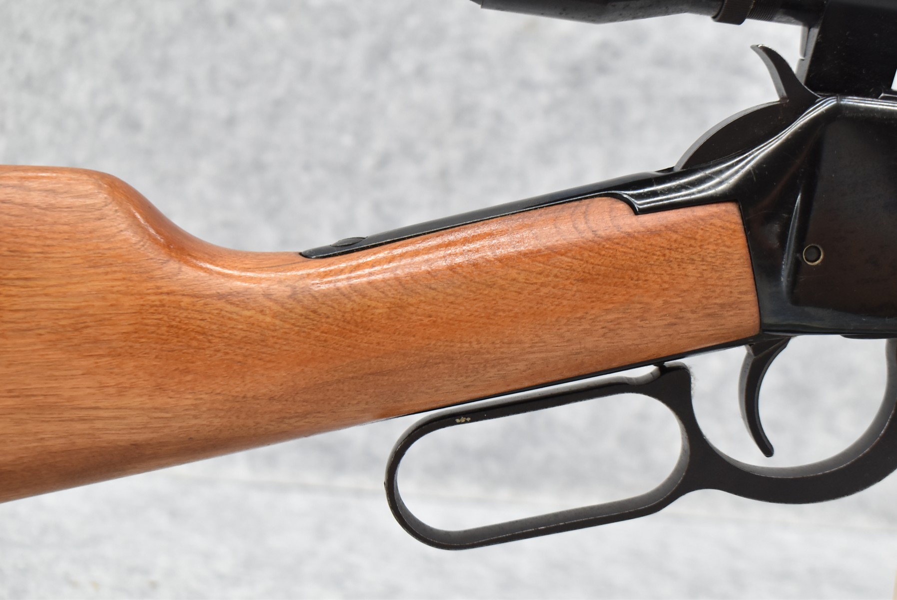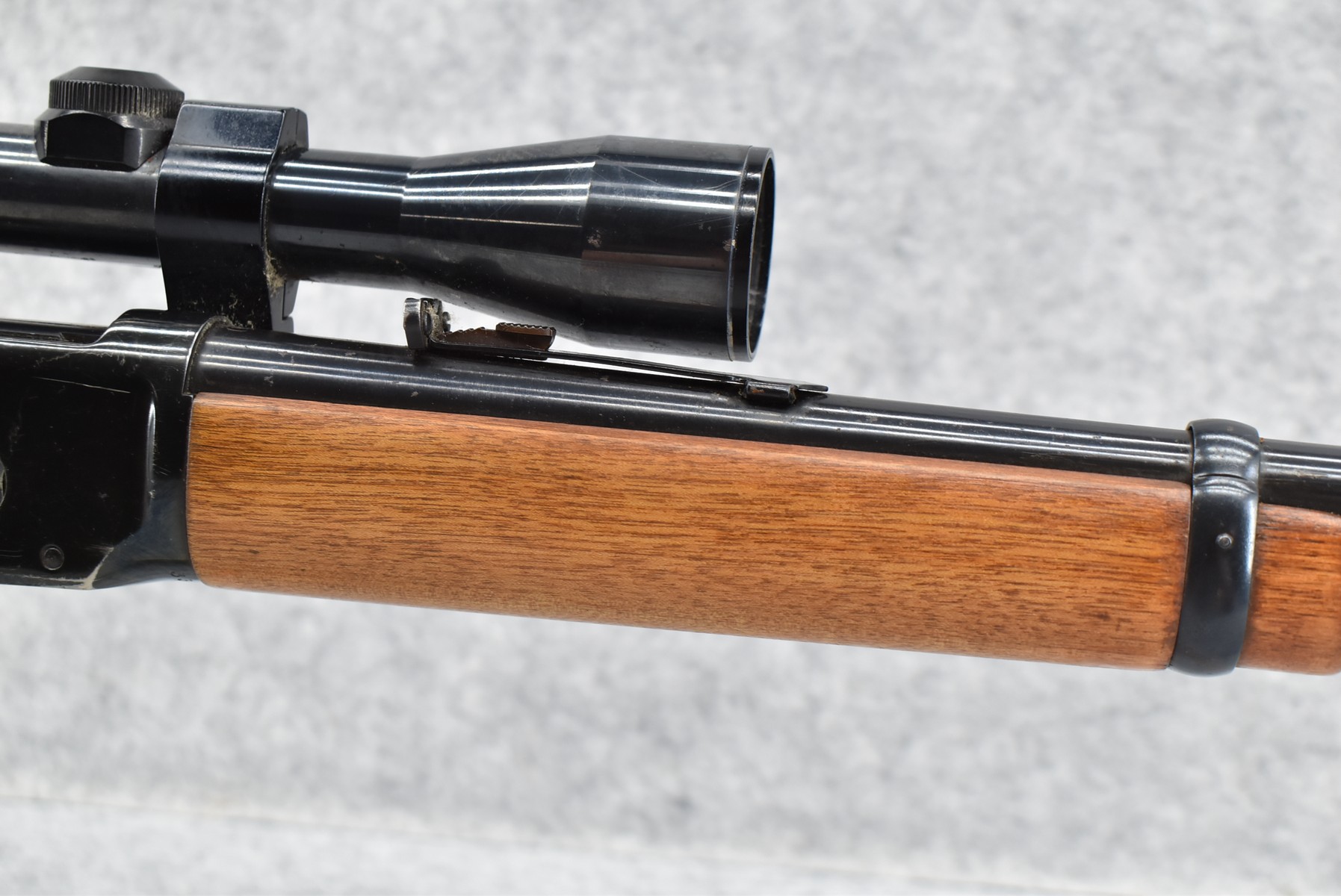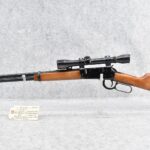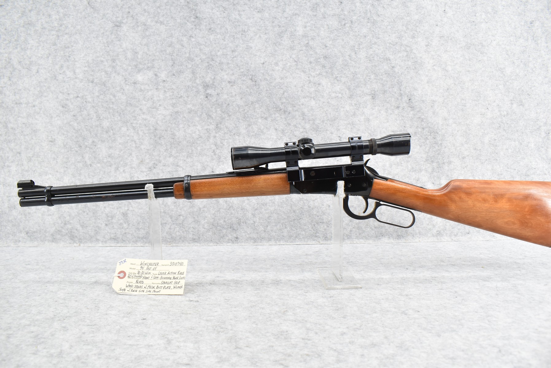 390R. Winchester – Mod. 94 (Post-64) – 30-30 Win. Cal. Lever Action Rifle – w/20” Barrel w/Hooded Front & Semi-Buckhorn Rear Sights – Blued Finish – w/Straight Grip Wood Stocks w/Metal Butt plate – w/Weaver Scope – w/Kwik-Site Side Mount