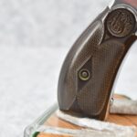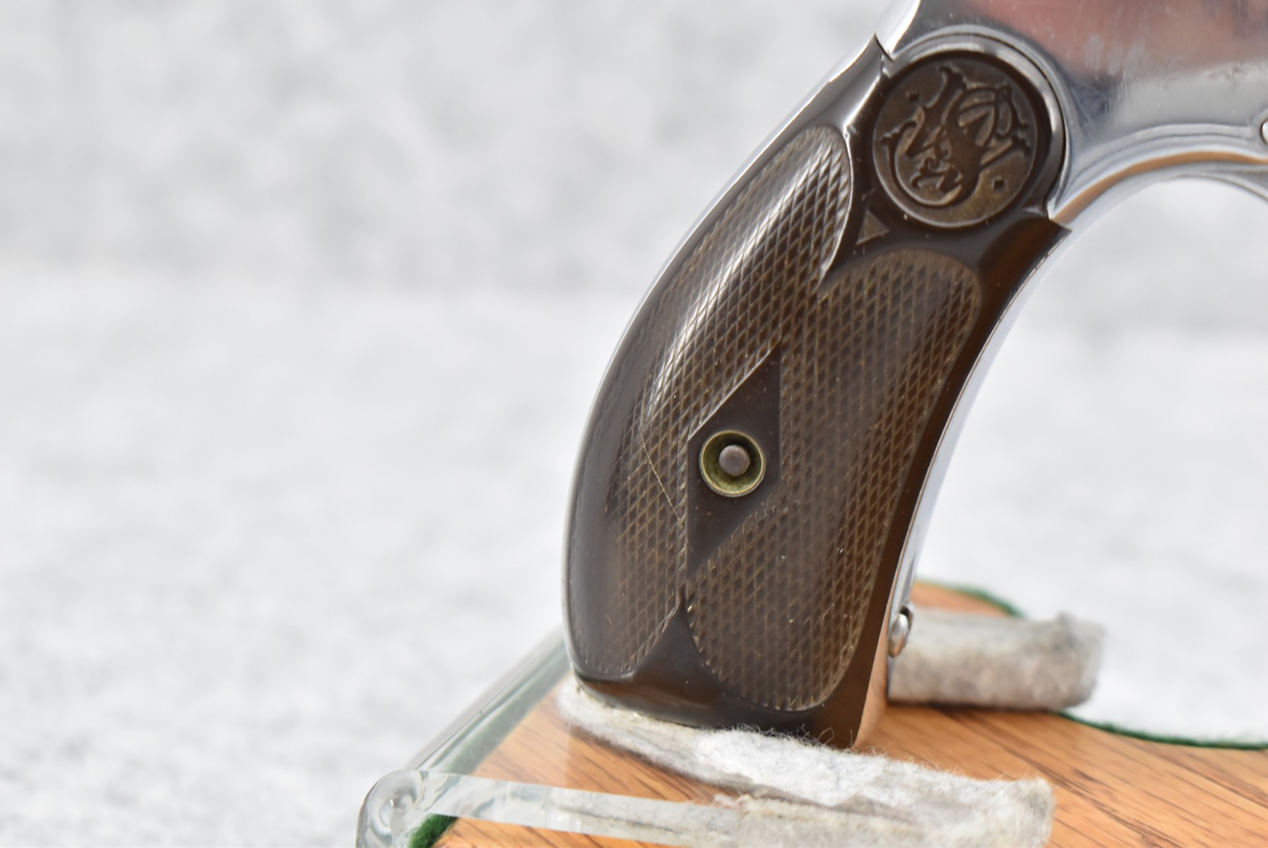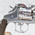 391. Smith & Wesson – Mod. 38 Double Action – 38 S&W Cal. Double Action Revolver – w/5” Top Rib Barrel w/Round Blade Front and Adjustable Rear Notch Sights – Re-Nickeled Finish – w/Smith & Wesson Diamond Checkered Brown Hard Rubber Grips