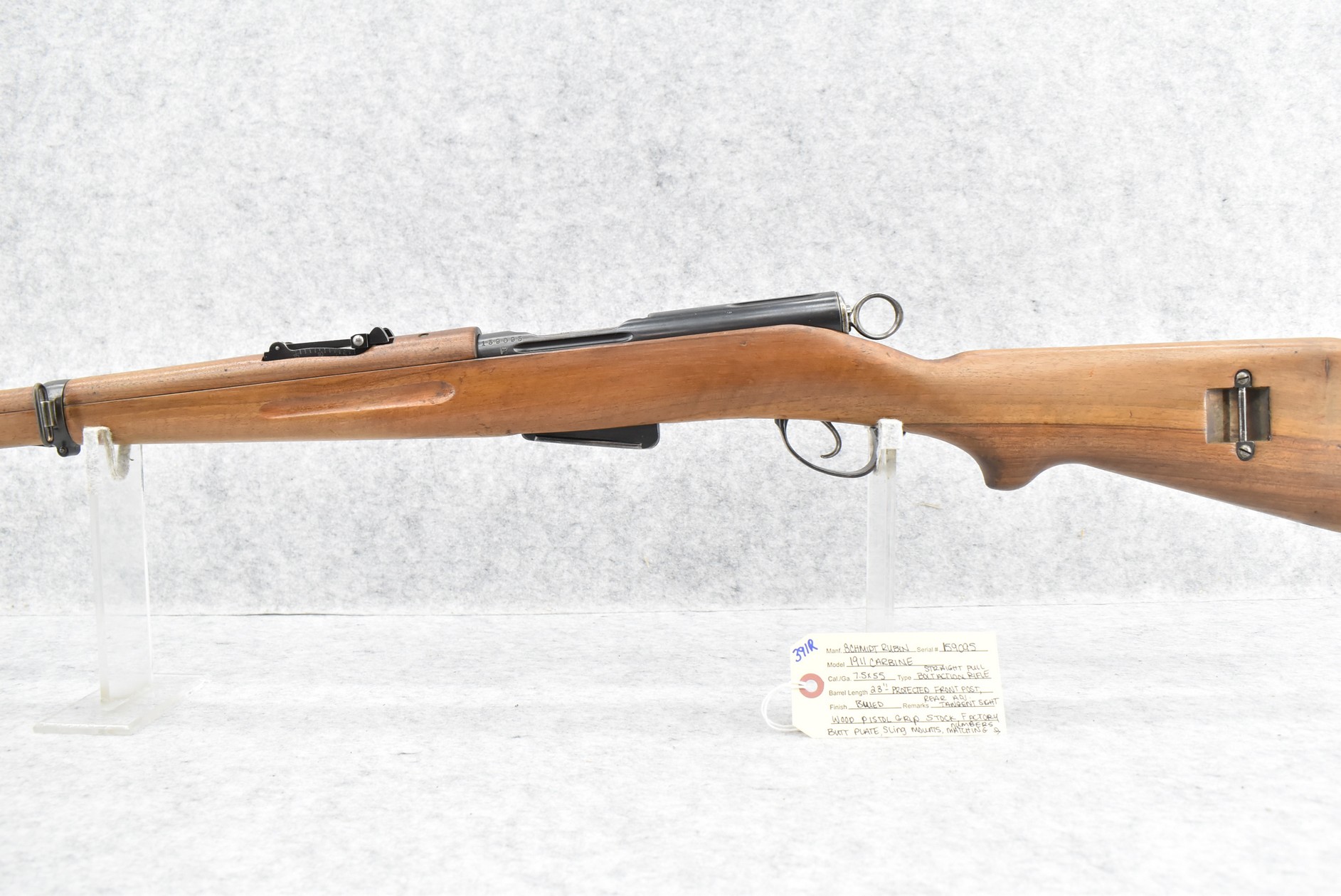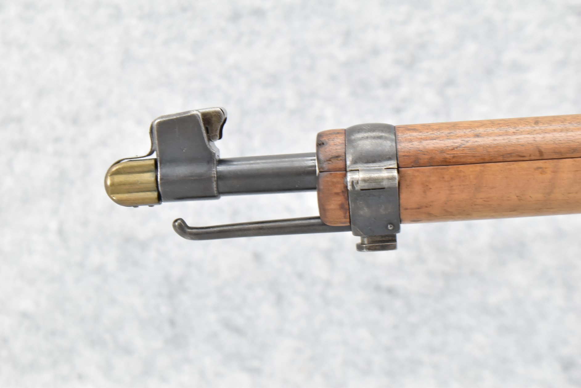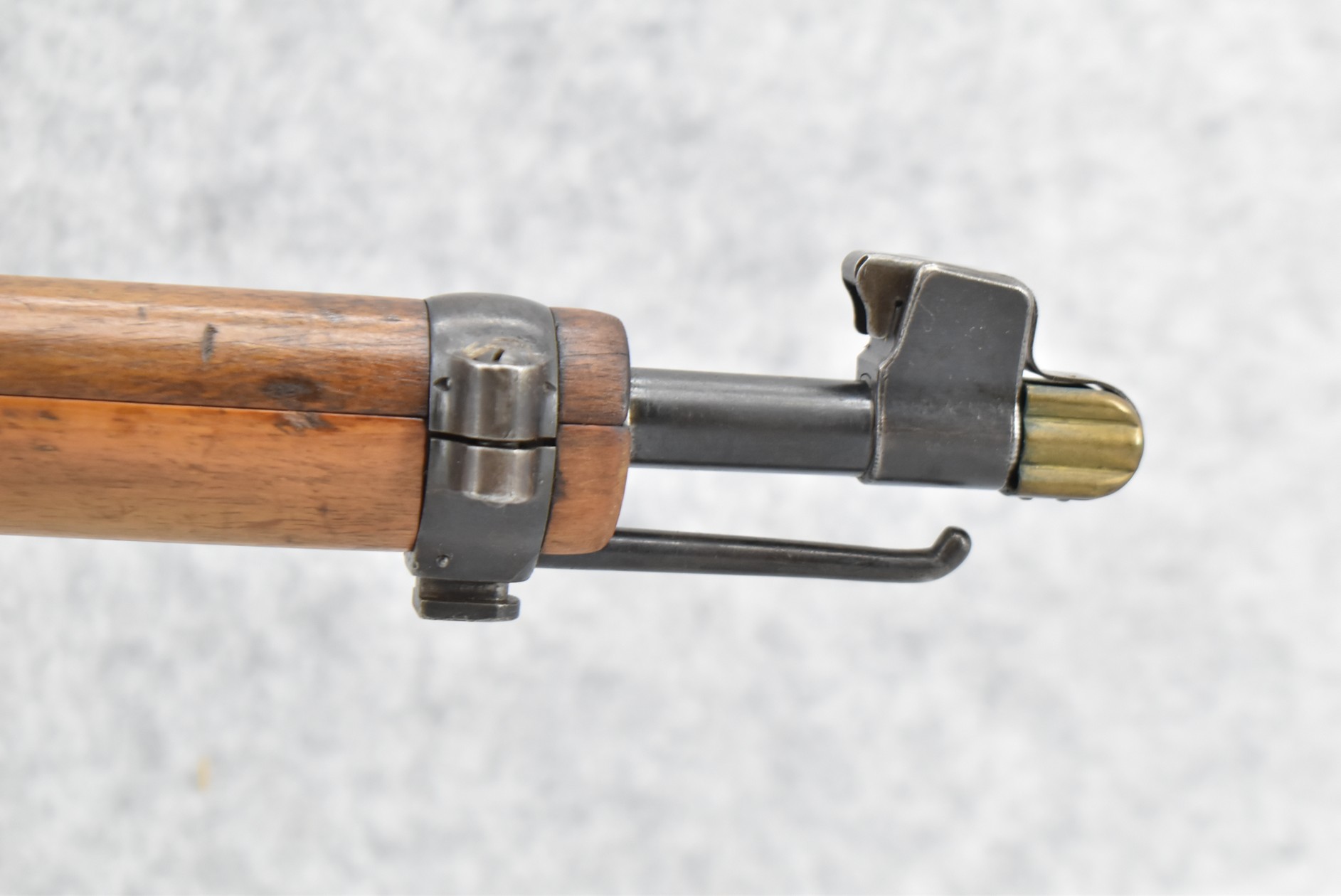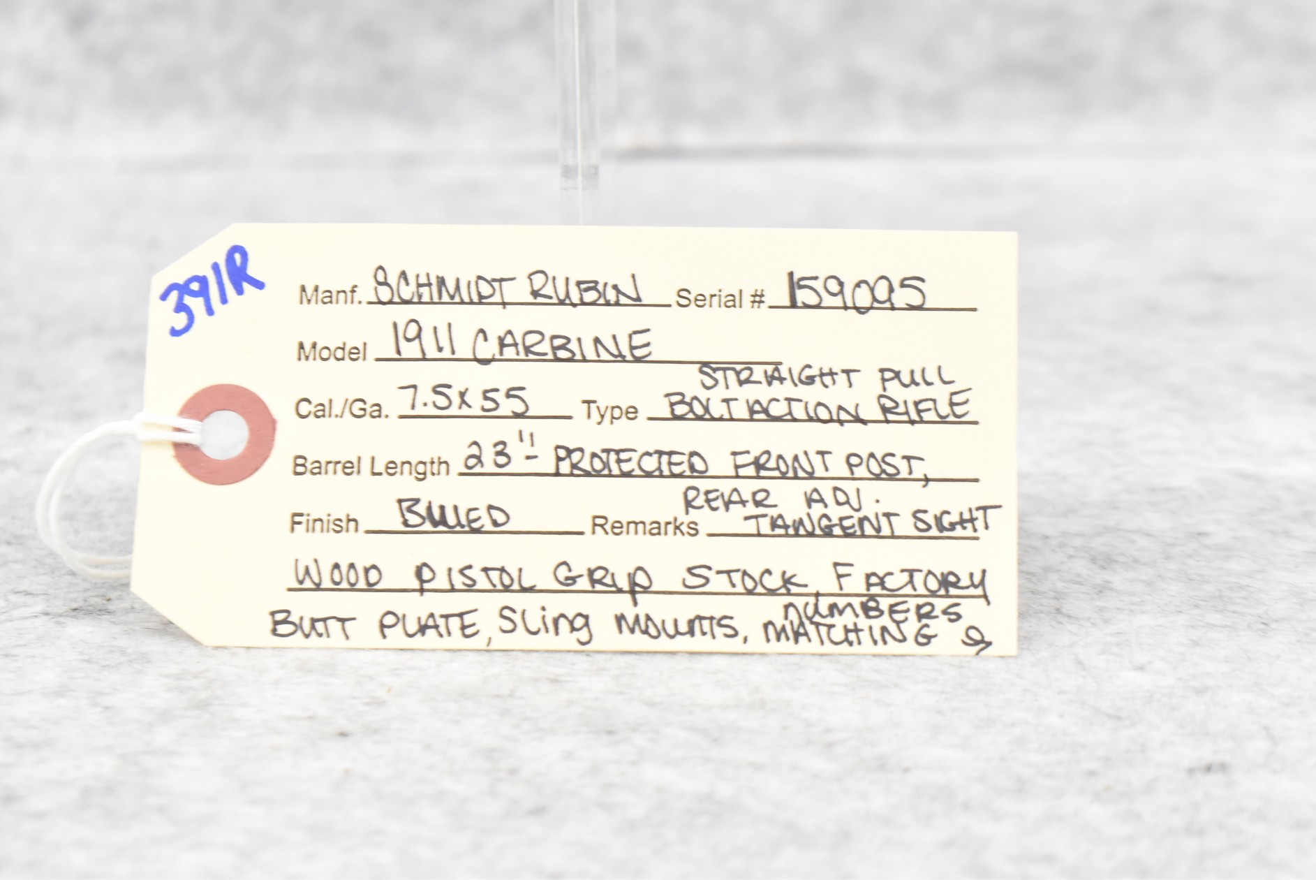 391R. Schmidt-Rubin – Mod. 1911 Carbine – 7.5×55 Cal. Straight Pull Bolt Action Rifle – w/23” Barrel w/Protected Front Post & Rear Adj. Tangent Sights w/Brass Muzzle Cap – Blued Finish – w/Wood Pistol Grip Stock w/Factory Butt Plate – w/Sling Mounts – Numbers Matching