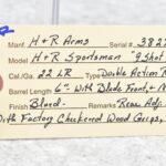 396R. H. & R. Arms – Mod. H&R Sportsman – 22LR Cal. Double Action 9-Shot Revolver – w/6” Barrel w/Blade Front & Notch Rear Adj. Sights – Blued Finish – w/Factory Checkered Wood Grips